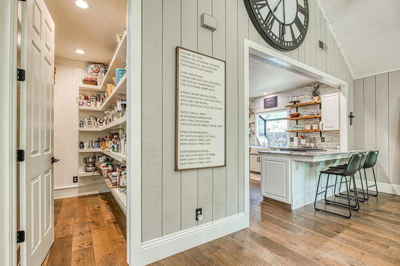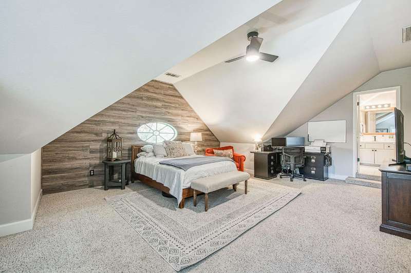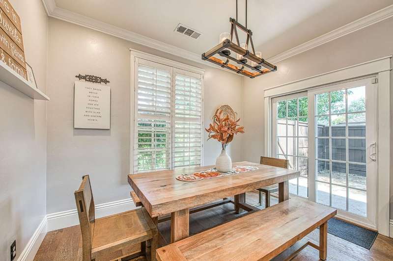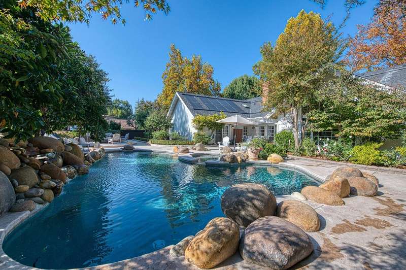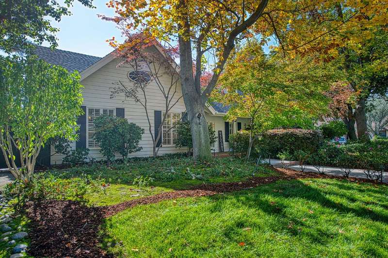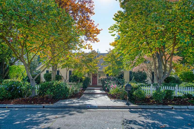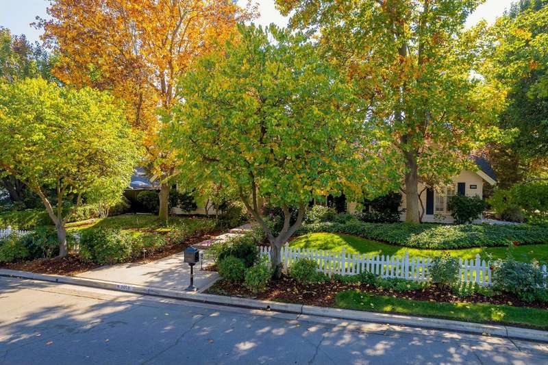 This classic, traditional-style home, inspired by its white exterior, black shutters, red front door, dormer windows, and front white picket fence, is situated on over a third-acre corner lot within the highly desired San Joaquin Estates. The current owners have thoroughly updated the home's interior with modern enhancements while preserving its warmth and timeless charm. Upon entering, you'll notice the beautiful white oak engineered hardwood flooring that runs throughout most of the home, along with the craftsmanship of wood-cased doorways, wood-paneled wall accents, and plantation window shutters. The formal living room features a cozy fireplace, French doors offering views of the backyard, and library-style bookcases. The spacious family room serves as the heart of the home, with its high vaulted wood-beam ceiling, stone fireplace with gas insert, and a large picture window overlooking the gorgeous backyard and pool. Adjacent to the family room is the bright and cheerful gourmet kitchen, complete with sit-down bar, beautiful granite countertops, white cabinets with floating shelves, a farm sink at an atrium window, Sub-Zero refrigerator with other premium appliances, a walk-in pantry, and breakfast nook with French doors to a side yard patio. Next to the kitchen is the formal dining room, featuring two corner china hutch cabinets. The primary bedroom suite includes French doors to the backyard patio, a coffered ceiling, separate closets, and a spa-like bath with marble top vanity, a freestanding tub, and large tiled shower. Another spacious bedroom boasts a high vaulted ceiling, built-in dressers, a bench seat, and bookcases. A third bedroom is also downstairs and a hall bathroom, with skylight, was also remodeled and features a marble top vanity and large tiled shower. Completing the first floor is the convenient laundry room with brick flooring and 2 storage closets. Upstairs, is a large isolated fourth bedroom with an en suite bathroom that could also function as a home office, den, or playroom. Step outside to your beautifully landscaped backyard oasis, highlighted by a Pebble-Tech saltwater pool & spa with a cascading waterfall. The pool is heated by solar panels, allowing extended seasonal use, and multiple patio areas provide space for entertaining or simply relaxing. A large fenced garden area includes a 10x12 storage shed for your garden tools. Don't let this rare opportunity to own this exceptional property pass you by. Schedule a tour today!