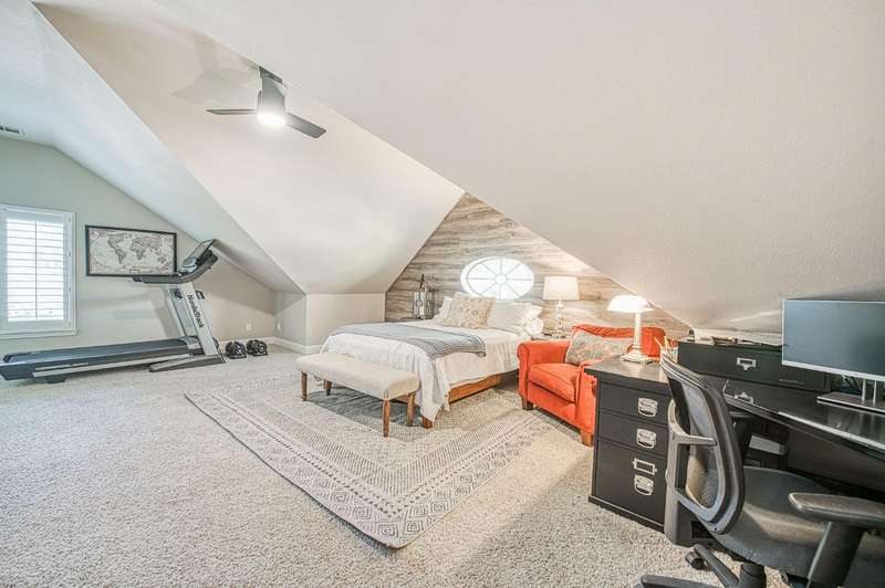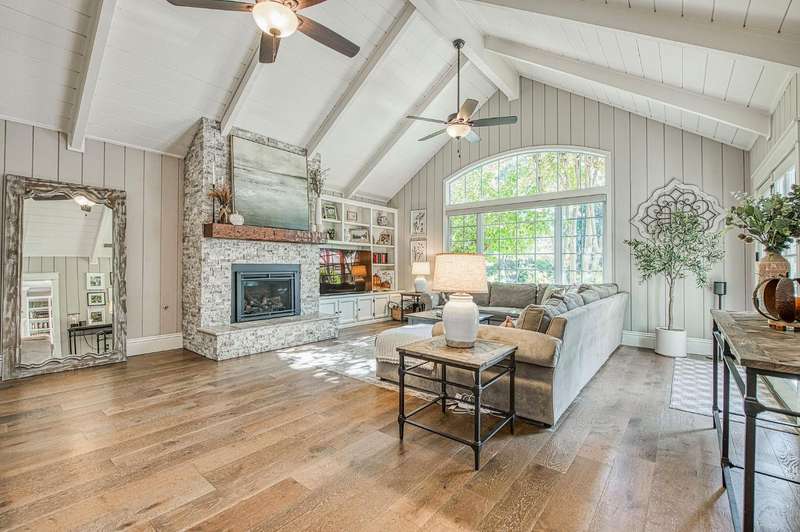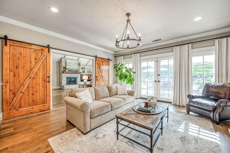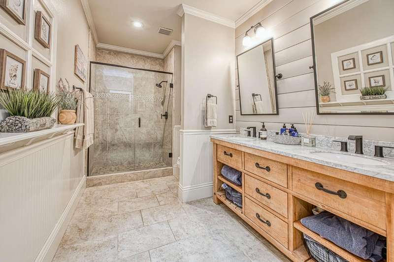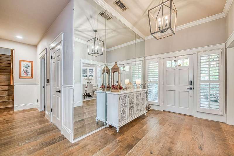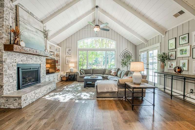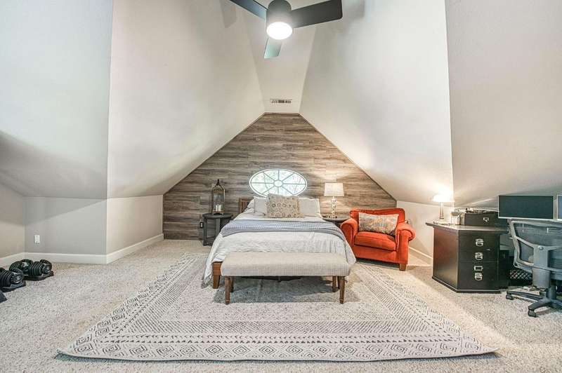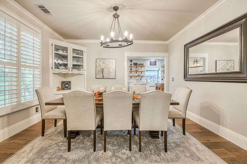 This classic, traditional-style home, inspired by its white exterior, black shutters, red front door, dormer windows, and front white picket fence, is situated on over a third-acre corner lot within the highly desired San Joaquin Estates. The current owners have thoroughly updated the home's interior with modern enhancements while preserving its warmth and timeless charm. Upon entering, you'll notice the beautiful white oak engineered hardwood flooring that runs throughout most of the home, along with the craftsmanship of wood-cased doorways, wood-paneled wall accents, and plantation window shutters. The formal living room features a cozy fireplace, French doors offering views of the backyard, and library-style bookcases. The spacious family room serves as the heart of the home, with its high vaulted wood-beam ceiling, stone fireplace with gas insert, and a large picture window overlooking the gorgeous backyard and pool. Adjacent to the family room is the bright and cheerful gourmet kitchen, complete with sit-down bar, beautiful granite countertops, white cabinets with floating shelves, a farm sink at an atrium window, Sub-Zero refrigerator with other premium appliances, a walk-in pantry, and breakfast nook with French doors to a side yard patio. Next to the kitchen is the formal dining room, featuring two corner china hutch cabinets. The primary bedroom suite includes French doors to the backyard patio, a coffered ceiling, separate closets, and a spa-like bath with marble top vanity, a freestanding tub, and large tiled shower. Another spacious bedroom boasts a high vaulted ceiling, built-in dressers, a bench seat, and bookcases. A third bedroom is also downstairs and a hall bathroom, with skylight, was also remodeled and features a marble top vanity and large tiled shower. Completing the first floor is the convenient laundry room with brick flooring and 2 storage closets. Upstairs, is a large isolated fourth bedroom with an en suite bathroom that could also function as a home office, den, or playroom. Step outside to your beautifully landscaped backyard oasis, highlighted by a Pebble-Tech saltwater pool & spa with a cascading waterfall. The pool is heated by solar panels, allowing extended seasonal use, and multiple patio areas provide space for entertaining or simply relaxing. A large fenced garden area includes a 10x12 storage shed for your garden tools. Don't let this rare opportunity to own this exceptional property pass you by. Schedule a tour today!