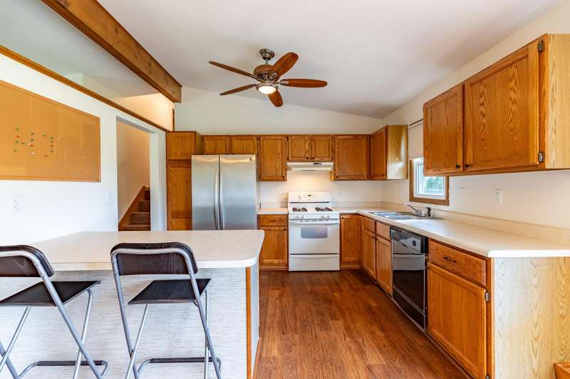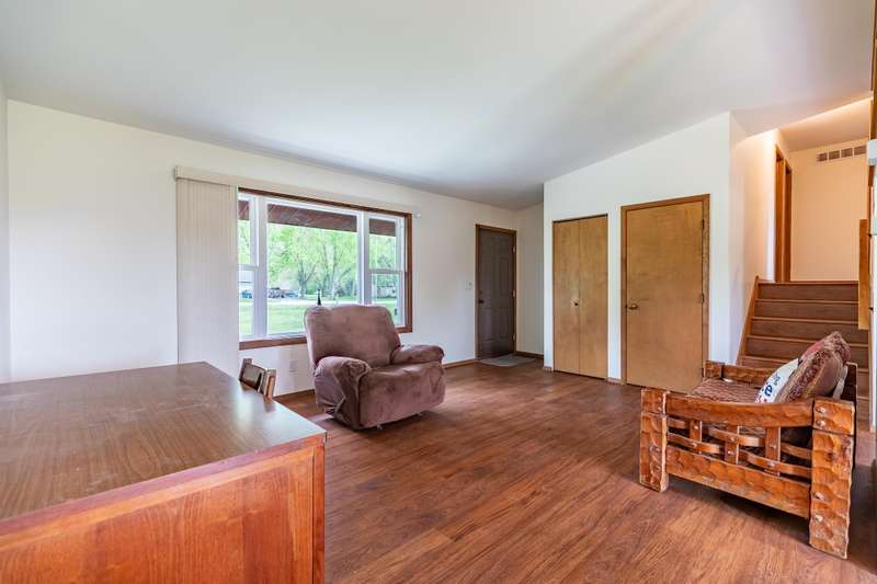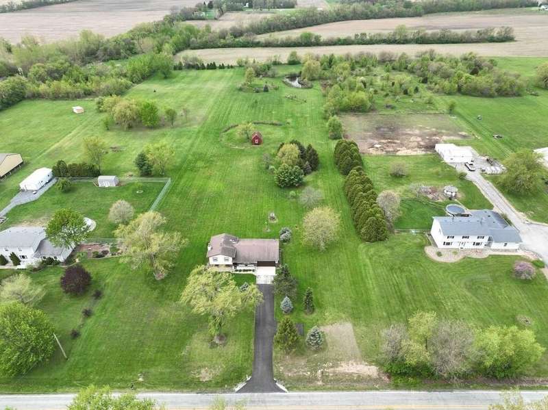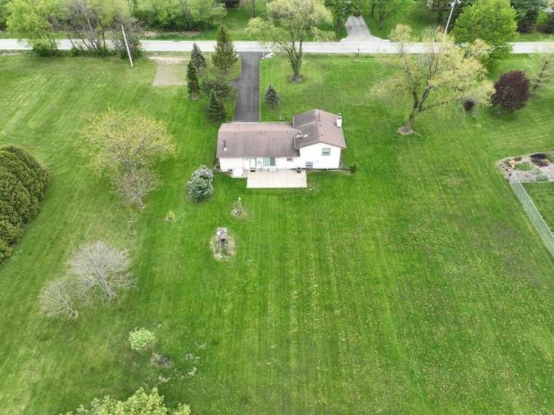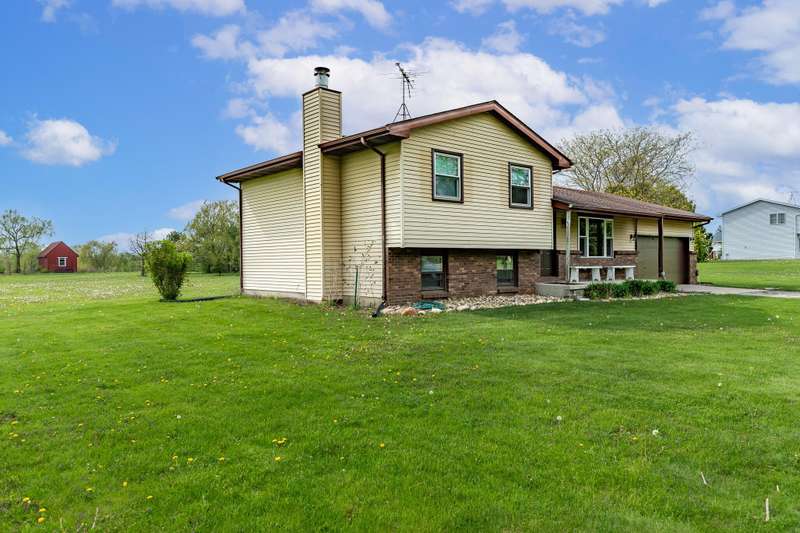 Welcome home to this well maintained quad-level home sitting on a peaceful 5-acre lot in unincorporated Lowell! Located only a few minutes from I-65, yet not too far from town. Tasteful, low upkeep, landscaping around the front of the home, and a fresh asphalt driveway with a side parking spot for guests. Entering the home, the main and upper levels have newer flooring and windows. The main level offers a new sliding glass door off the kitchen leading to the large back patio, perfect for entertaining! The upper-level features three bedrooms and one full sized bath with a skylight to bring in the natural light. The lower level highlights a cozy wood burning fireplace in the family room, a bonus room, another bathroom, and laundry room. The daylight basement is ready for your next project and has plenty of storage space! In the backyard you will find an automatic whole house generator, a large shed stocked with firewood, a large fire pit for summer night bonfires, two yard hydrants, and mature trees. Looking out over the hill you can sit, relax, and appreciate the scenic pond view. The oversized garage features a wood burning stove, 220-volt outlet, and a work bench. This home is perfectly situated to enjoy country living while having easy access to commuting. Don't miss the opportunity to see this one!