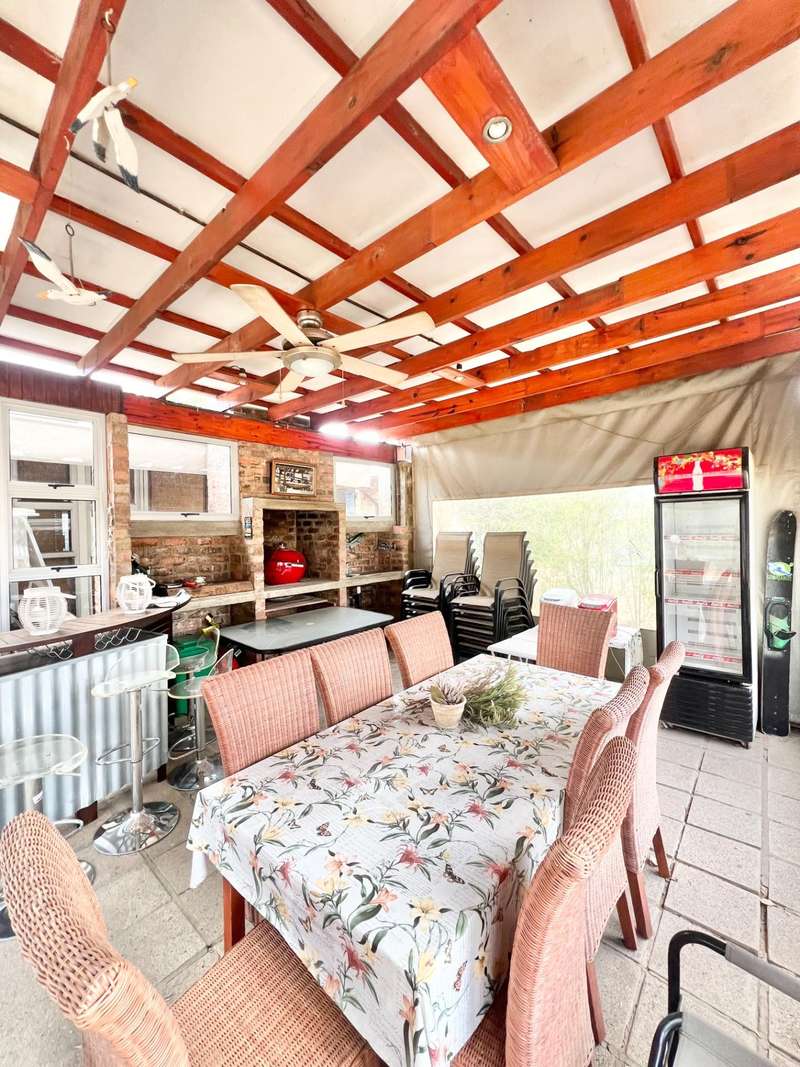 Waterfront Gem up for grabs. Big family that is looking for a holiday home, look no further as this is not just a family home but an entertainers dream with all the space. This property offers a 5 bedroom/alternatively another tv/lounge area, all with built in cupboards, tiled and ceiling fans for those hot summer days. 3 Bathrooms which two are en-suites and fully tiled as well. Living areas are spacious, tiled with ceiling fans and all open plan onto a well equipped kitchen with gas top and oven, ample cupboard space. Walking out of the sliding doors overlooking the Vaaldam, and into a well equipped entertainment area, with a built in braai and fireplace, and what a bonus a weber that can be removed. On rainy days this property has all the equipment to keep everyone happy, adults outside having a braai and the kids enjoying a spacious playroom inside which has a dart board and a table tennis set. What more to look for than this beautiful family home. Estate entertainment, there is a clubhouse, kids play area, 2 sparkling blue pools, boat storage, and a tennis court. Don's hesitate, give me a call to go view this gem.