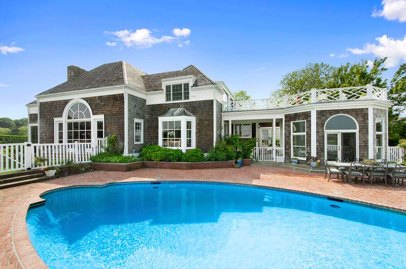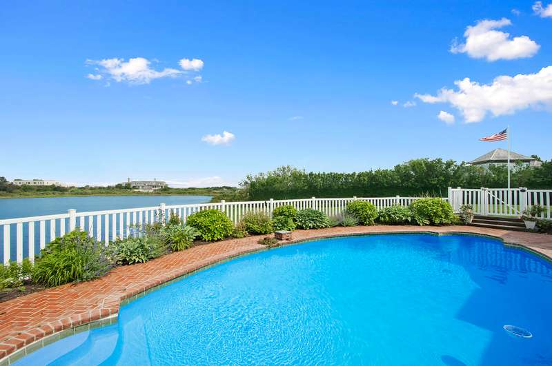 A long private drive leads to this elegant Southampton residence, situated on beautifully landscaped 2-acre pond front property. The house is exceptionally-appointed and beautifully decorated with features that include a living room with fireplace, den with fireplace, dining room, kitchen, seven bedrooms, and 7.5 baths. A swimming pool with water views surrounded by brick patio overlooks the landscaped yard and gardens. The property is steps to the beach with beach access. This is Southampton at its BEST. Listing ID: 737636