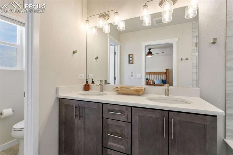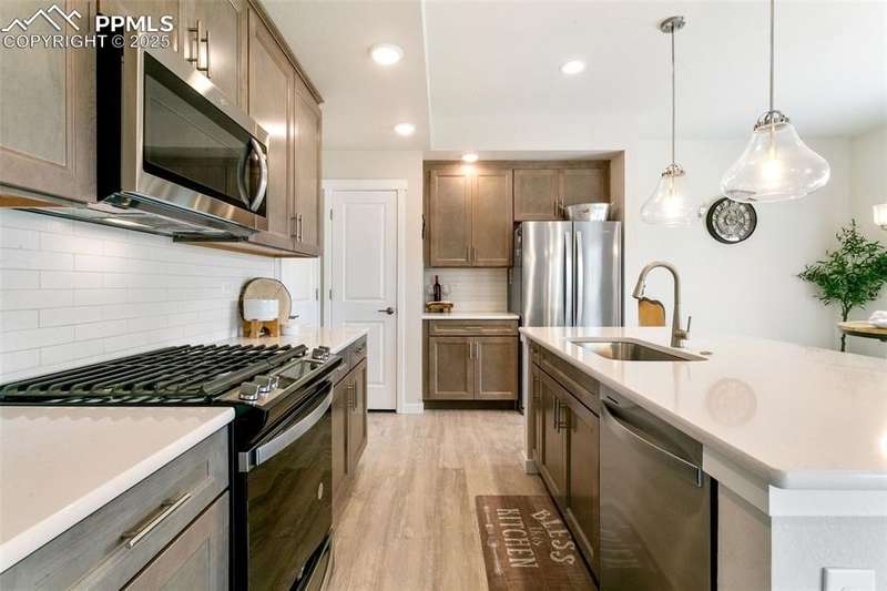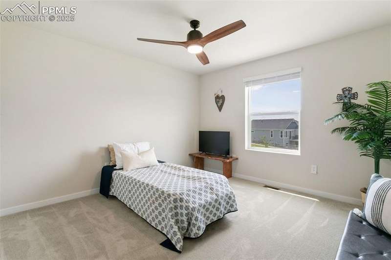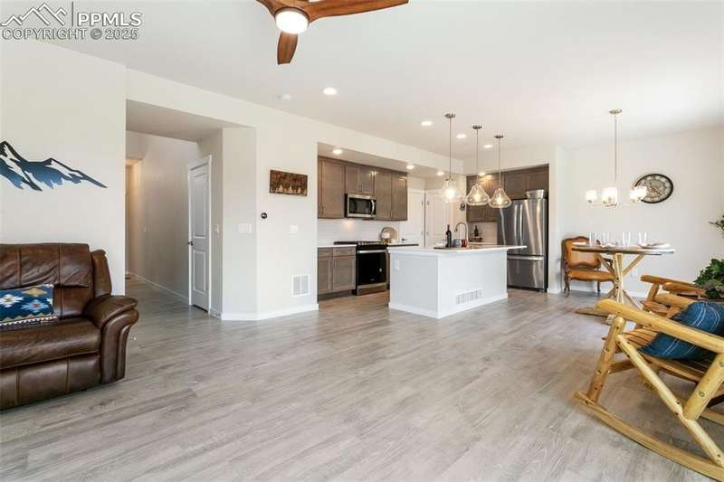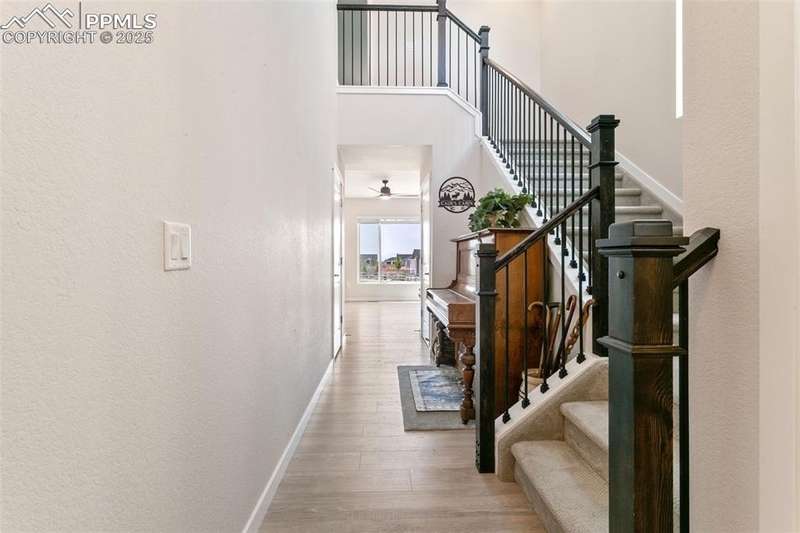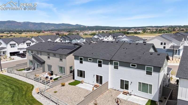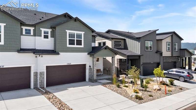 Discover modern Colorado living in this stylish two-story home in Monument Junction East, where thoughtful design, mountain views, and convenience meet. This move-in-ready 3-bedroom, 3-bathroom home blends contemporary finishes, smart-home technology, and the comfort of open-concept living designed for today’s lifestyle. Step inside to luxury vinyl flooring, soaring ceilings, and abundant natural light that fills the spacious main level. The gourmet kitchen features stainless steel appliances, a gas range, pantry, and generous counter space perfect for meal prep or entertaining. The dining area opens to a concrete patio backing to open space and neighborhood parkland, a serene backdrop with unobstructed Pikes Peak views. Start your mornings with coffee overlooking the mountains or unwind with breathtaking Colorado sunsets. Upstairs, all bedrooms are positioned for privacy and connection. The primary suite provides a relaxing retreat with mountain views, a walk-in closet, and a spa-inspired bath complete with a free-standing shower and double vanity. Two secondary bedrooms showcase south-facing windows that frame panoramic views from Pikes Peak to Cheyenne Mountain. A full bath, upstairs laundry, and a bonus office nook complete the upper level, ideal for remote work, studying, or creative use. Smart-home features include a smart thermostat, keyless entry, custom blinds, and energy-efficient systems for year-round comfort. Outside, enjoy a fully fenced backyard, professional landscaping, and a finished two-car garage that combines convenience and curb appeal. Located just off Jackson Creek Parkway with quick access to I-25, this home offers an easy commute to Colorado Springs, Castle Rock, and Denver. Zoned for top-rated Lewis-Palmer District 38 schools, and close to parks, trails, shopping, and dining. You’ll love the balance of small-town charm and modern living that defines Monument, Colorado.