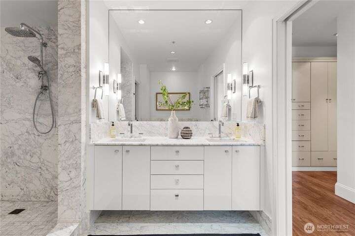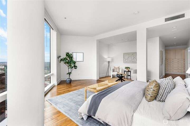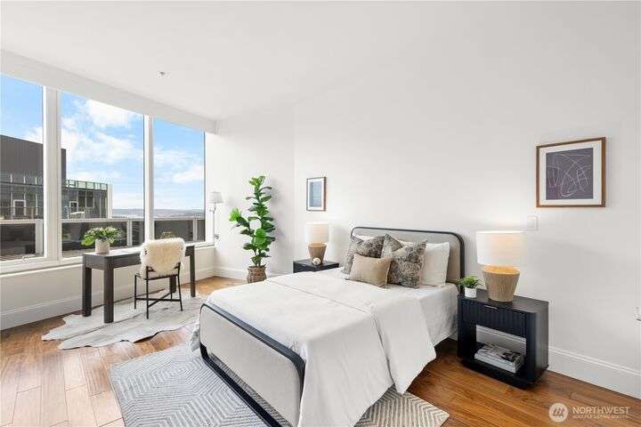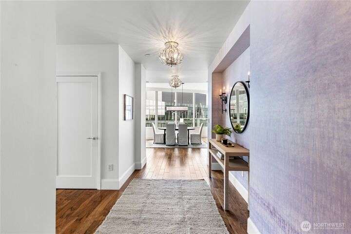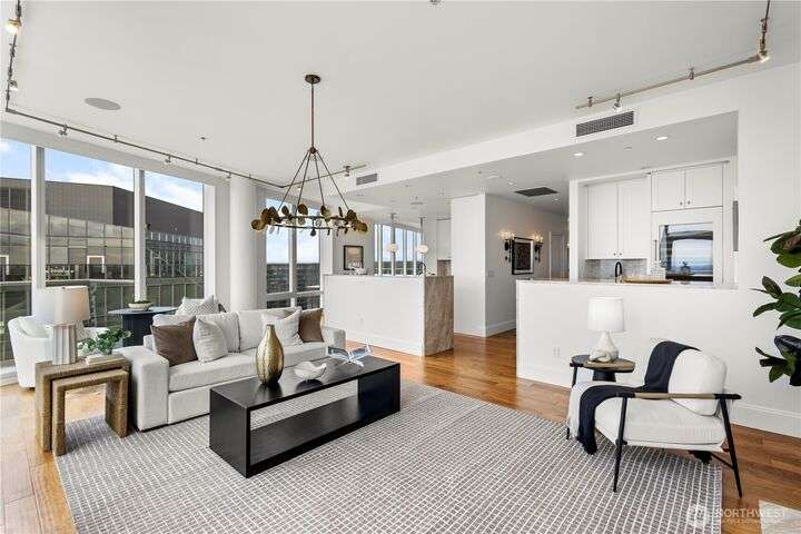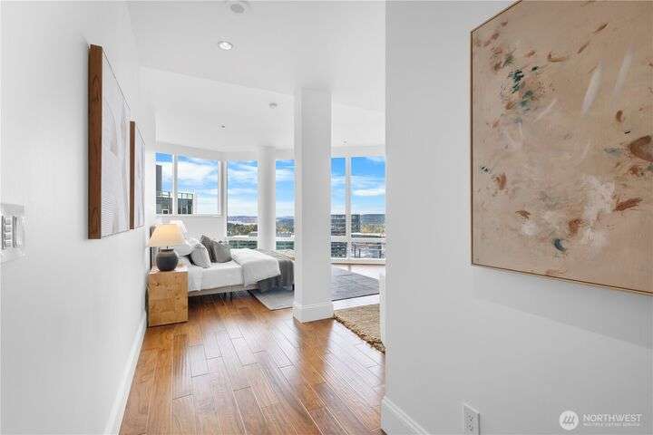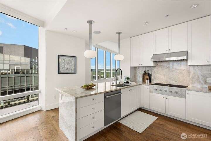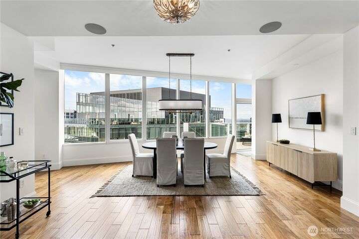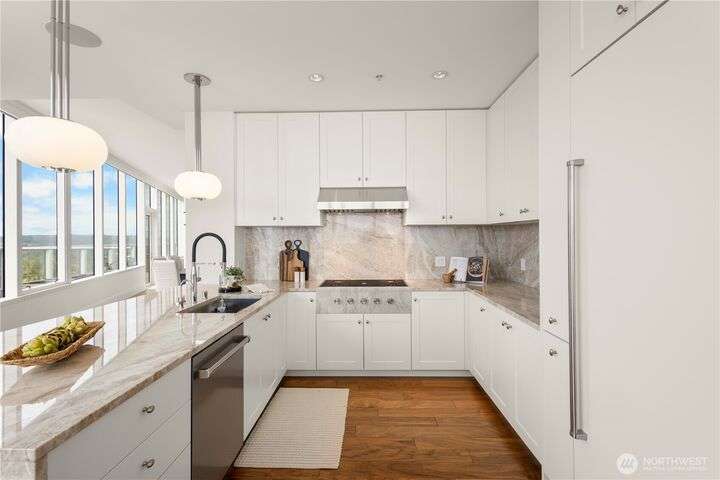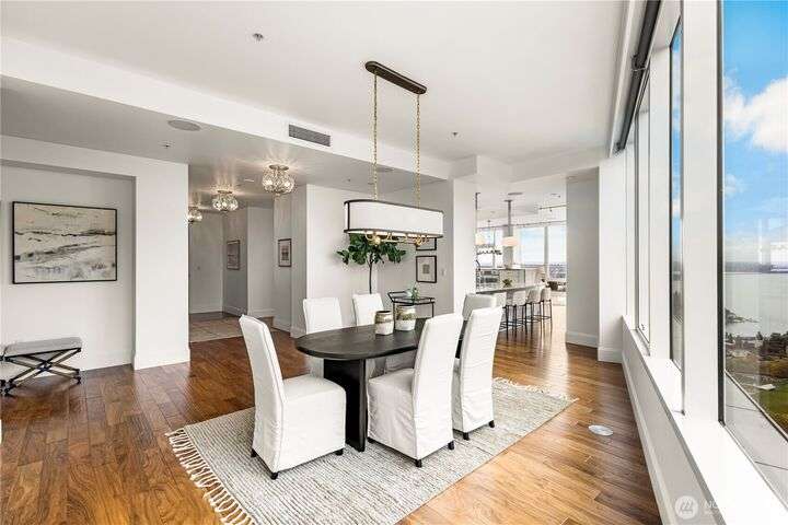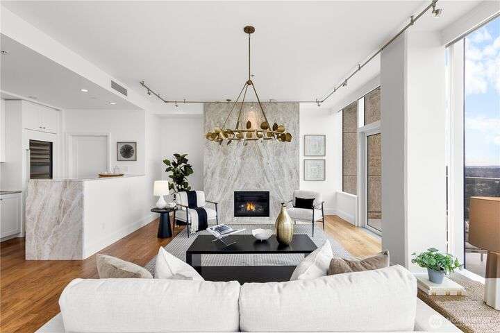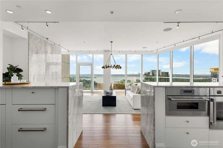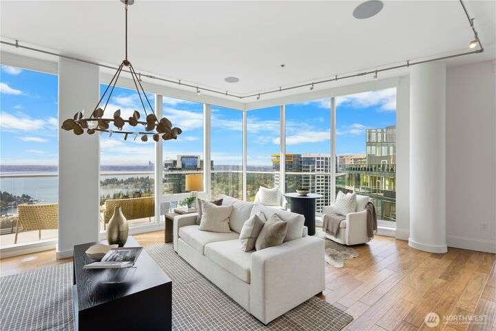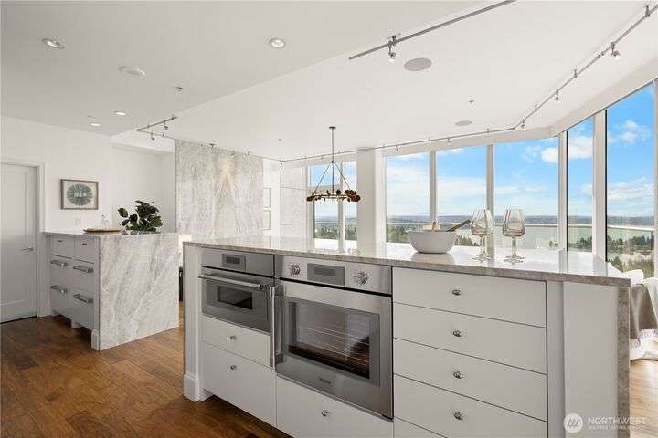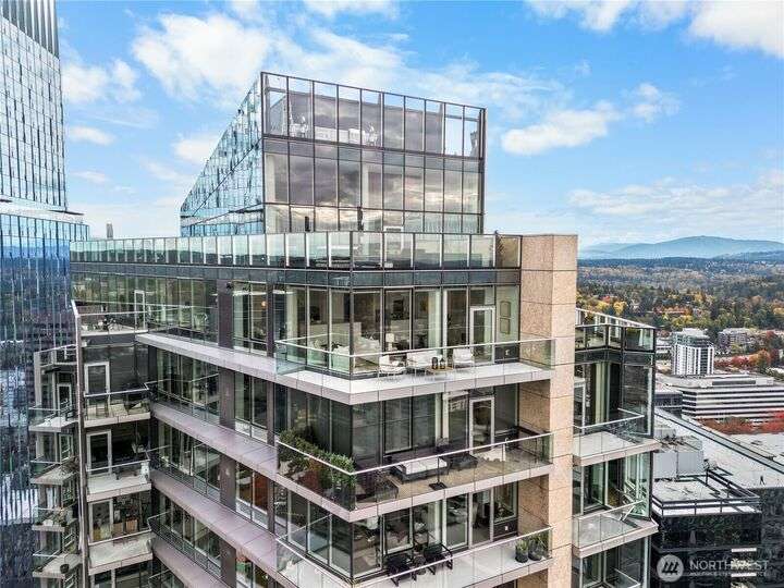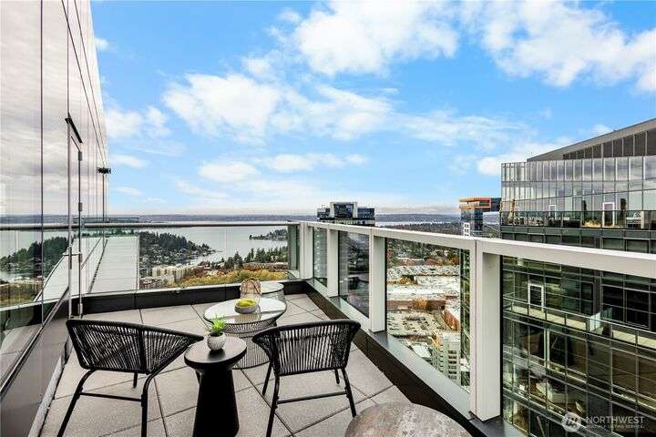 Unmatched elegance soars above downtown Bellevue in this reimagined 42nd-floor penthouse at Bellevue Towers. Walls of glass reveal sweeping views of Lake Washington, the Seattle skyline and Olympic Mountains. Over 3,400 SF of sun-drenched luxury features quartzite and Calacatta stone surfaces, new cabinetry, a statement fireplace, Lutron lighting and electronic shades throughout. Two bedrooms are complemented by a flexible den, easily adaptable as a third bedroom. Enjoy two private decks, three parking spaces with EV, and five-star amenities—24/7 concierge, spa with sauna, fitness center, and outdoor terraces. Immerse yourself in the pulse of downtown Bellevue, where acclaimed dining and high-end shopping are mere steps from your residence.