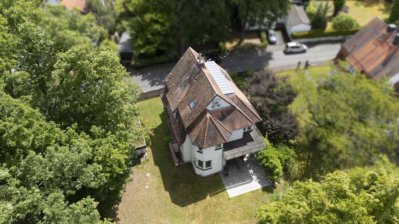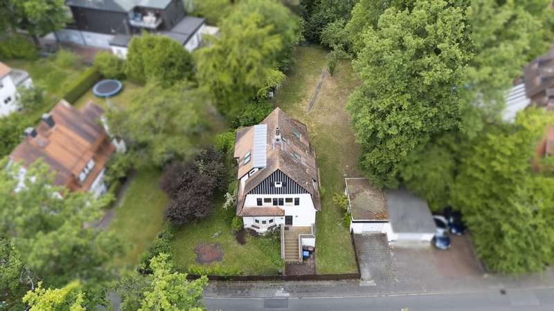 In the middle of the idyllic and family-friendly surroundings of Dreieich-Buchschlag lies this special, listed (exterior) detached house from 1912. On an impressive plot of 1,317 square meters, the detached house combines historical charm with plenty of potential for individual design. With a living space of approx. 209 square meters and an additional 136 square meters of usable space, it offers plenty of room for a family to live. At the end of the 1970s, the house was partly converted, extended and partially renovated. A further conversion followed in 2000, during which the attic was extended, the windows replaced and the electrics overhauled. Since then, it has been carefully maintained without undergoing extensive modernization. The original character of the house has been preserved in many areas, which makes this property particularly attractive. On the first floor, an inviting hallway welcomes residents and guests. A guest WC is located directly in the entrance area. The spacious living area with fireplace creates a cozy atmosphere, which is visually and spatially loosened up by the slightly offset, lower-lying dining area - a kind of split level that gives the floor plan a special touch. The adjoining kitchen has a functional design and is also directly connected. All rooms on the first floor are tiled and have pleasant underfloor heating. The ceiling height of around three meters also ensures an airy, spacious feel. The second floor has parquet flooring and offers three well-proportioned rooms. Two of them have access to a balcony with a view of the spacious garden. One of the rooms is also equipped with a shower - a practical addition to the daylight bathroom with bathtub on the same floor. An integrated laundry chute makes everyday life easier. On the top floor, which was converted in 2000, there is a spacious room with laminate flooring, a walk-in closet, air conditioning and a separate shower room. This area is ideal as a parents' area, study or guest floor. The house has a full basement and offers plenty of storage space as well as a room that can be used as a hobby room or home workshop, for example. The garden with mature trees forms an idyllic retreat - ideal for families with children, gardening enthusiasts or anyone who appreciates life in the countryside. An existing cistern in the garden also enables sustainable irrigation of the outdoor areas. For added convenience, there is a garage on the property, which offers you a sheltered parking space for your vehicle and creates additional storage space. Particularly charming is the combination of modern roller shutters and the original folding shutters, which are not only a visual highlight, but also offer practical sun and privacy protection. This house offers a rare opportunity to acquire a charming home in a sought-after location. It is aimed at lovers of classic architecture who enjoy giving a house with history a new lease of life.
