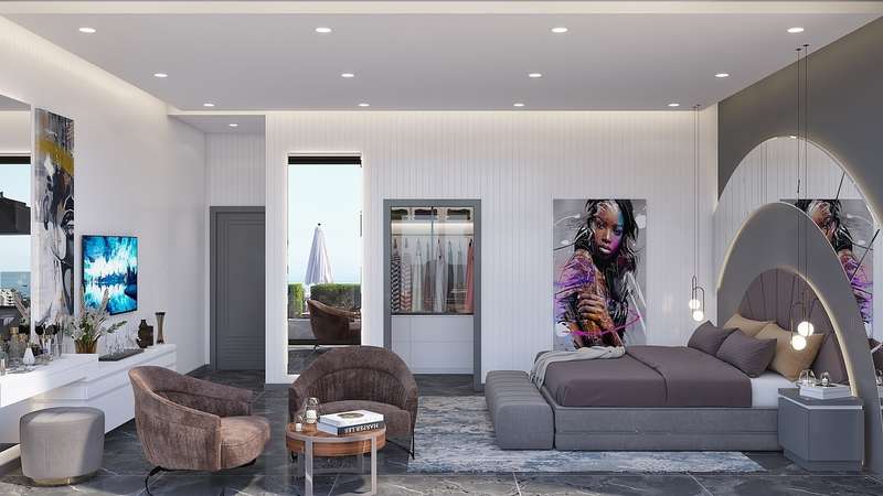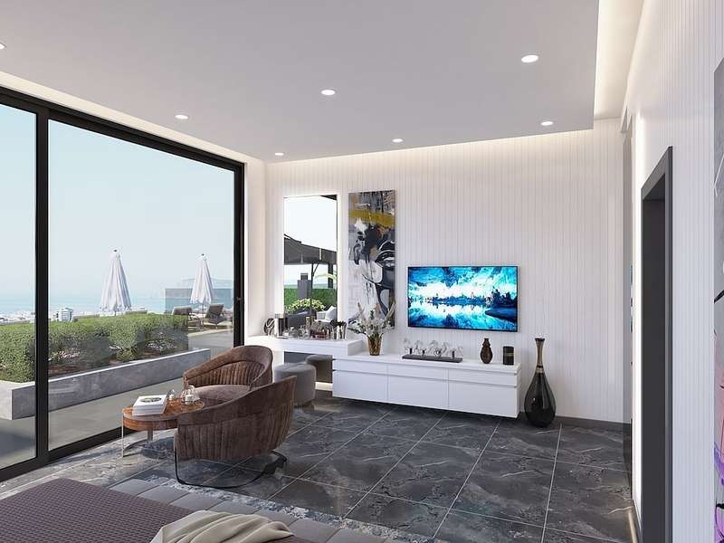 The villas for sale in Alanya Antalya are 2 km from the beach, 2.5 km from the shopping center, 14.5 km from Alanya city center, and 25 km from Alanya Gazipasa Airport.