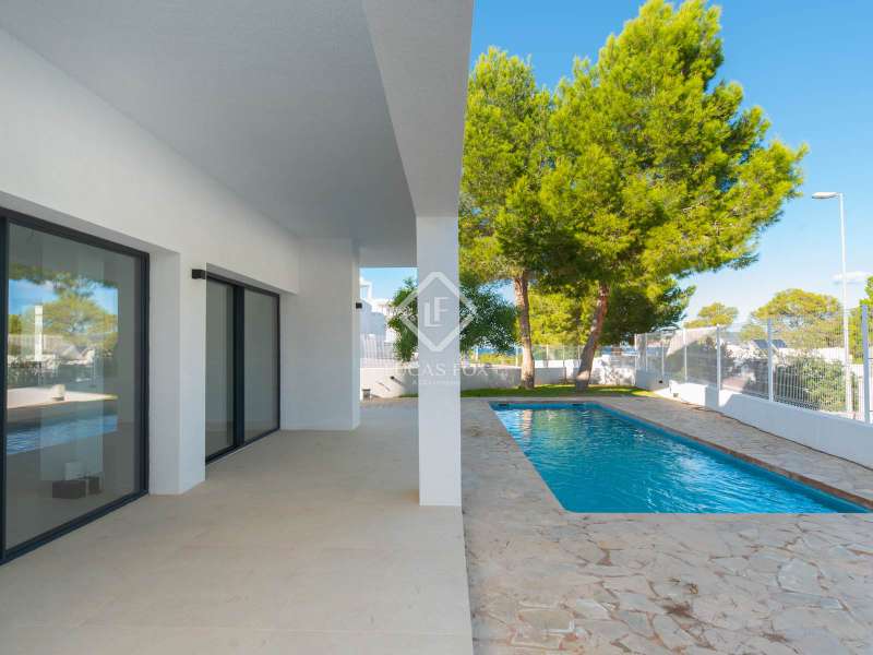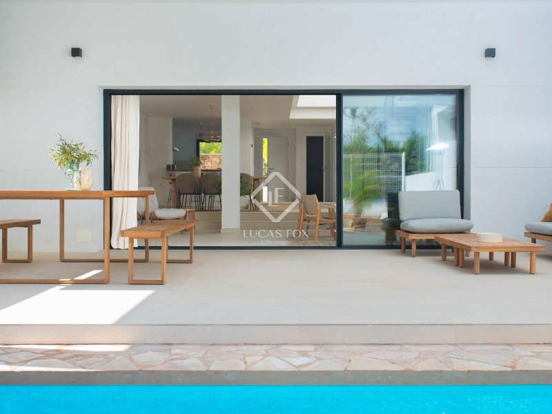 Lucas Fox presents Villas Punta Pedrera, an exclusive development of eight luxury villas in Sant Josep de Sa Talaia, just a short distance from the coast. This particular villa offers 286 m² of living space and 218 m² of private outdoor areas, with a contemporary design that prioritizes functionality, light, and comfort. On the ground floor, there is a spacious and bright living-dining room, a separate kitchen , a guest toilet, an lobby , and a private garage. From the main rooms, you can access the exterior terrace, the private swimming pool, and the solarium area, all designed for enjoying outdoor living. On the first floor, the bedroom area comprises four bedrooms and two complete bathrooms, including the main bedroom with a dressing room and access to a private terrace. All bedrooms have been designed to maximize natural light and offer privacy. The finishes combine fine materials and timeless décor, with solutions that enhance the feeling of spaciousness and quality in every room. The villa enjoys an east-facing orientation, providing optimal natural light throughout the day. Its location in Punta Pedrera allows you to enjoy the tranquility of the coast, while being just a few minutes' car from the lively offerings of Sant Antoni, with prestigious restaurants and amenities . This property is ideal as a primary residence or a high-end holiday home in one of the most sought-after destinations in the Mediterranean. Contact us for more information or to arrange a private viewing.