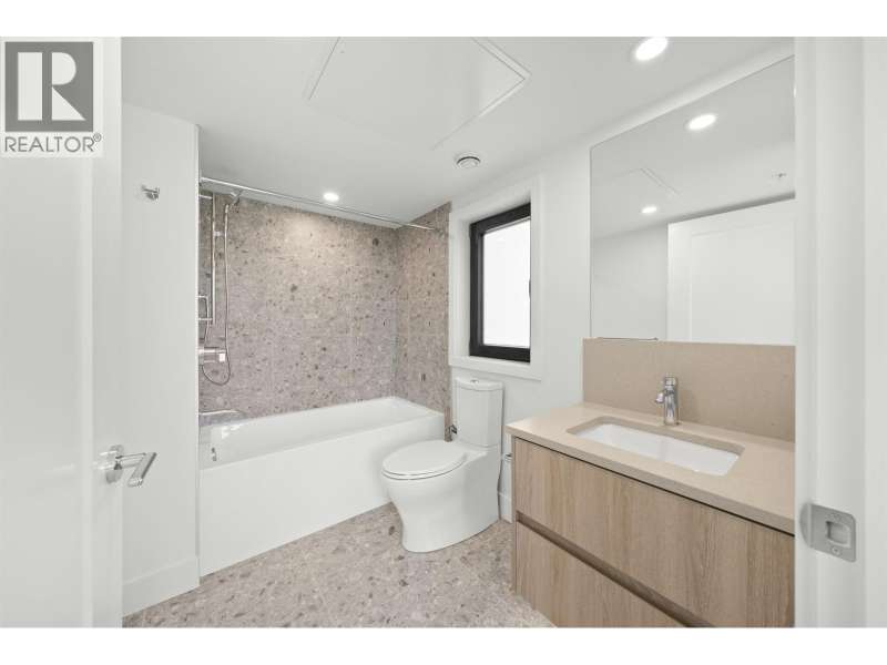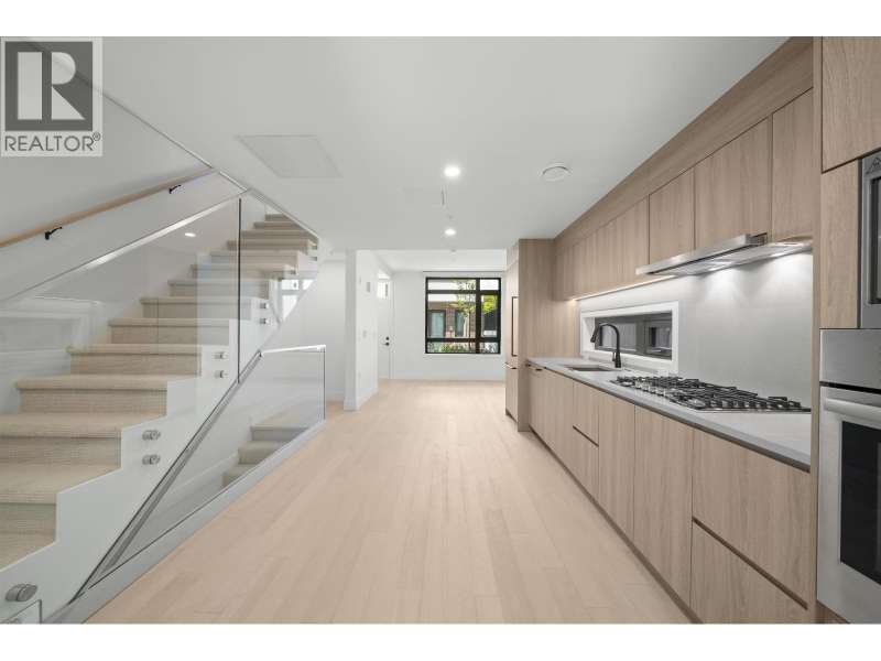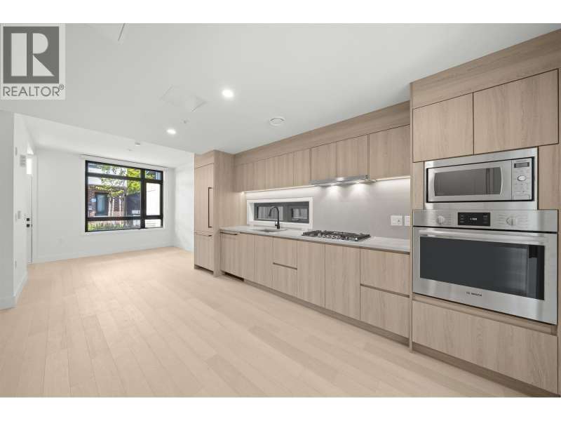 Welcome to WEST OAK by Shokai Properties - this stunning corner, east-facing townhome offers 2 Bedrooms, 3 Bathrooms + 2 Flex spaces in the heart of Oakridge. The main-floor den is large enough to serve as an additional bedroom and comes with a full bath - perfect for in-laws or guests. Enjoy entertaining on your expansive 259 sf private rooftop patio with city and neighborhood views. Designed for sophisticated living, this home features hardwood flooring throughout, fully tiled bathrooms, and a window niche in the kitchen that floods the space with natural light. Ideally located just steps from Oakridge Mall, the Canada Line SkyTrain, parks, restaurants, grocery stores, and top-rated schools - everything you need is within walking distance. 1 parking + 1 storage locker included. (id:58403)
