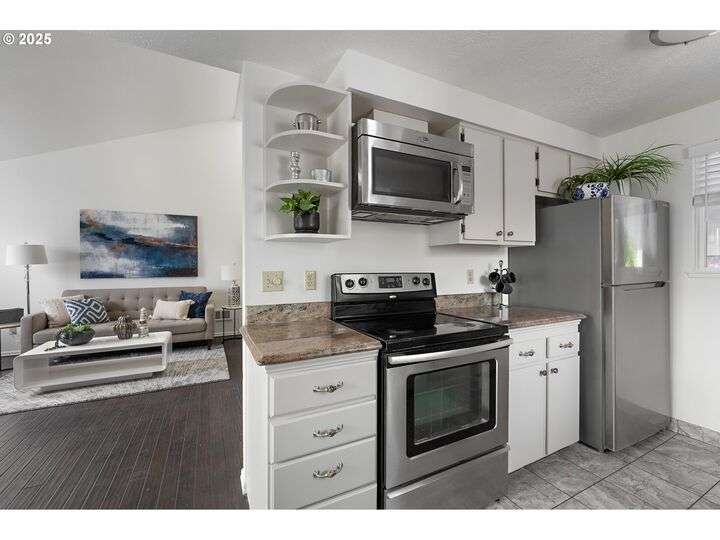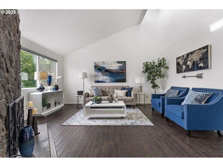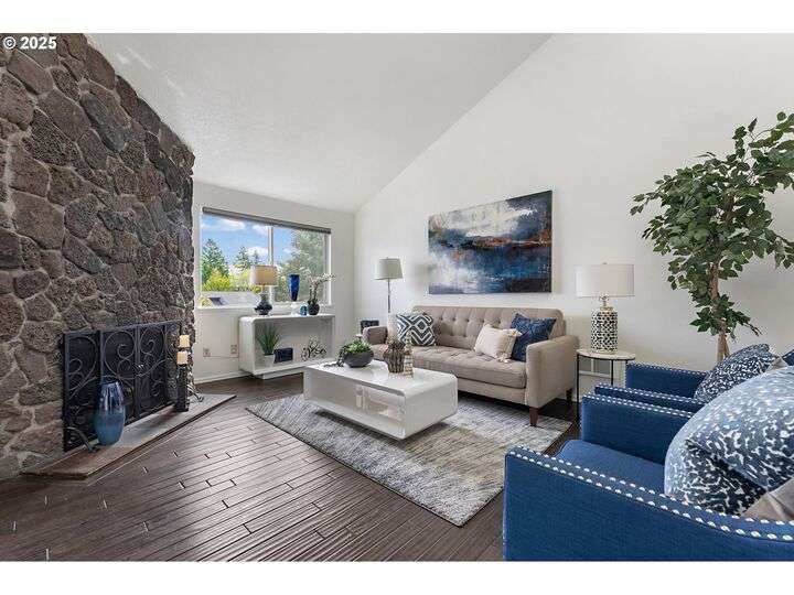 Welcome to this beautifully refreshed 2 bedroom/2 bathroom condominium in Lake Oswego’s Mountain Park. Sitting on the upper level, this home offers both privacy and a Mt. Hood view from the spacious balcony. Inside, the entire home has been freshly painted, including cabinets and ceilings, giving it a crisp feel. The light-filled living room boasts beautiful vaulted ceilings and a wood burning fireplace with a lava-rock surround. The open layout flows to the dining area and kitchen with refreshed cabinets. The seller converted what had been a 3rd bedroom into a laundry room and 2nd bathroom creating a laundry, a primary bathroom, and a guest bathroom. Enjoy all the amenities Mountain Park has to offer, from trails and parks to the top-notch recreation center. The Ridgeview Condominium complex also has its own community pool. A rare find in a prime location—don’t miss the opportunity to make this home yours.