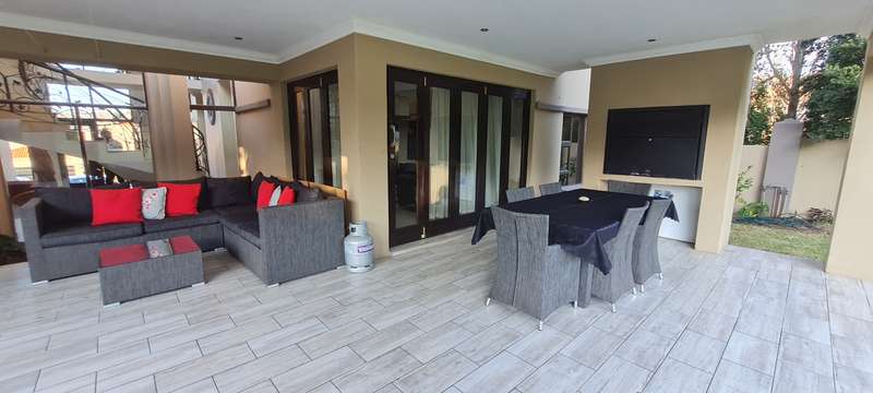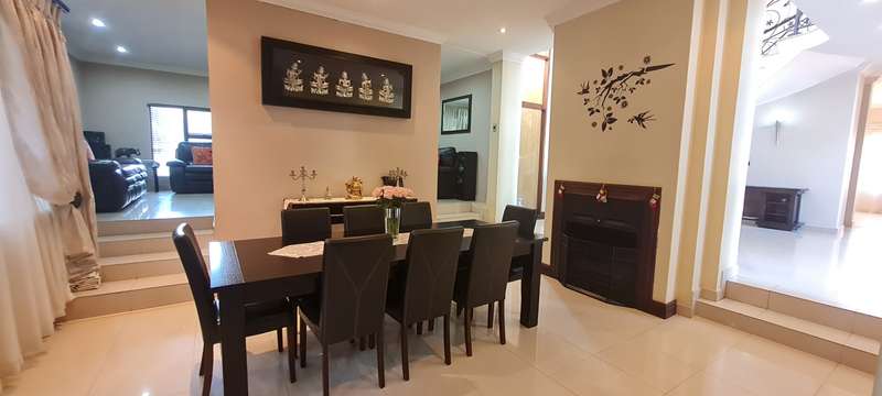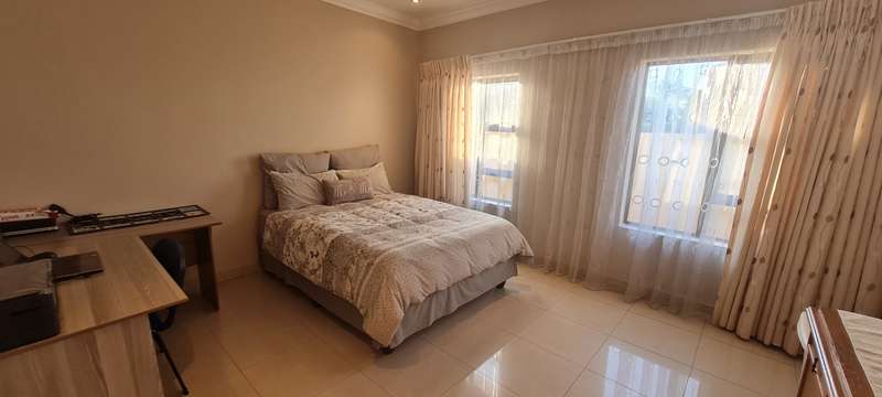 A country estate at its finest awaits you at Blue Valley Golf Estate. Tennis courts, squash courts, soccer fields, cricket pitches, and basketball courts are also available on the estate, along with the 18-hole golf course designed by Gary Player. There are several parks on the estate that are ideal for family walks, runs, and viewing the golf course. You can enjoy amazing food at Taste Restaurant. There is also a beauty spa and a conference center on site. Shuttle service is provided to and from the gate for free. As you step through the grand floor-to-ceiling glass entrance, you are immediately transported to a world of elegance and beauty. The entrance provides a breathtaking sight, showcasing a soaring floating staircase that gracefully ascends within a voluminous entrance hall. The abundance of natural light pouring through the glass walls creates a mesmerizing effect, casting ethereal shadows that dance across the polished floors. The luminous quality of the space sets the tone for the exquisite design that lies ahead. The soaring staircase, with its intricate details and graceful curves, commands attention and draws the eye upward. It serves as a captivating centerpiece, adding a touch of grandeur to the otherwise minimalist interior. With a seamless flow, the ground floor provides a modern family environment that is tailored to fit the needs of today's modern family. There is ample space for culinary creations and culinary gatherings in the expansive kitchen, where sleek countertops and top-of-the-line appliances merge with a separate scullery. In the adjacent dining room, a wood fireplace illuminates the room, promising cozy evenings and convivial feasts. From the relaxed ambiance of the family/TV lounge to the quiet seclusion of the spacious study, there are living spaces to suit every need. Guests are treated to the same level of luxury and comfort as the rest of the household in a guest bedroom, which comes with its own bathroom. An additional living room offers versatility, allowing you to use it as an extra lounge or vibrant entertainment hub according to your lifestyle preferences. The upper level offers three generously proportioned bedrooms, each with an opulent en-suite bathroom that features opulent finishes and indulgent amenities. There is nothing like a private outdoor shower in the master bedroom, which provides a blissful escape to wash away the cares of the day beneath azure skies while providing a tranquil sanctuary complete with a walk-in closet, sumptuous en-suite bathroom, and a walk-in closet. Outside, a covered patio offers al fresco dining and entertaining with a built-in braai, where culinary delights are expertly grilled against a verdant backdrop. In addition to two garages and ample parking spaces, staff accommodations ensure household needs are met efficiently and gracefully. Easy access to Samarand Rd which joins the N1 highway, close to Blue valley mall, fuel stations, Jacaranda college & Pre-primary, Coccolino's early childhood center, Uitsig high school, Medi clinic, International Airport, and many more. For a chance to view this property, contact me today....