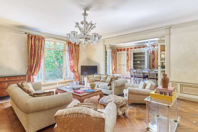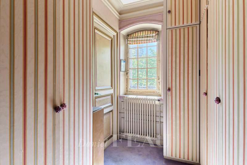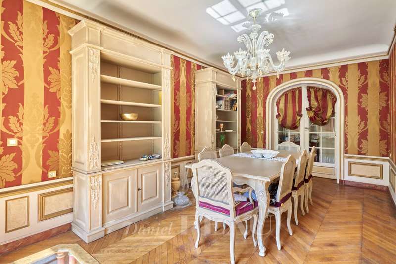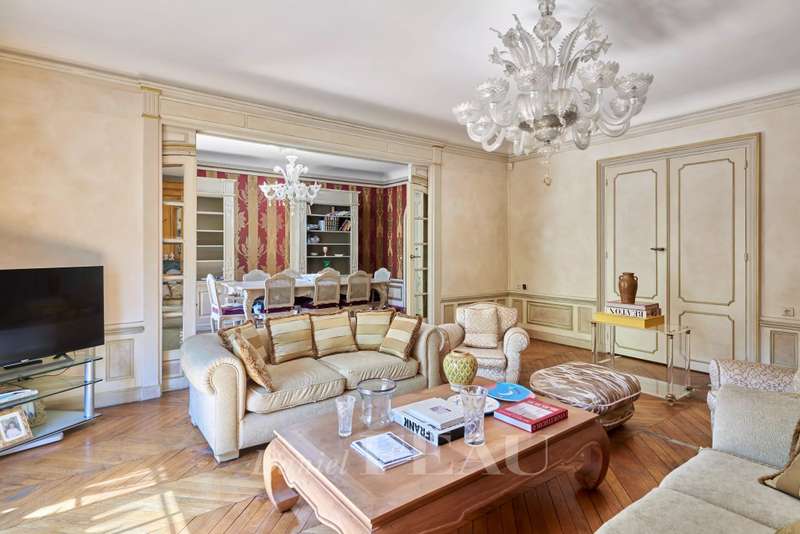 Avenue Henri Martin. This bright 242 sqm apartment benefiting from a flexible floor plan is on the 1st floor of a superb early 20th century building with a caretaker. An entrance hall leads to a double living/reception room, a dining room, a kitchen with dining facilities, a suite with a bathroom, wc and dressing room, four further bedrooms (one with mains plumbing), a bathroom and a separate wc. Ample fitted storage space. With a maid’s bedroom and two cellars. Renovation is required to exploit the full potential. Janson de Sailly catchment area.