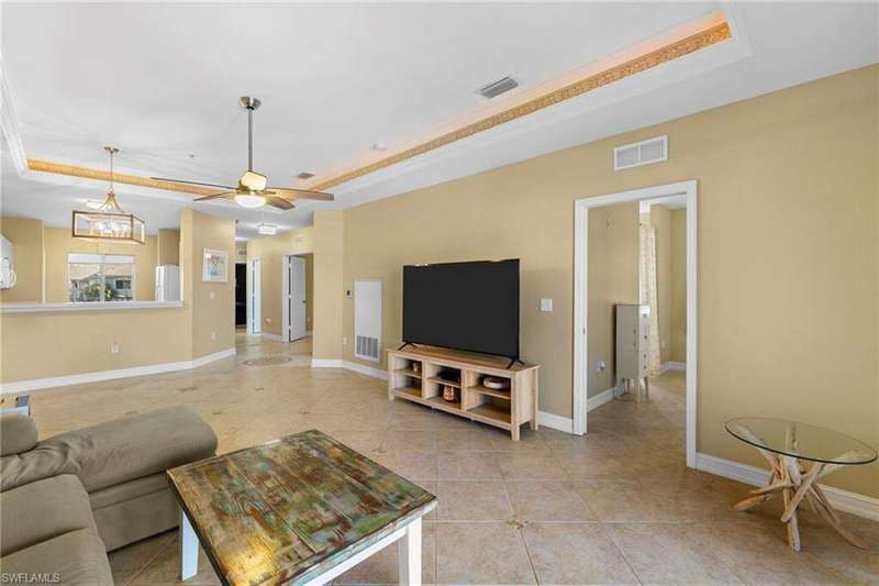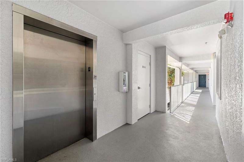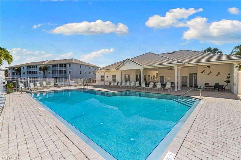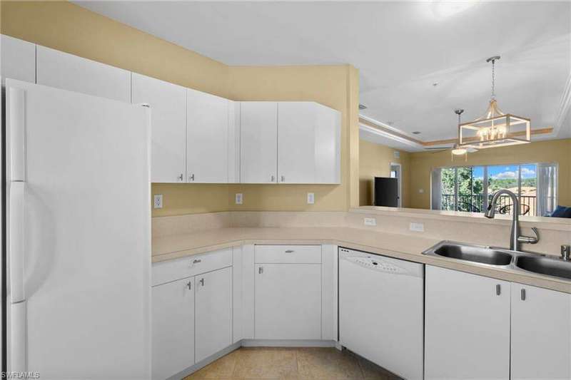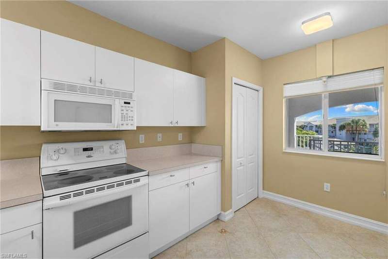 BEAUTIFUL 3RD FLOOR, 3-BEDROOM "END-UNIT" CONDO WITH RAISED LIVING ROOM CEILING, IN A PET-FRIENDLY BUILDING W/ ELEVATOR & CARPORT SPACE! This pristine & well-maintained Naples condo offers a new HVAC in 2022, new interior paint in 2020 & a new washer/dryer in 2020! Features extra natural light courtesy of the extra windows available only in a rare end-unit! This 3-bedroom, 2-bathroom residence features neutral marbled tile laid on the diagonal throughout, raised ceilings with double crown molding (12" higher in living room than units on other floors), a bright kitchen with white cabinetry, and a large laundry room with generous storage. The 3rd bedroom includes a large nook for an additional office/workspace in the bedroom. Step outside and enjoy peaceful mornings or relaxing evenings on the spacious screened-in lanai. This newer building features concrete block construction and a tile roof. Blue Heron is a gated community with low HOA fees and desirable amenities including a clubhouse & resort-style pool. Ideally located just minutes from Naples' world-renowned white sand beaches, 5th Avenue, shopping, dining, and easy access to I-75.