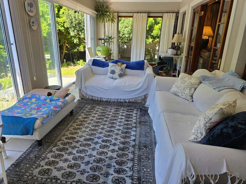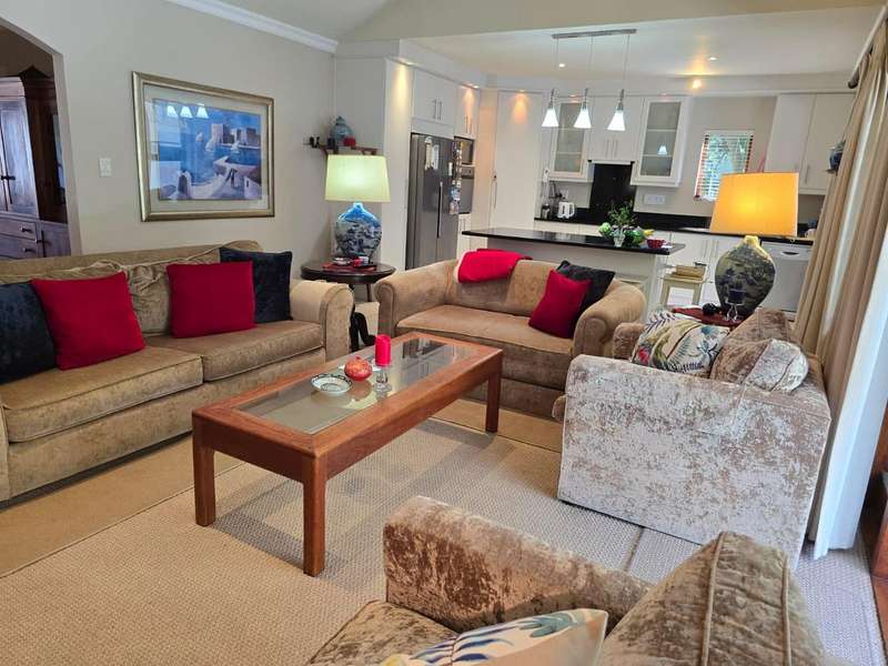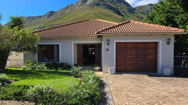 Joint Mandate - As you step through the double front door, be prepared to be captivated by the stunning panoramic mountain views. The single storey layout is well thought through. The wide entrance to the dining room and open living TV room with large and comfortable kitchen to prepare gourmet meals. Living room is equipped with a cozy fireplace and flows to a large enclosed stoep with built-in barbeque and sliding doors that flow to the sparkling heated pool. For those who appreciate the outdoor lifestyle, the wind sheltered back garden provides a serene retreat. Perfect for entertaining or taking a refreshing dip in the pool. That adds a touch of luxury to your private oasis. The covered stoep fitted with block out blinds faces north with the awesome mountain view. Garden fully enclosed for animals. Furthermore the home boasts 3 ample sized bedrooms (mes) full bathroom and 2 guest rooms share a guest bathroom. Direct access from a single garage and ample off-street parking. Features to this property are an established garden, privacy on swimming pool, immaculate neat, tranquil and quiet, direct access to the R43. A delightful family home. Don't delay booking your viewing soonest. Sunsets and mountain are really awesome.