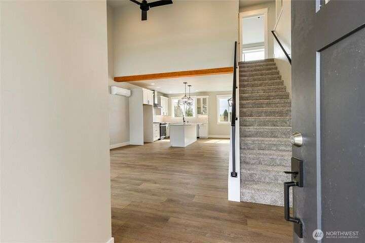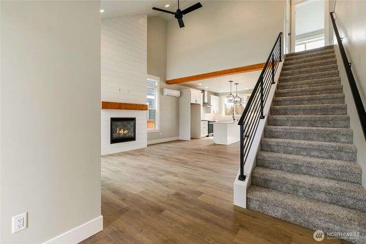 Step into this beautifully designed 3-bedroom, 2.5-bath craftsman-style home and experience the perfect blend of classic charm and contemporary living. From the inviting front porch to the vaulted ceilings, every detail is crafted for comfort and style. The spacious living room is ideal for entertaining, while the modern kitchen, featuring sleek countertops and high-end appliances. Upstairs, the generously sized bedrooms provide a peaceful retreat, and the master suite includes a luxurious bath. Outdoor lovers will appreciate the private deck and patio—perfect for morning coffee or weekend barbecues. Upgrade Included: Lighting - Exterior Millennium Pendant | Whole house - Upgrade to Black Hardware. Construction Completed by 10/21/2025