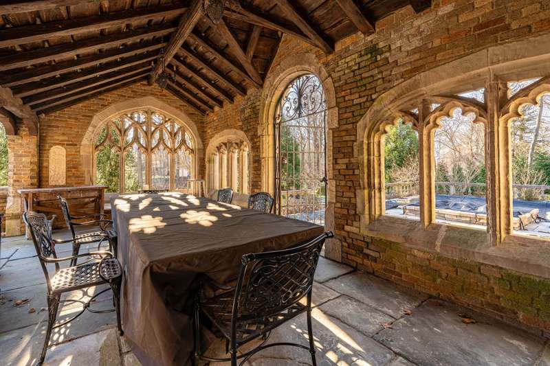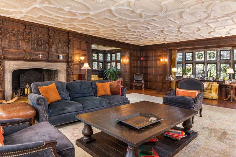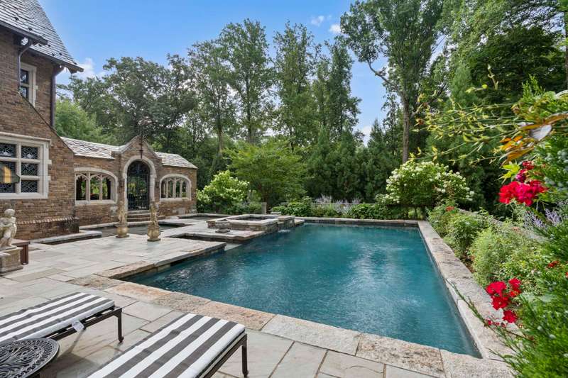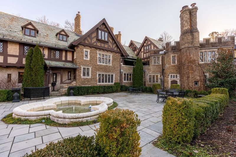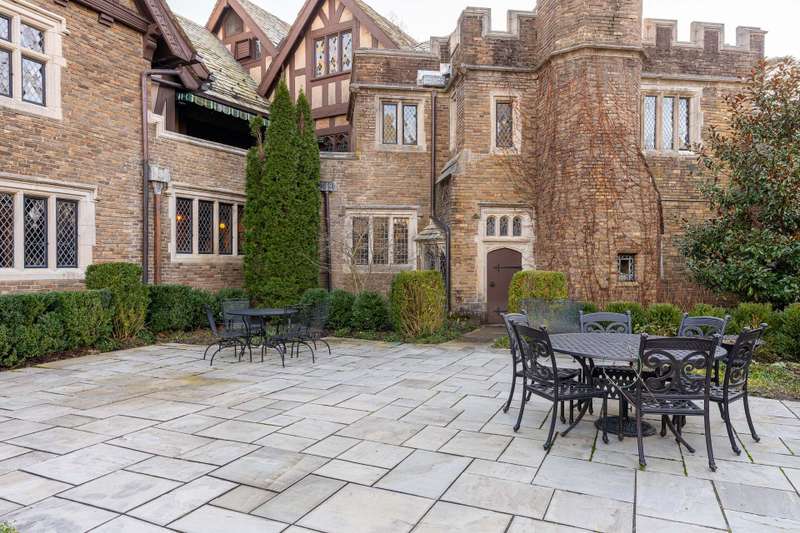 Glynallyn Castle, an architectural masterpiece, was built in 1917.This beautifully restored home provides an expansive floor plan measuring over 30,000 sq ft with eight bedrooms and two apartments on the second and third levels. Set on 7.5 landscaped acres with multi-level stone terraces, curving stone walls and colorful gardens, this residence has unique and elaborate carvings inside and out, ornately mantled fireplaces, wood beamed ceilings, original stained glass windows and stonework. Many French doors offer access to extensive patios. Perfect for grand entertaining, a two-story living room set under soaring beamed ceilings features an impressive limestone gas fireplace. A pewter-covered bar and beautiful billiards room sits off the main foyer along with family room that adjoins an enclosed porch overlooking manicured grounds. The dining room contains impressive millwork, an intricately carved fireplace and a silver safe for valuables. It opens to chef's kitchen with separate dining area, butler's pantry and prep kitchen. Main level includes full gym and home office with private entrance. The lower level boasts a wine cellar and a stone-walled speakeasy-style gathering room. The outside space w/ kitchen, pizza oven, serene pool area featuring sun decks and hot tub and stone dining room with an abundance of privacy, the property is minutes from downtown Morristown and Madison for Midtown Direct train. The property is zoned mixed-use for a variety of future opportunities.