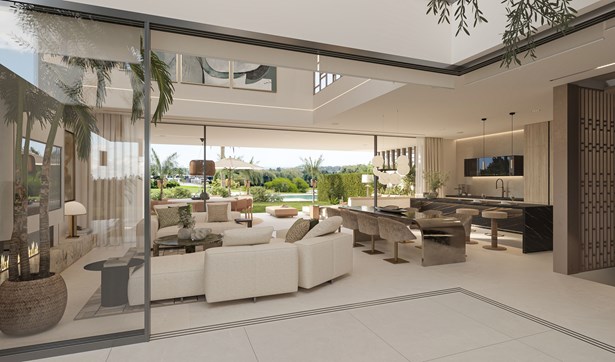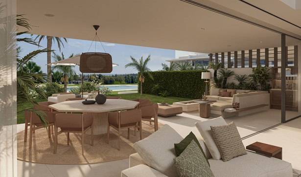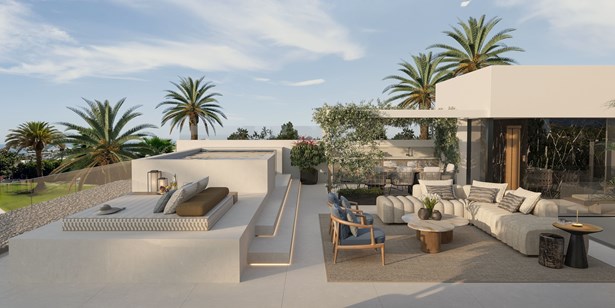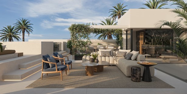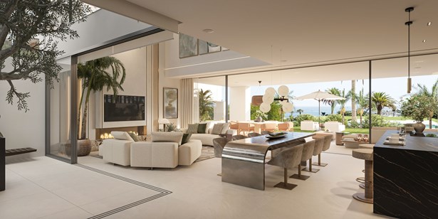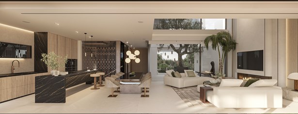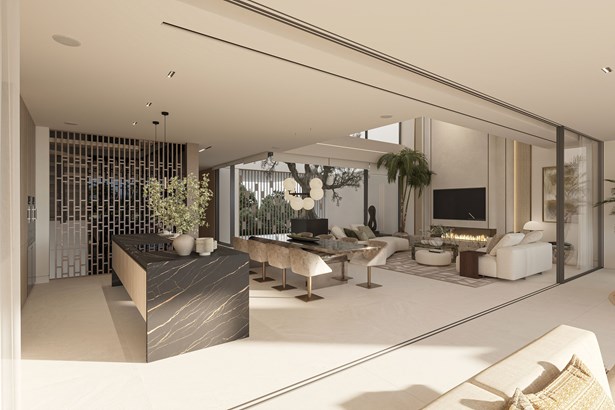 Welcome to this modern semi-detached villa in the Vilas 12 development – an outstanding project of luxury homes on Marbella's Golden Mile, where you can enjoy contemporary living at its finest. Inspired by the elegance of the Art Deco era, Vilas 12 combines refined modern aesthetics with sophisticated, clean lines. From the very first moment, you will be captivated by the meticulously designed gardens and the tranquil water feature, which set the mood for the exceptional experience ahead.This 4-level, 4-bedroom villa offers pure indulgence. The space is filled with natural light, seamlessly blending indoor and outdoor living areas. Floor-to-ceiling windows reveal stunning views of the gardens and the pool, while the rooftop features a luxurious pool, a solarium, and an open ...
