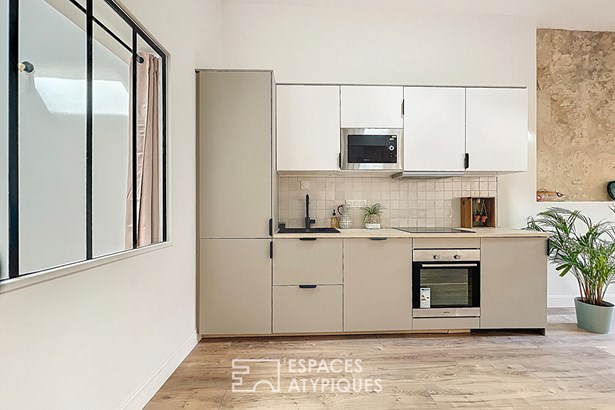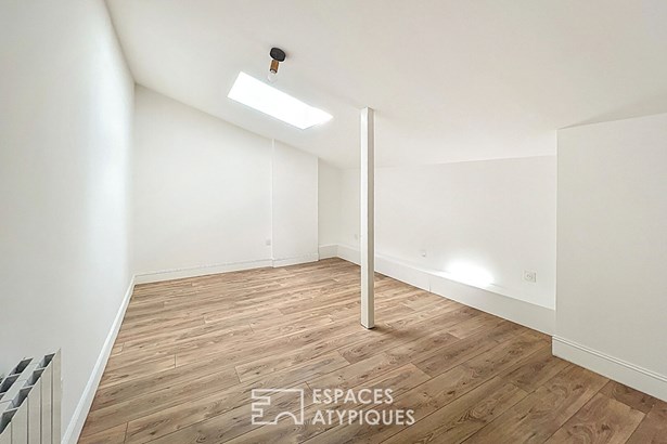 The layout of the spaces has been designed to combine comfort and functionality, while retaining the unique feel of the space. The quality of its interior design and its location make it a rare opportunity. Located in close proximity to all amenities (shops, transport, schools), in a dynamic neighborhood undergoing rapid change, it allows for an urban lifestyle, while being protected from the hustle and bustle thanks to its location set back from the street.