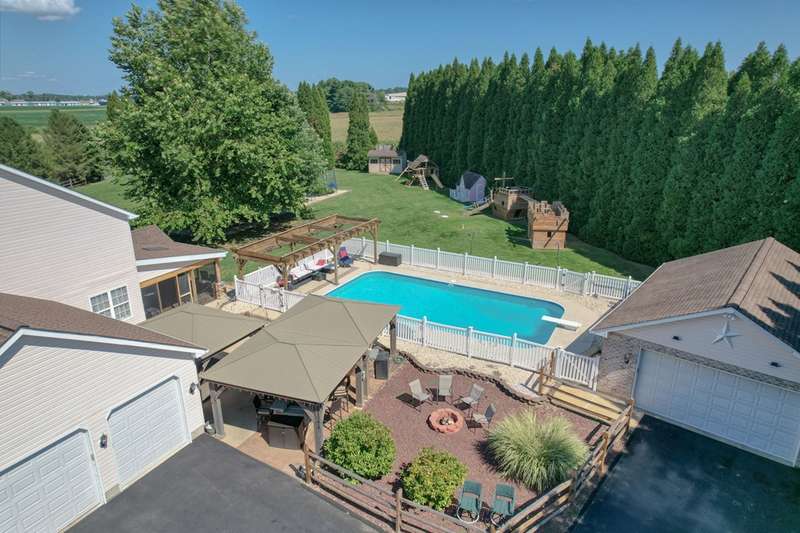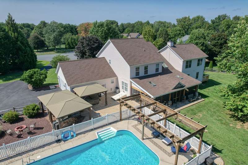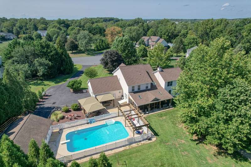 Welcome to Dickerson Farms where this spectacular home sits on 1.27 acres .... a cul da sac....a lot that is completely private with trees over 25ft tall.... a backyard Oasis... a spectacular bar ... an outside kitchen... a hot tub....a large inground pool ....a screened in patio with 4 hard mounted heaters and a stone fireplace that is a WOW factor...tons of backyard adventure playsets...a 3 car attached garage and a detached 2 car garage IS HEATED and has compressed air with multi port locations....did I mentioned a driveway for 10 cars.. the list is endless....Now, lets head inside to a lovely home that boasts ....FAMILY....six bedrooms including a first floor primary bedroom and amazing primary bathrooms(his/her). This spacious home has a large kitchen with modern appliances and new granite counter tops which overlooks the large family room featuring a stone gas fireplace.....lovely sized formal living room and dining room...a mudroom that is amazing with a large walk in pantry..... a finished basement with a full bathroom ......This is where the fun and memories happen... come see this 6 bed, 4.1bath, outside paradise home and such a beautiful neighborhood.