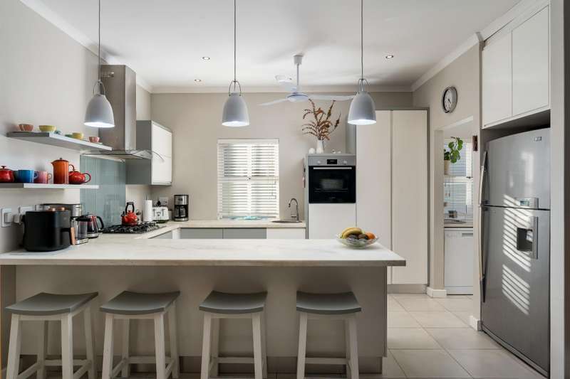 This beautifully maintained three-bedroom home in the award-winning Val de Vie Estate offers generous living spaces, natural light, and effortless flow?Çöideal for family living and entertaining. The open-plan living areas lead to a built-in braai room and a landscaped, water-wise garden perfect for year-round enjoyment. The modern kitchen offers ample storage and a separate scullery with direct access to the double garage and laundry area. The main suite features a walk-in dressing room and en-suite bathroom, while the second bedroom also has its own en-suite. The third bedroom opens onto the tranquil garden. A solar inverter system ensures peace of mind during load-shedding. Enjoy secure, estate living with access to world-class amenities, parks, and walking trails?Çöall just a short stroll away.