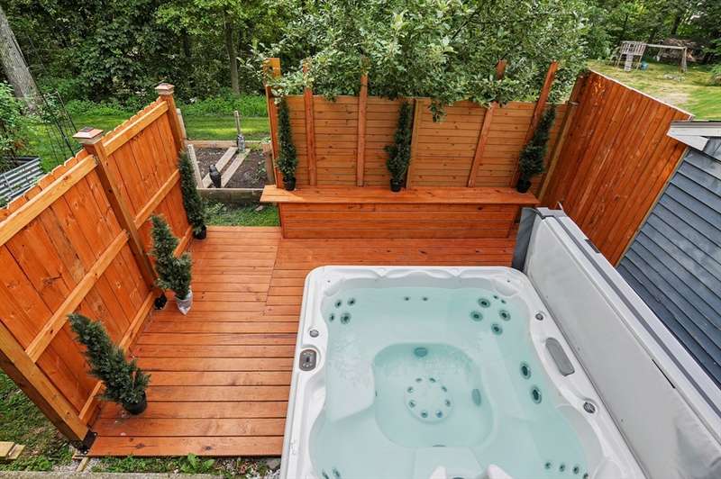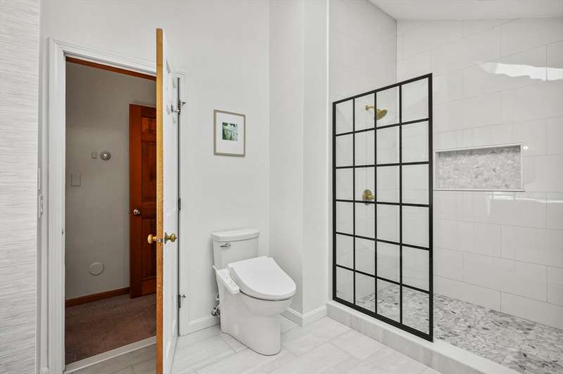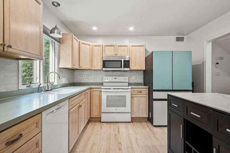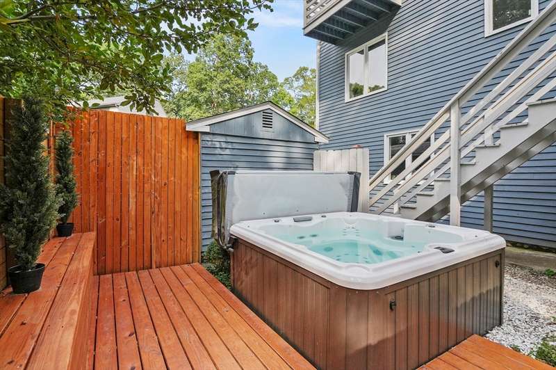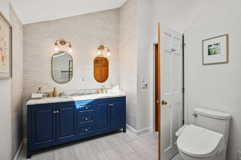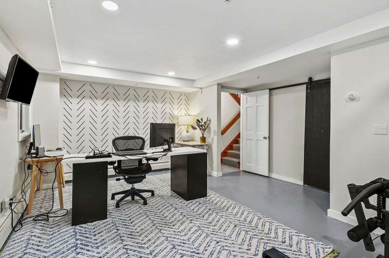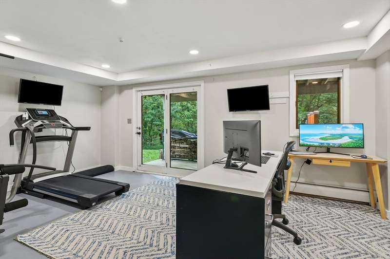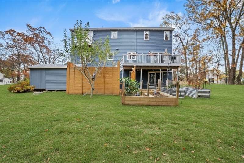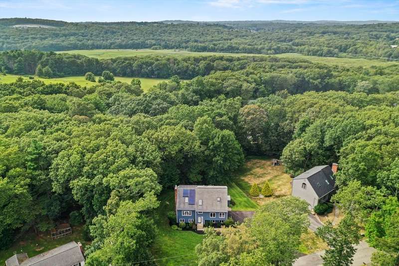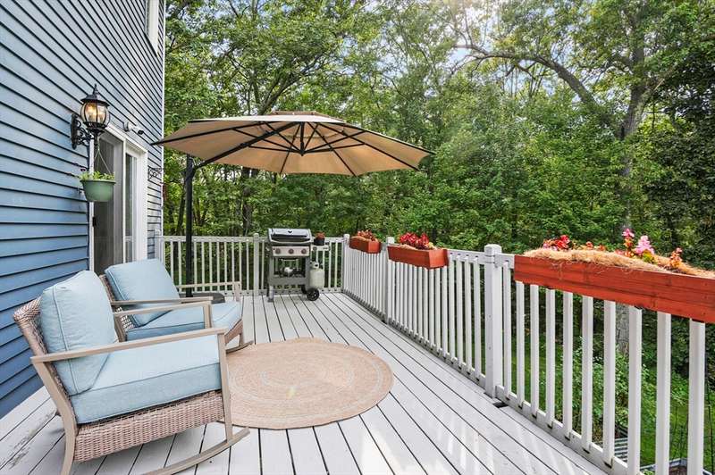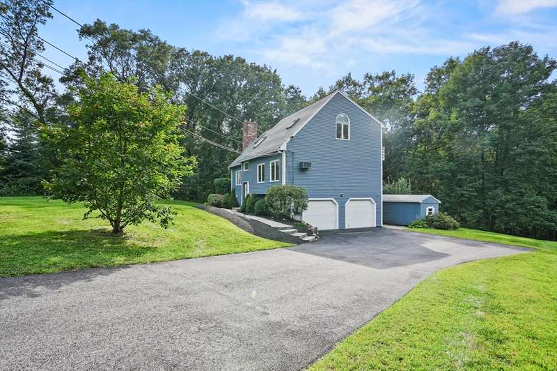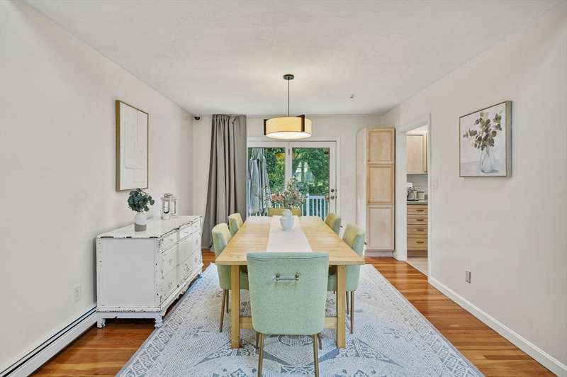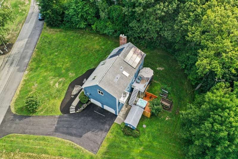 Step inside this revitalized contemporary Cape! The sun-drenched, open-concept living & dining area is spectacular, vaulted ceiling w/skylights pours in warmth & light, all complemented by a cozy wood stove. The bright dining room flows seamlessly out to the back deck. In the kitchen, you'll find newer appliances & sleek recessed lighting. Two spacious bedrooms w/ample closets & full bath are down the main hall. Upper level is a private retreat: primary suite boasts a vaulted ceiling w/skylights, walk-in closet & updated bath with modern amenities. Step onto your private balcony to unwind with the peaceful sounds of nature. 4th bedroom has multiple windows finishes this floor. The lower level offers a versatile bonus room with half bath & slider that lead directly to the backyard. Enjoy tree-lined privacy, relaxing hot tub & wooden privacy fence, storage shed, along with spacious back deck. Superbly located just minutes from conservation trails, T-station, Tufts Vet School & dog park!