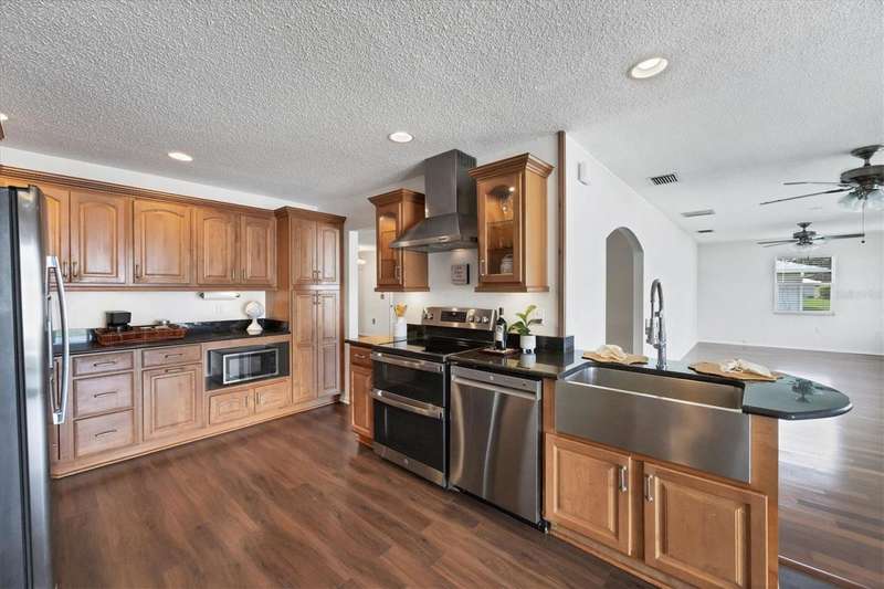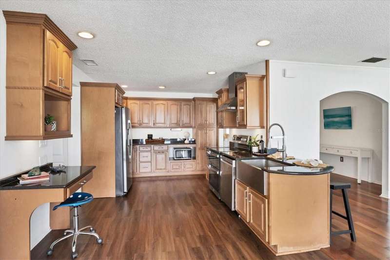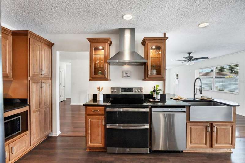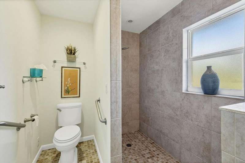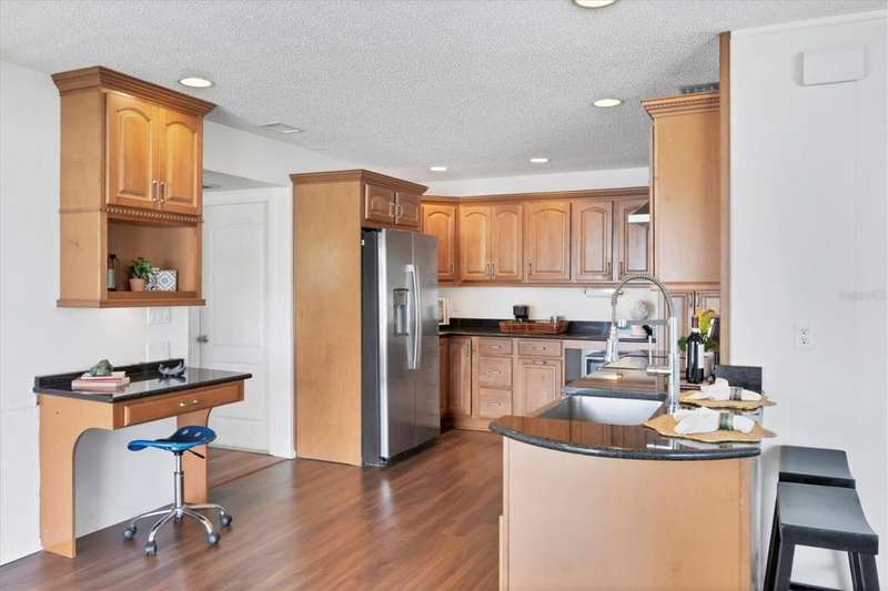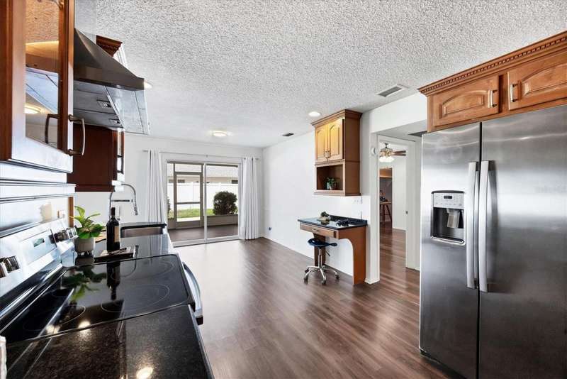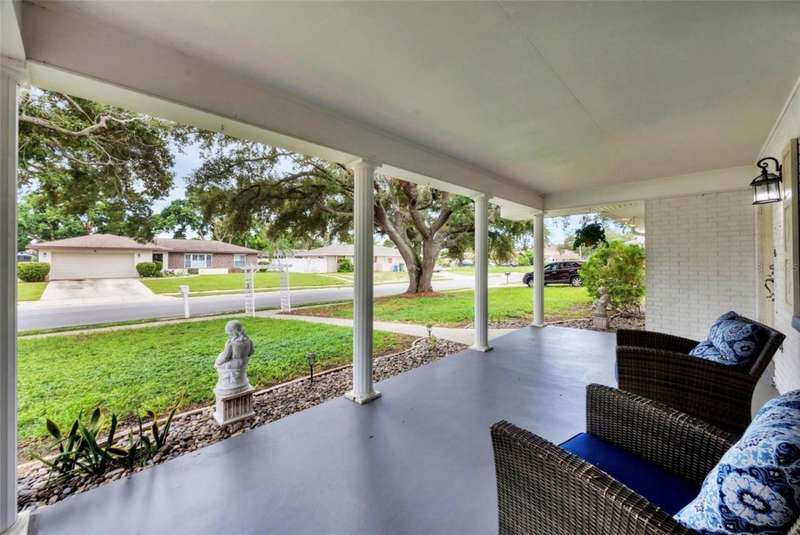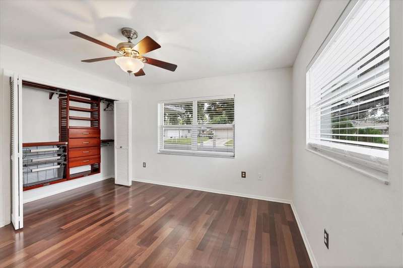 Under contract-accepting backup offers. One or more photo(s) has been virtually staged. This is a wonderful opportunity to become the new owner of this Pine Lakes 3 bedroom 2 bath home, 2.5 car garage centrally located in West Bradenton. A charming covered front porch invites you into a home that has been lovingly maintained and attractively updated. Inside you'll find beautiful Brazilian Cherry wood flooring in the main living area. A remodeled large kitchen will have you smiling with its abundant storage options and showcases solid wood cabinetry, lit-up glass display doors, granite countertops, a farmer's sink, smudge-free stainless steel appliances along with a ceiling mounted range hood and a desk station. The split plan layout is perfect with a formal dining and living room in addition to a breakfast nook and a HUGE 28 x 12 family room. Both bathrooms are tastefully updated and feature custom wood cabinetry in two of the bedroom closets to help keep your items organized. The big ticket items are covered for you with a 2022 roof, a 2016 4 Ton A/C, 15 impact windows installed in 2008 and a 2016 water heater. The sprinkler system that includes a well will maintain your lawn keeping it lush and green while saving you $ on your watering bill. Additional features include attic storage, wheelchair accessible features and a large oversized two car garage that offers potential to be air conditioned for your workshop or gym. Relax in the privacy of your screened porch and backyard which will be the perfect romping grounds for little ones and pets. This immaculate home is located in an X non-flood zone and has no HOA or CDD fees. Be sure to view the 3D Virtual tour floor plan!