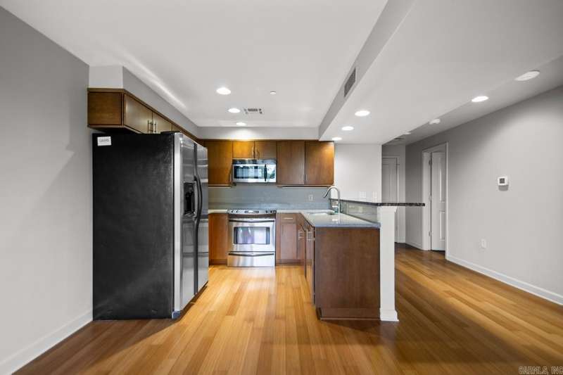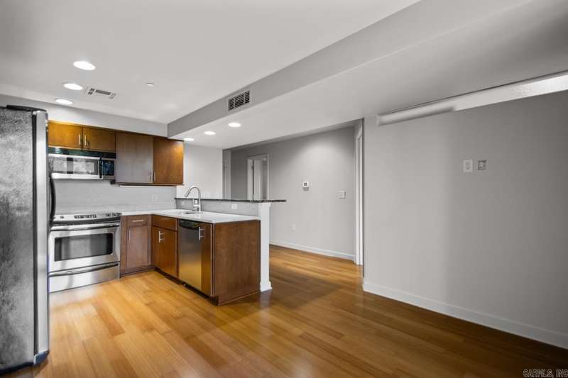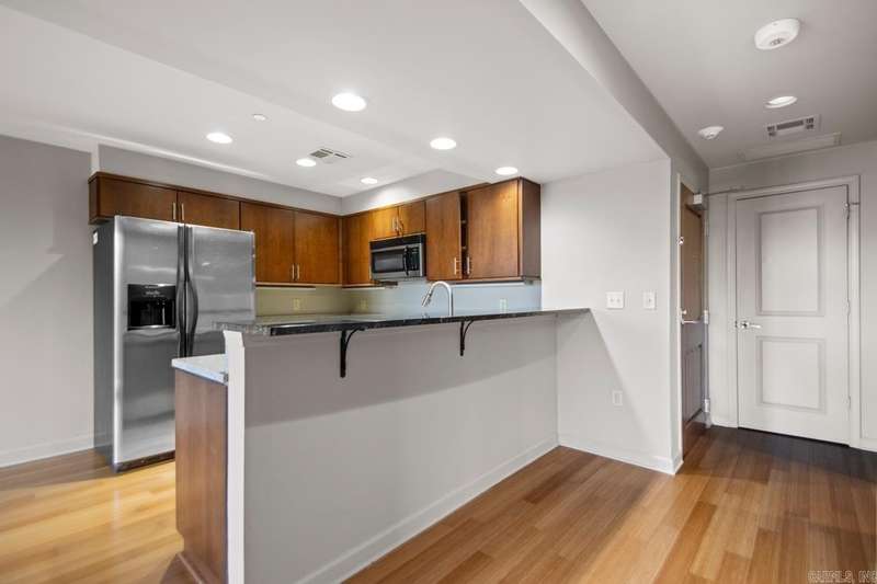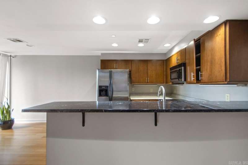 Excellent one bed one bath condo in the highly sought after Riviera Condominium building. Conveniently located just minutes from downtown, Heights, and Hillcrest; this location also provides easy walking distance to the many local restaurants and shops located in the Riverdale area. Kitchen with granite countertops, stainless steel appliances, and breakfast bar. Hardwoods throughout with tile in the bathroom. Tankless water heater, walk in closet, and a coat closet. Refrigerator, washer, and dryer will all convey. Security, private pool, and fitness center are just a few of the extra amenities. Enjoy the bluff views from the private balcony.