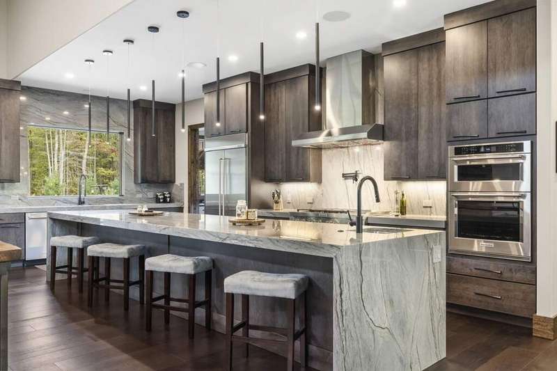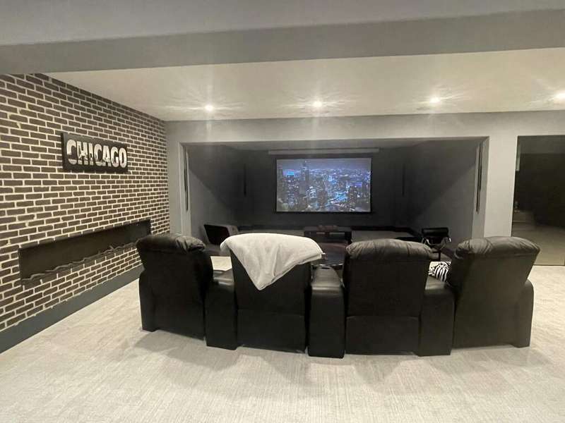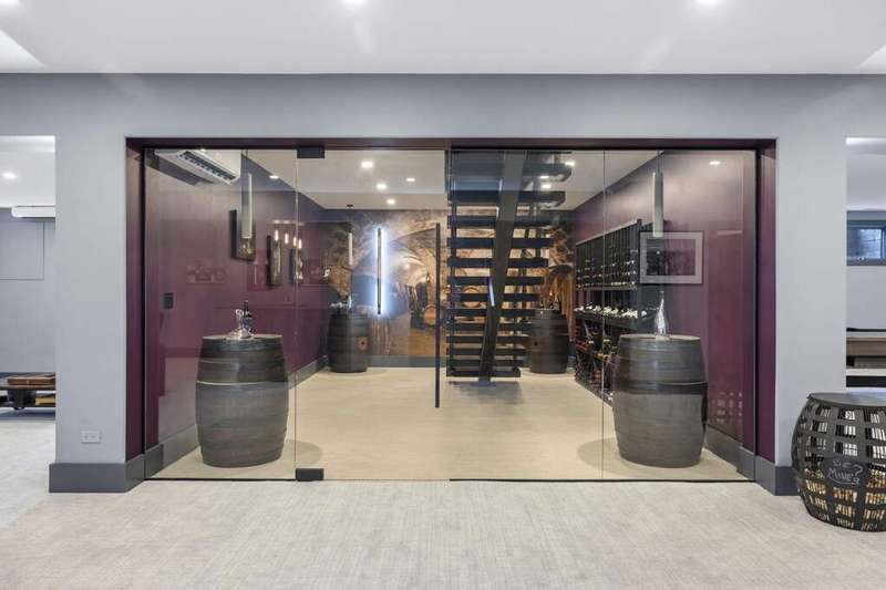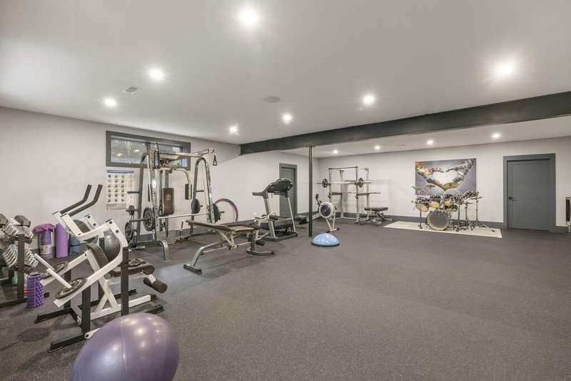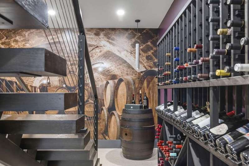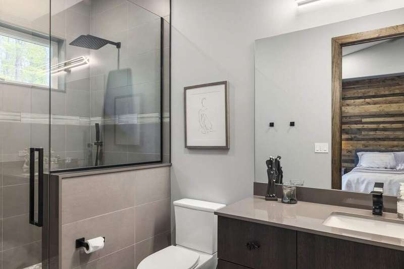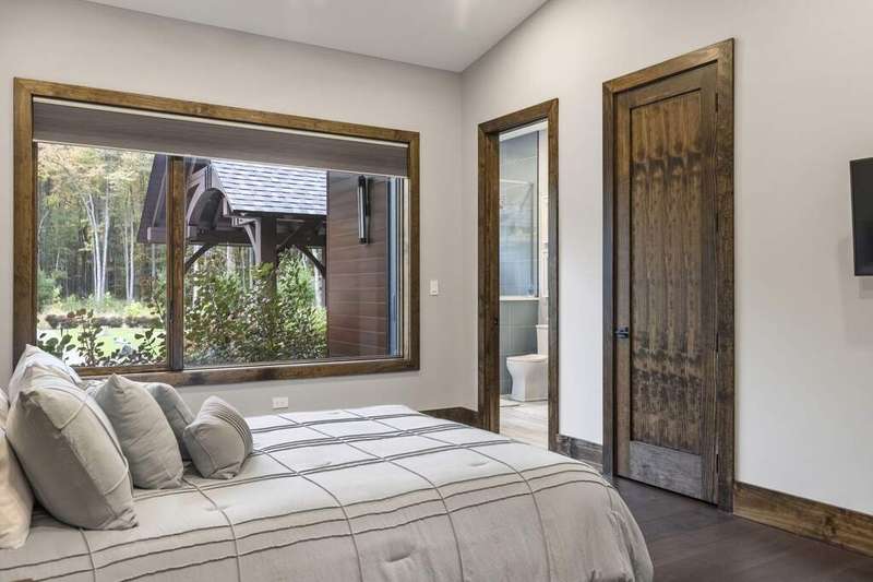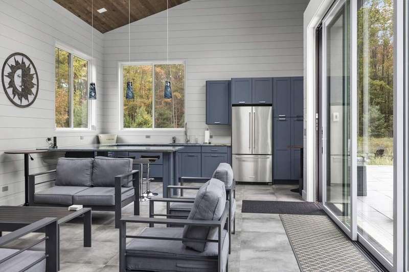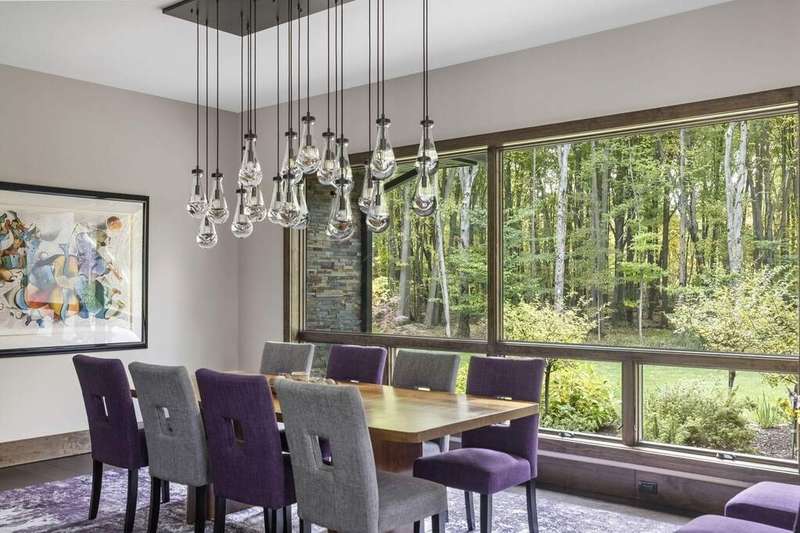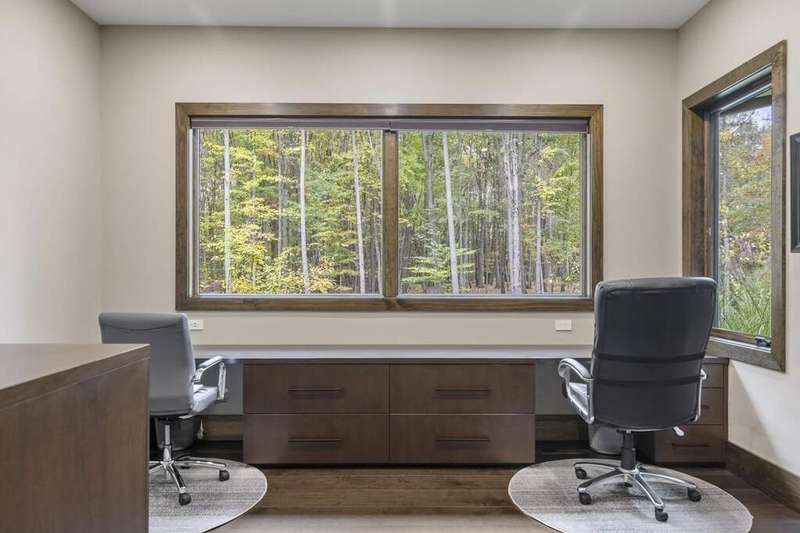 Nestled into seven wooded acres of complete privacy, this 9,828 sq ft architectural estate was designed and built as the personal residence of the Custom home builder, showcasing a level of craftsmanship rarely seen today. The 30 x 33 ft great room rises beneath 23-foot cedar ceilings wrapped with custom Cedar beams and illuminated by four circular LED fixtures. The chef's kitchen features a 17-foot island with three-inch-thick countertops, while the adjoining butler's pantry provides a second refrigerator, oven, microwave, and abundant storage. A striking live-edge Parota island conceals a hidden staircase leading to the wine cellar below. Two guest suites with private baths, an office with full bath, and a luxurious primary suite with heated floors in the bathroom, freestanding tub beside a fireplace, and steam shower complete the main level. Walls of motorized 20 x 10 ft Andersen pocket sliders connect the great room and 25 x 30 ft sunroom, extending to the 20 x 40 ft infinity-edge gunite pool with linear gas fireplace, illuminated putting green, bocce, and bean bag courts. The lower level includes a professional gym, billiard area, 4K theater with 160-inch screen and full bar. Outside, a hand-crafted Amish pavilion anchors the outdoor kitchen with pizza oven, multiple grills, bar island, and ambient lighting. A custom 18 x 36 ft pool house with full kitchen, bath, and Murphy bed completes this one-of-a-kind property.