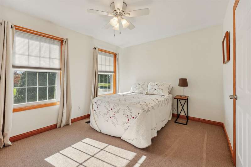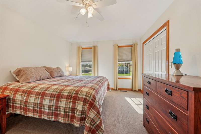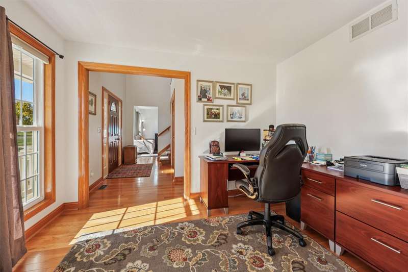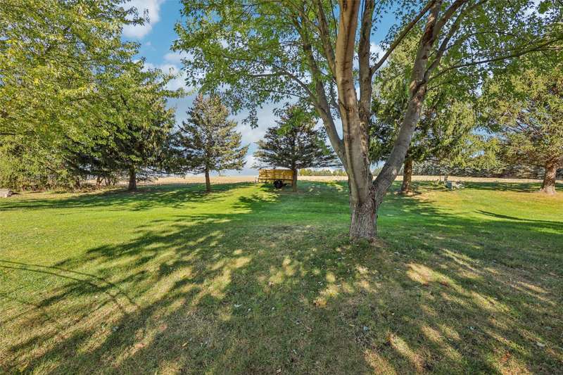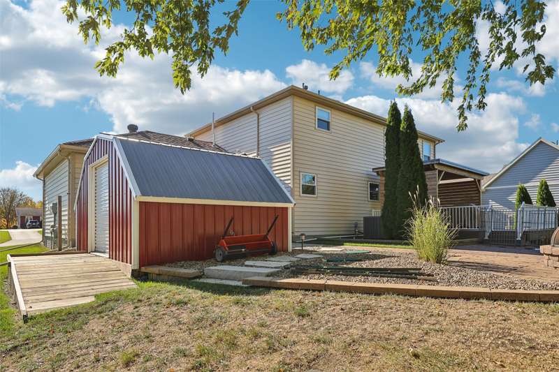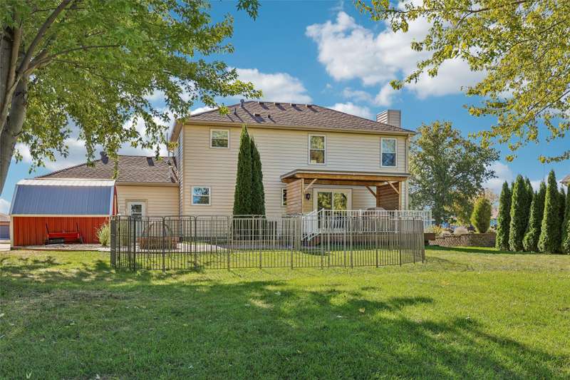 Alleman Estates awaits you! Quiet country living, in this 4BR 2 story, 3 bath home, 2 car att. gar, located on 1/2 acres, privacy, backs to cornfield. The home greets you with lovely landscaping, covered porch, and stone facet on garage, maintenance free siding. This home boasts updates galore. Roof, siding, stone Pella windows, flooring, custom kitchen, soft close drawers, quartz, newer appliances. New furnace, new septic, new radon mitigation installed. Updated bathrooms. Formal room/office, main floor family room, generous eating area with stone, direct vent gas fireplace. The basement is finished, family room down, egress window, storage, giving this home approximately 2,400sf of finished living. Outdoor living includes a large newer composite deck, covered with cedar pergola. The backyard has emerald arborvitaes for privacy. Relax back here, and watch the corn grow. This is a concrete patio, and a nice large storage shed that remains. The homes at the Estates rarely come up for sale, so do not miss this. Quick possession. Call today to see!