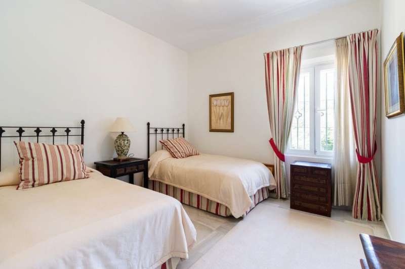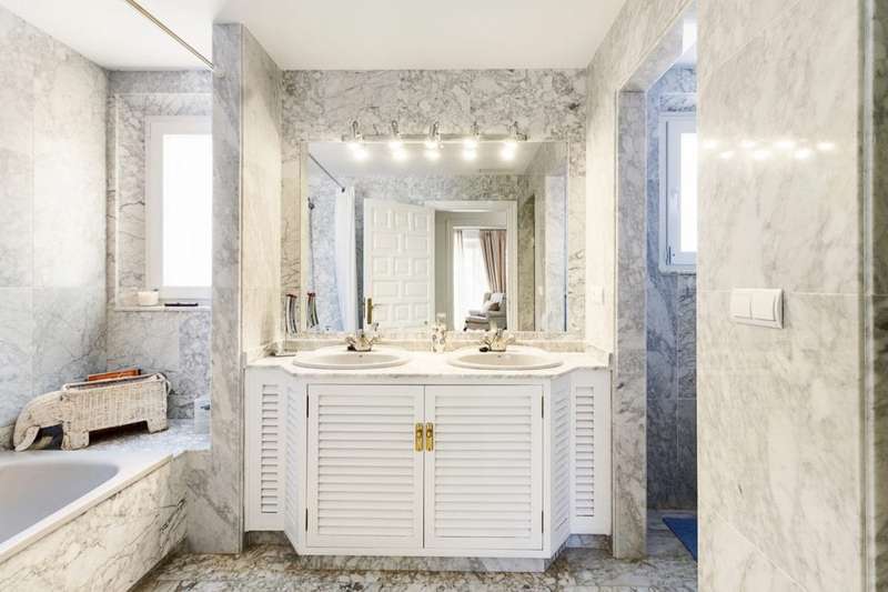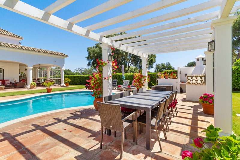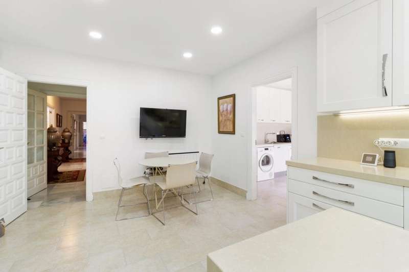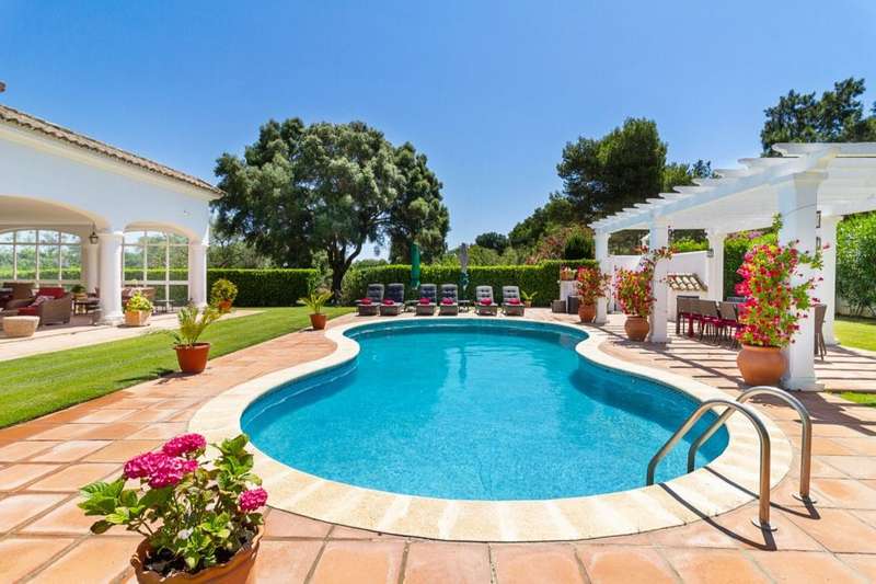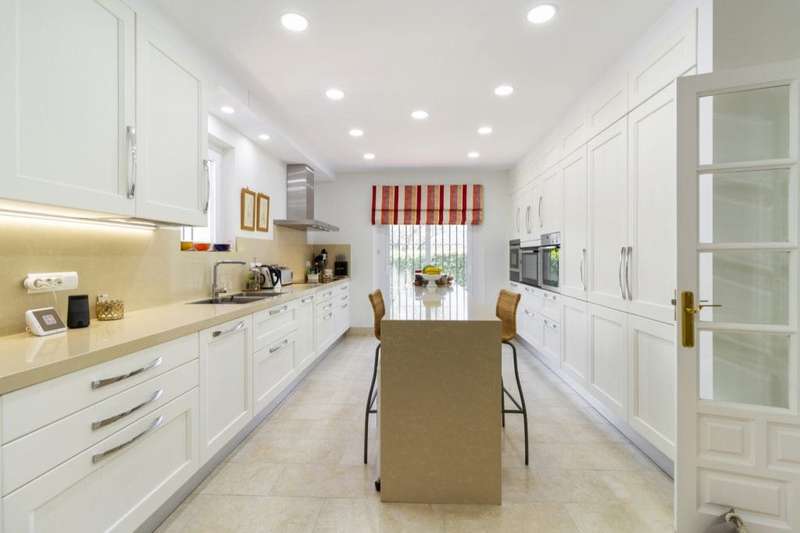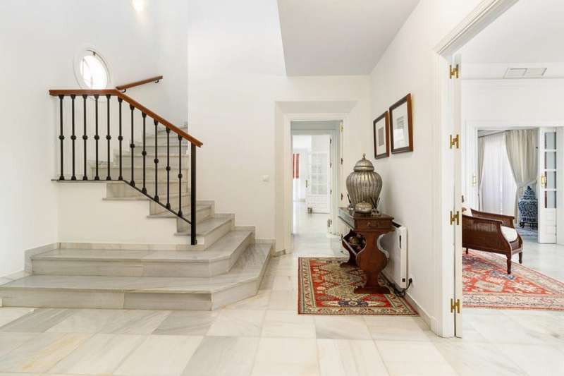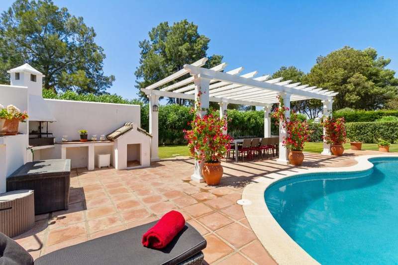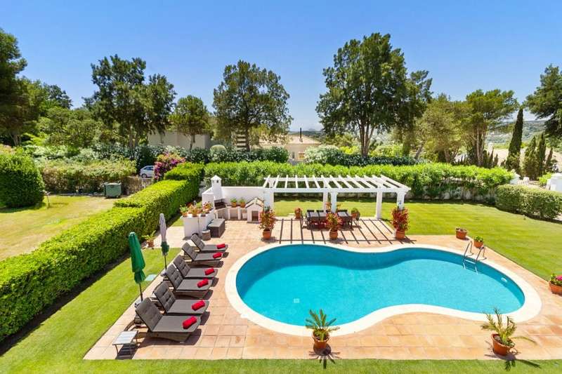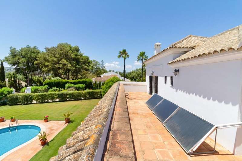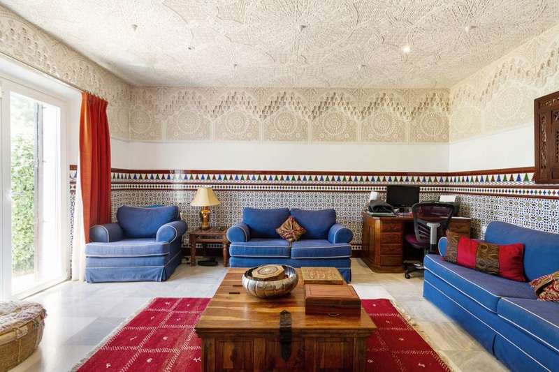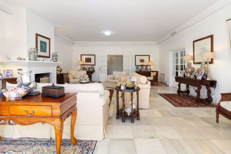 This exceptional property spans three levels, offering a luxurious living experience. The ground floor welcomes you with a grand foyer leading to a bright and spacious living/dining room adorned with a fireplace. Glass doors allow for separation of the dining and living areas. The dining room seamlessly connects to a generous covered outdoor living/dining area, perfect for enjoying summer evenings and al fresco dining. The bright and well-equipped kitchen features a large island and a breakfast area, leading to a spacious separate laundry and pantry area. Four spacious and bright en-suite bedrooms are also located on the ground floor. Additionally, a charming informal Arabic-style lounge boasts its own outdoor terrace. The first floor houses the master bedroom, complete with a large balcony offering panoramic views. The lower level includes a compact gym, a double garage, and a comfortable TV room. The meticulously maintained garden features an impressive barbecue area and a covered dining area. Complete with air conditioning and heating throughout, this property is impeccably maintained and in excellent condition. Explore the opportunity to acquire the adjacent plot of 2,678 m2 of land, also available for sale.