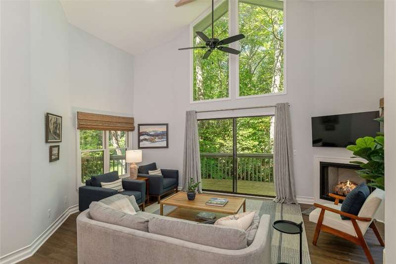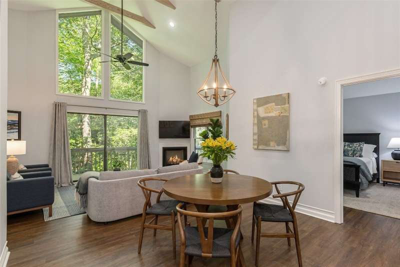 End-of-season price improvement! Tucked into a lush setting between Highlands and Cashiers, this refreshed and newly designated half-duplex offers an ideal mix of privacy, comfort, and access to one of the Plateau's premier lifestyle communities. Membership at Wildcat Cliffs Country Club is reserved with ownership-a significant advantage, as there is currently a waiting list for non-residents. This is a turnkey opportunity for elevated mountain living, complete with your choice of full golf or social privileges. Inside, the bright, light-filled home features soaring ceilings, expansive windows, and an open-concept layout anchored by a sleek gas fireplace. A spiral staircase leads to a loft space that overlooks the living room - perfect for a den, home office, or studio. The spacious primary suite includes an ensuite bathroom, while the second bedroom and full bathroom provide ample space for guests. Outside, enjoy a classic front porch and a large back deck that overlooks a beautifully landscaped yard wrapped with native flora. The property also includes a one-car garage with space for a golf cart and an extra parking pad for added convenience. Just minutes from the Whiteside Mountain trailhead and the fine dining and boutique shopping of Highlands and Cashiers, the home offers easy access to everything that defines life on the Plateau. Membership at Wildcat Cliffs Country Club offers access to top-tier amenities and includes a championship golf course, multiple dining venues, a recreation and fitness center with state-of-the-art equipment, tennis and pickleball courts, croquet lawns, stocked fishing ponds, a dog park, a playground, trails and a year-round calendar of curated social events. The available adjoining unit provides additional room for guests or the opportunity for expansion. Buyers who purchase both sides will benefit from preferred pricing. Whether for weekends or full-time living, this home is a sophisticated gateway to one of the Plateau's most celebrated communities.