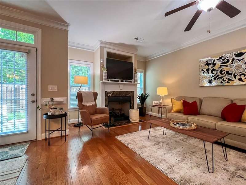 WARM, INVITING, BRIGHT, and AIRY! Enjoy the expansive, open floor plan on the main level thats FLEXIBLE with everything from a sectional to an extra-long dining table. AN OPEN LOFT upstairs thats perfect for a HOME OFFICE, or an EXERCISE ROOM OR converted to a THIRD BEDROOM. UPDATES/UPGRADES throughout, from designer paint to GRANITE and HARDWOODS, and a GORGEOUS, DELUXE TILED SHOWER. High, vaulted ceilings, gas logs, garage and attic and an oversized PATIO-GREEN SPACE thats fenced and private. Amenities, price and location THE WHOLE PACKAGE THATS BEEN WAITING JUST FOR YOU.