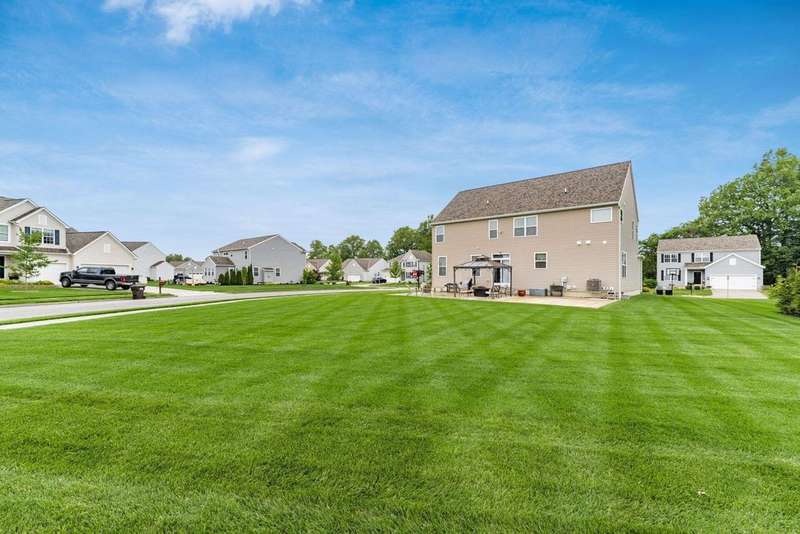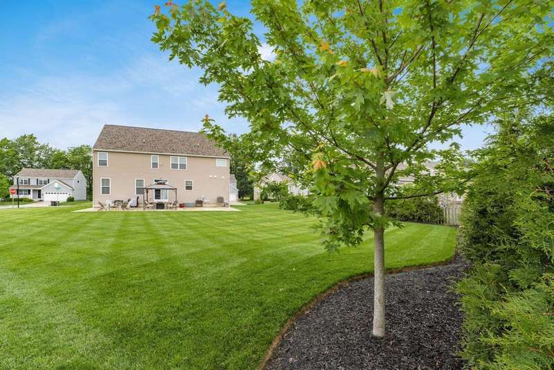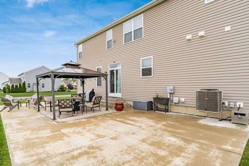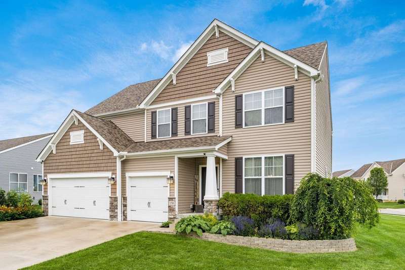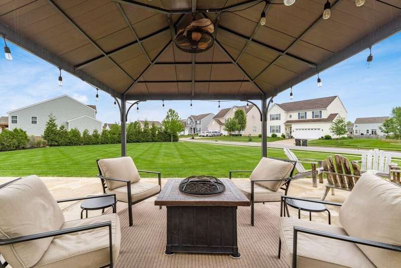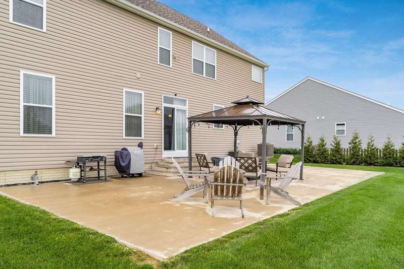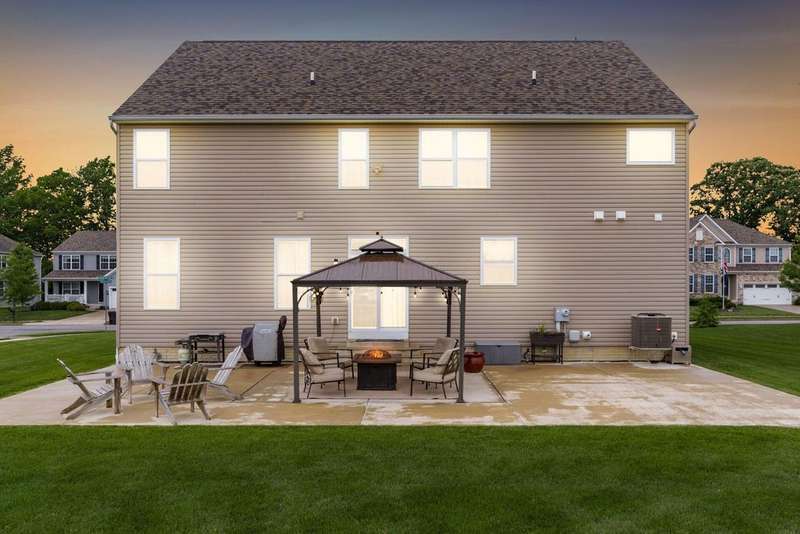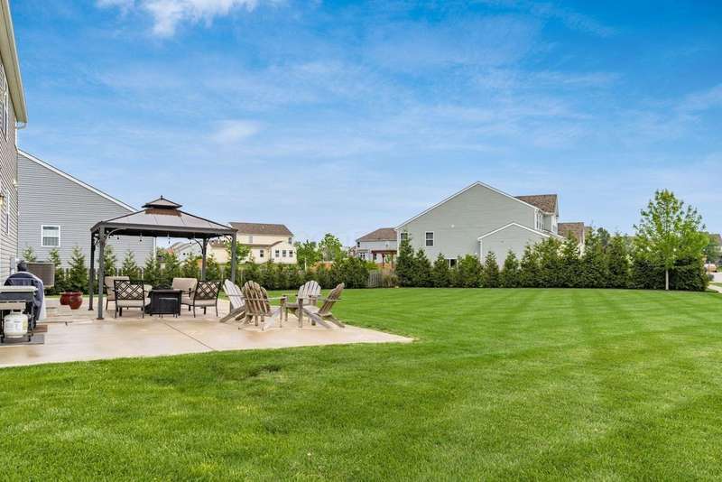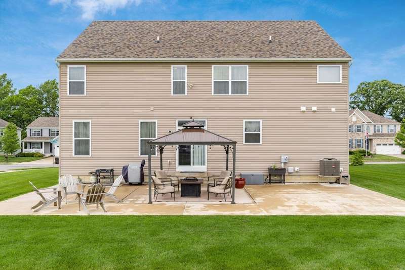 Welcome to this beautifully maintained 4 bedroom, 2.5 bath home on an oversized lot in a desirable community with a pool, large green space, and multiple walking paths. This home has a 3-car garage, gorgeous stone accents, and professional landscaping that adds to its curb appeal.Inside, you'll find real hardwood floors and a spacious open-concept layout. The main level includes a formal dining room, a dedicated home office, and a large living area that flows into the kitchen and eating space. The layout is perfect for both entertaining and everyday life.Upstairs, you will first find a loft, with a closet, that offers the option to easily convert to a fifth bedroom. The primary suite, with tray ceilings, is a generous size and offers two closets, a private en-suite with a soaking tub, and stand-alone shower.Step outside to enjoy the backyard oasis with a large patio, covered gazebo, and built-in gas lines for a grill or fire pit. The full basement features 9-foot ceilings and a bathroom rough-in, ready to be finished for additional living space.This move-in-ready home is ready to for you!