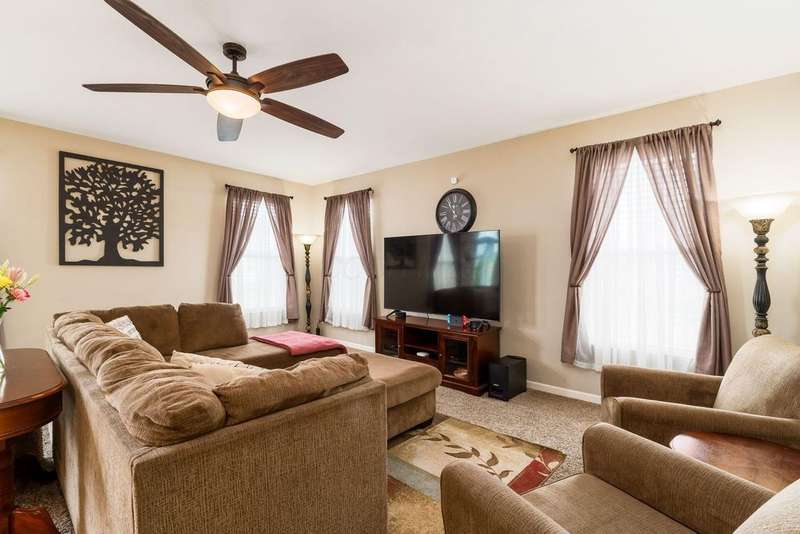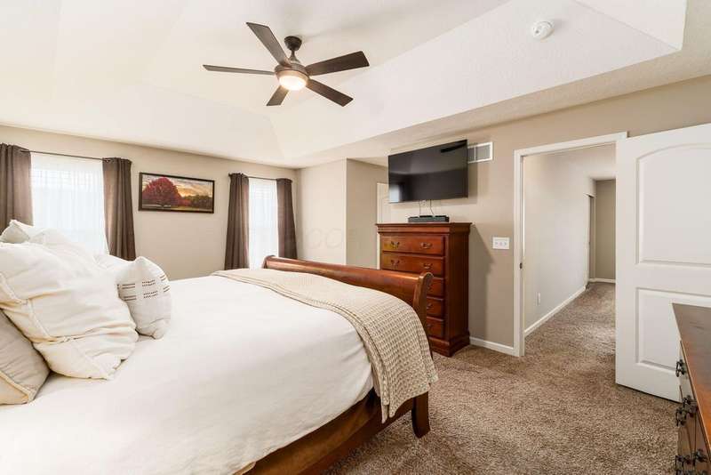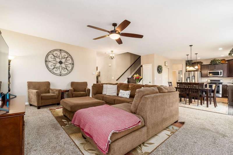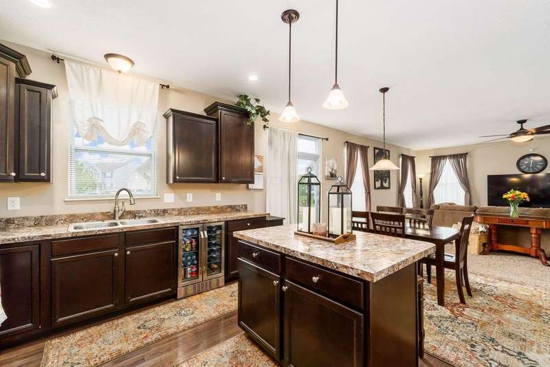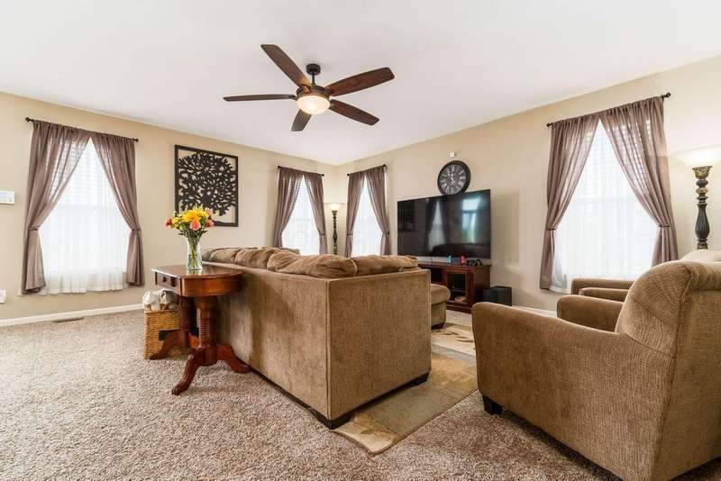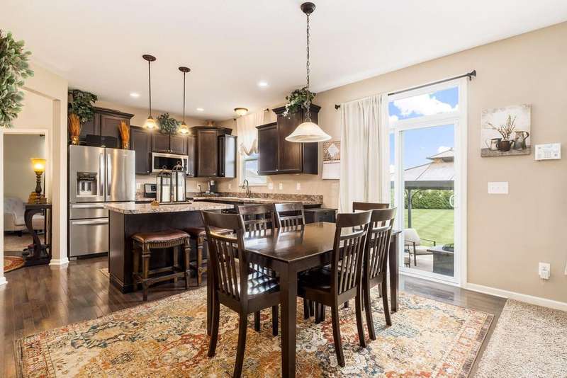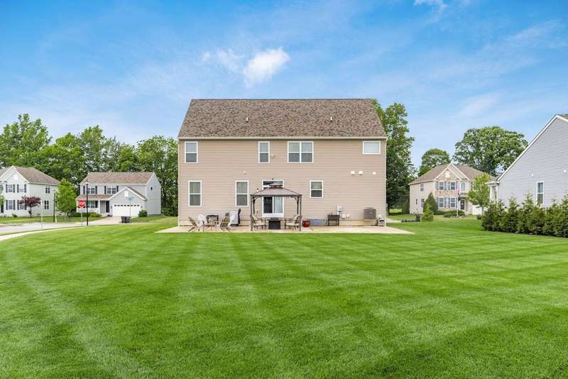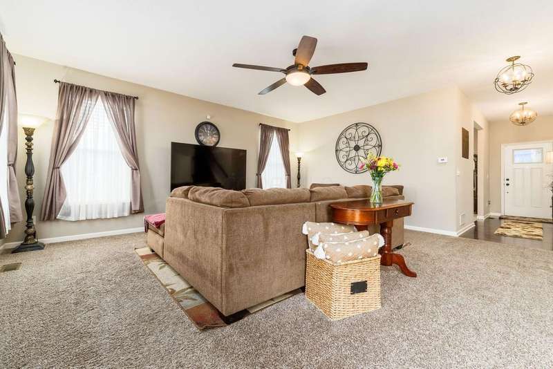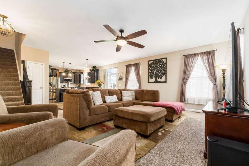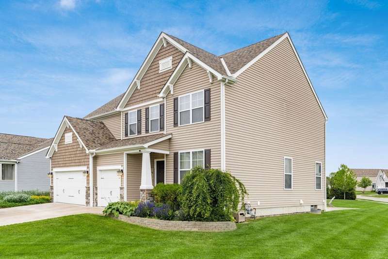 Welcome to this beautifully maintained 4 bedroom, 2.5 bath home on an oversized lot in a desirable community with a pool, large green space, and multiple walking paths. This home has a 3-car garage, gorgeous stone accents, and professional landscaping that adds to its curb appeal.Inside, you'll find real hardwood floors and a spacious open-concept layout. The main level includes a formal dining room, a dedicated home office, and a large living area that flows into the kitchen and eating space. The layout is perfect for both entertaining and everyday life.Upstairs, you will first find a loft, with a closet, that offers the option to easily convert to a fifth bedroom. The primary suite, with tray ceilings, is a generous size and offers two closets, a private en-suite with a soaking tub, and stand-alone shower.Step outside to enjoy the backyard oasis with a large patio, covered gazebo, and built-in gas lines for a grill or fire pit. The full basement features 9-foot ceilings and a bathroom rough-in, ready to be finished for additional living space.This move-in-ready home is ready to for you!