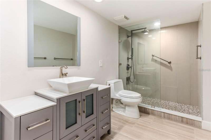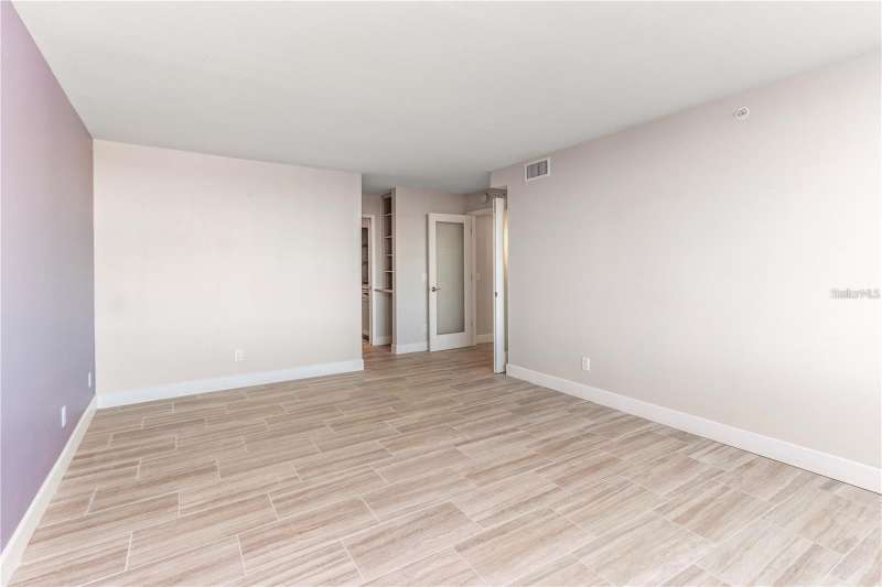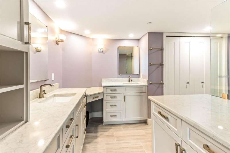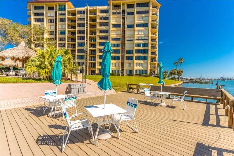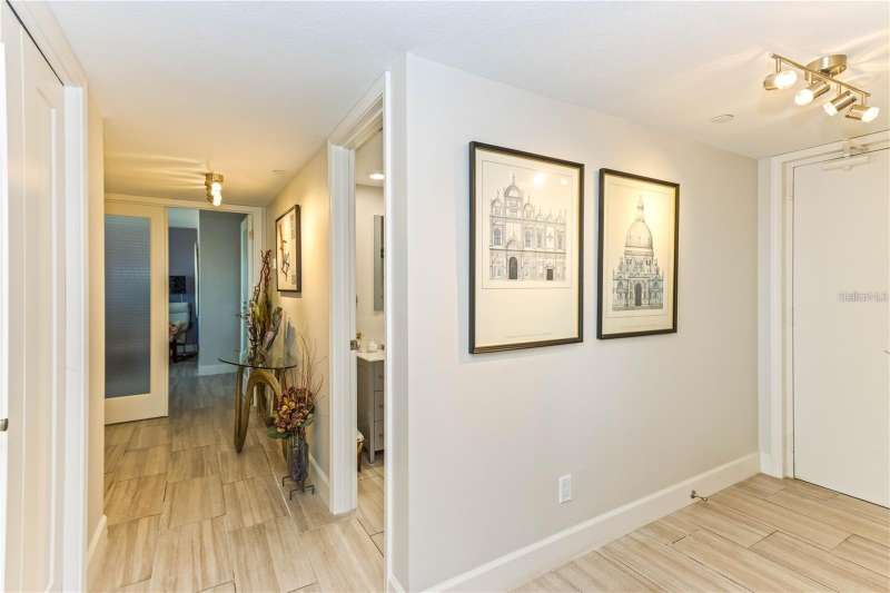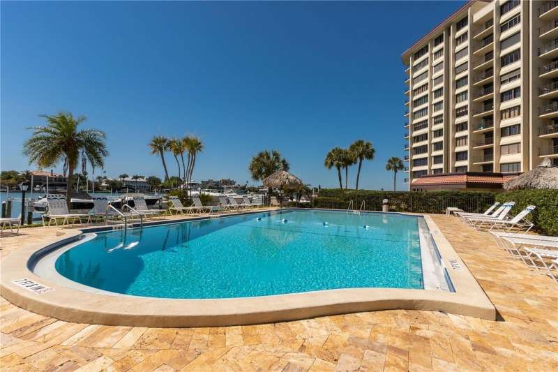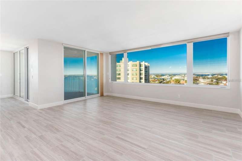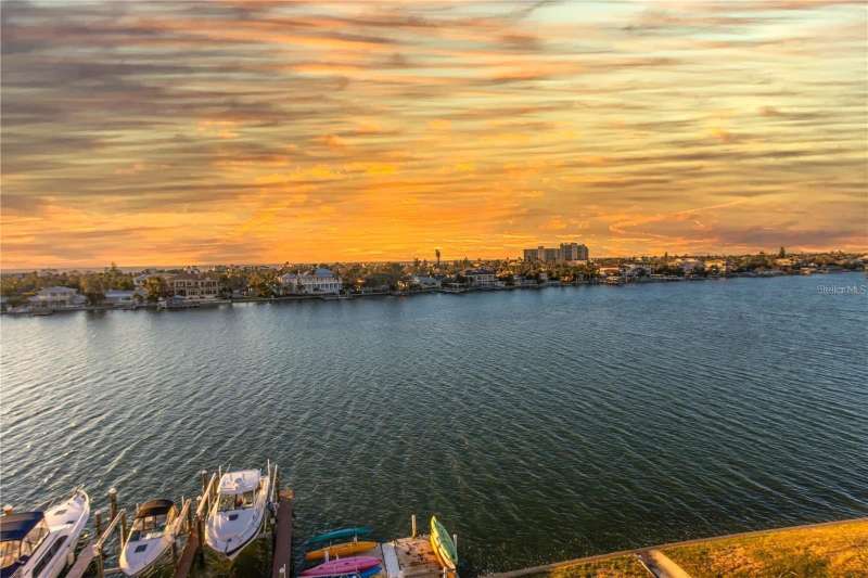 This one-of-a-kind architect designed Island Estates 6th floor home was completely renovated in 2019. This timeless property has been in the same family since the concrete frame structure was built to state-of-the-art construction standards. It meets the structural integrity standards of the current state of Florida and has passed recent Milestone Inspections. Located on an island off the Clearwater beach causeway and the intercoastal waterway, this unit offers a million-dollar corner view of the Gulf, Clearwater Beach barrier island, and Caladesi Island State Park. Enjoy the wonderful water views from the kitchen or adjoining flex room and living/dining room that open to a corner balcony offering sunrise views towards Tampa and the intercoastal waterway and sunset views of the Gulf. All living spaces enjoy marvelous views of the water. The newly renovated custom built-in kitchen features pull out soft close drawers and cabinets including custom corner pantry with half glass frosted door. The kitchen includes all high end appliances and a dry bar with wine cooler and a glass door bar cabinet. A wrap around peninsula includes counter height seating while a bar height counter separates and connects the kitchen and great room with custom pendant lighting for both areas. This two-bedroom custom condo features 12”x 24” porcelain tile floors with two full baths. The spacious master bedroom includes a built-in two-person office along the 12-foot window wall with granite counter tops and a view east of Island Estates and the intercoastal towards Tampa and Dunedin. The master ensuite features walk-in closet and bath with ample cabinets and linen closet with tub/shower glass enclosed wet area. Custom cabinets with quartz counter tops complete the suite. A separate laundry room includes custom cabinets, a stainless-steel sink with granite countertop, washer/dryer hook up and a utility closet. The total renovation in 2019 included the following upgrades: The condo has all new custom aluminum hurricane windows installed to Florida code for impact and wind loads. New white aluminum balcony railings installed for safety and code compliance. This is one of two of the 68 units that have 2024 required sprinkler system installed. All hot and cold-water lines were replaced with new PEX lines. New ductwork reworked and exhaust ducts were replaced with a new system. A new code compliant fire alarm system was completed. Do not miss this rare opportunity to own a piece of paradise!