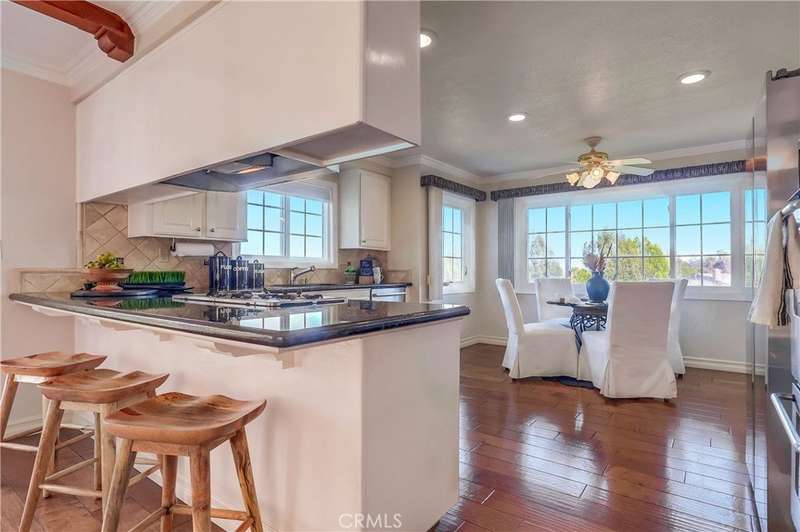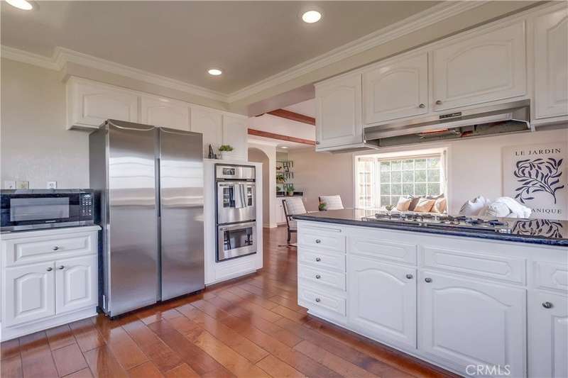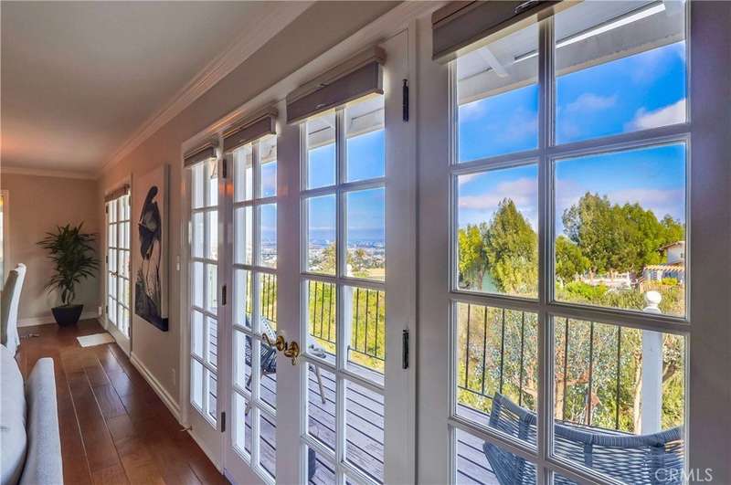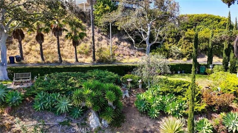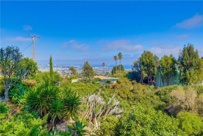 Experience breathtaking harbor and ocean views from nearly every room of this beautifully remodeled home, nestled at the southernmost point of LA County on the Palos Verdes Peninsula. Tucked away at the end of a quiet canyon, this property offers easy freeway access and is conveniently located just 25-30 minutes from both Long Beach and Los Angeles Airports. The home is thoughtfully designed with high-quality finishes, including numerous French doors that maximize the stunning views, elegant crown moldings, distressed hardwood floors, and plush carpeting in the bedrooms. The grand marble-inlaid entry leads seamlessly into the formal living room, dining room, and family room, boasting open-beamed ceilings and a wet bar. The gourmet kitchen is both stylish and functional, featuring granite countertops, a large peninsula with bar seating, and a sun-drenched breakfast nook where you can enjoy views from every angle. A beautiful bleached pine frame surrounds the brick fireplace in the living room, adding warmth and charm. This home offers TWO primary suites, each with panoramic views—one on each level—along with two additional view bedrooms, with access to private deck overlooking the terraced canyon. All four bathrooms have been tastefully remodeled, showcasing granite and tumbled marble accents. The expansive 19,543 sq ft lot is a gardener’s dream, with lush landscaping, an array of fruit trees, and vibrant vegetation. A spacious, flat grassy area off the kitchen and family room provides the perfect spot for family gatherings, all while soaking in the spectacular canyon, harbor, ocean, mountain, and city light views. Located within the renowned Palos Verdes Peninsula School District and just minutes from fine dining, shopping, hiking trails, Terranea Resort, and world-class golf courses, this peaceful, private retreat is a true gem. Meticulously maintained and move-in ready, this home exudes serenity and luxury.