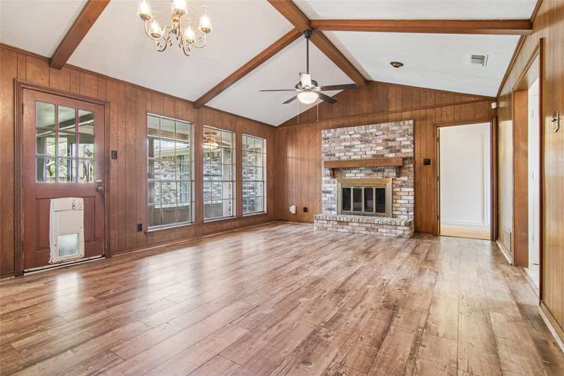 Wonderful family home in East Richardson that just needs your personal touch to make it shine. This one story, four bedroom, two and one half bath home is filled with space and possibilities. Interior recently painted, $35,000 has been spent replacing cast iron pipes with PVC, and Foundation repaired with a lifetime warranty. Large living areas including the Sunroom and 2 dining areas make this home great for entertaining. Plantation shutters, vaulted ceilings with wood beams, brick wood burning fireplace are just some of the features. The shed in back will stay. Located in the friendly neighborhood of Woodhaven, it offers easy access to I 75, local amenities, parks, and GREAT RISD schools providing a perfect blend of comfort and convenience.