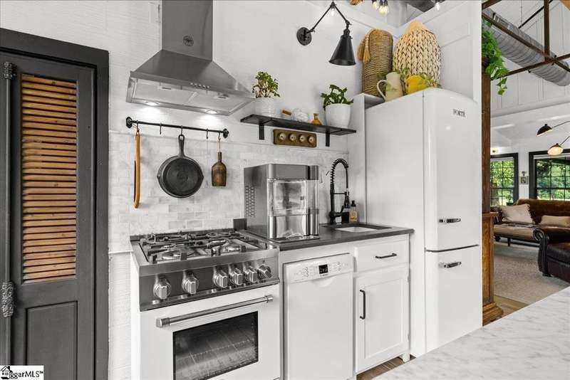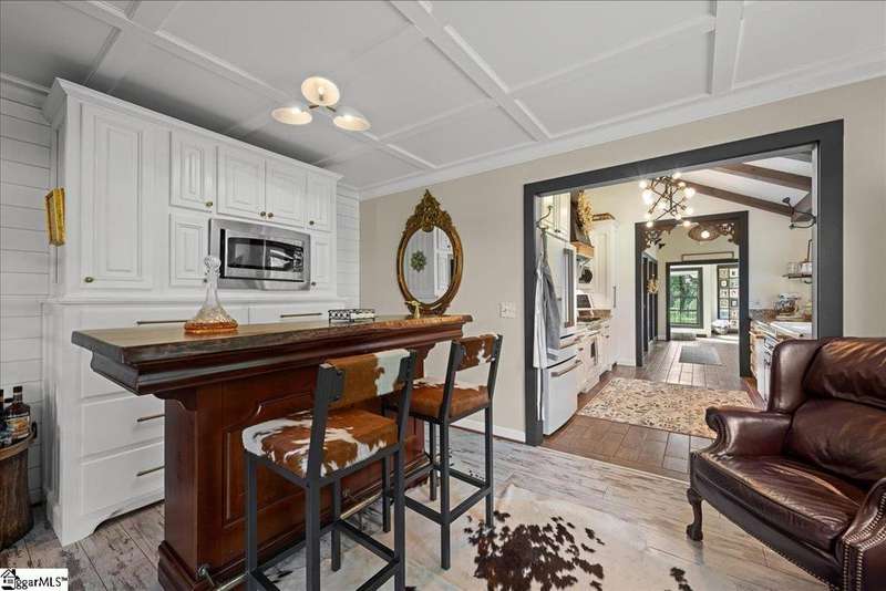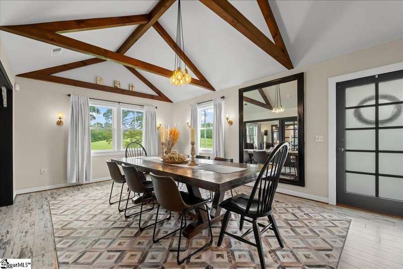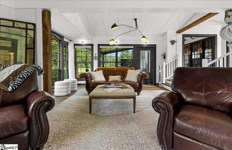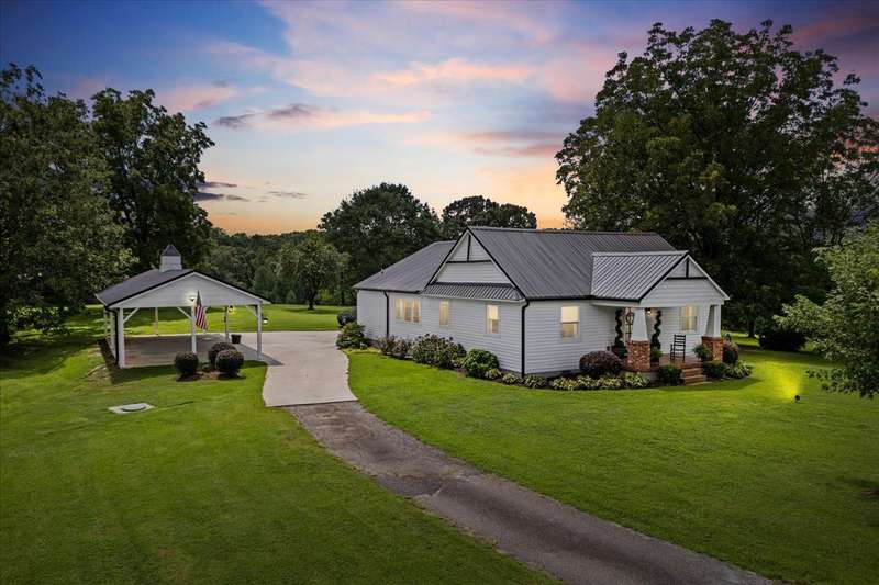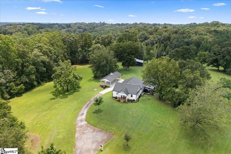 Exquisite and timeless, this custom farmhouse blends 1940's character with modern luxury perched on 4+ acres of serene countryside. Additions were added on, and the home was thoughtfully updated inside and out. It showcases three bedrooms, four full bathrooms, and multiple living spaces designed with both comfort and style in mind. There is a family suite attached to the rear of the home with a kitchenette and full bath, providing endless flexibility for in-laws, guests, entertaining, or even rental potential. The heart of the home shines with high-end finishes with luxury appliances, including two Italian gas ranges (Ilve + Bertazzoni), granite countertops, marble backsplash, multiple fireplaces, and a free-standing tub in both primary suites. Outside, every detail invites you to slow down and savor the setting. Multiple patios overlook rolling pastures, walking trails, local wildlife, and landscape enriched with fruit bushes and nut trees . A four-car carport is the perfect addition and can double as an elegant entertaining pavilion, while the striking barn near the rear of the property offers endless possibilities?from memorable gatherings to a picturesque event venue. Modern essentials?metal roof, dual tankless water heaters, two septic systems, and much more ensure the home is as practical as it is stylish. A rare blend of sophistication and country charm, this farmhouse is more than a home?it's a destination.