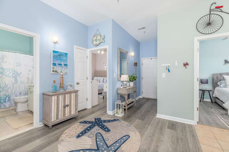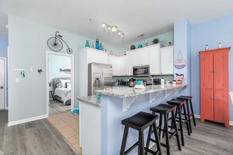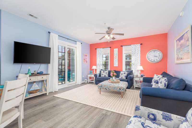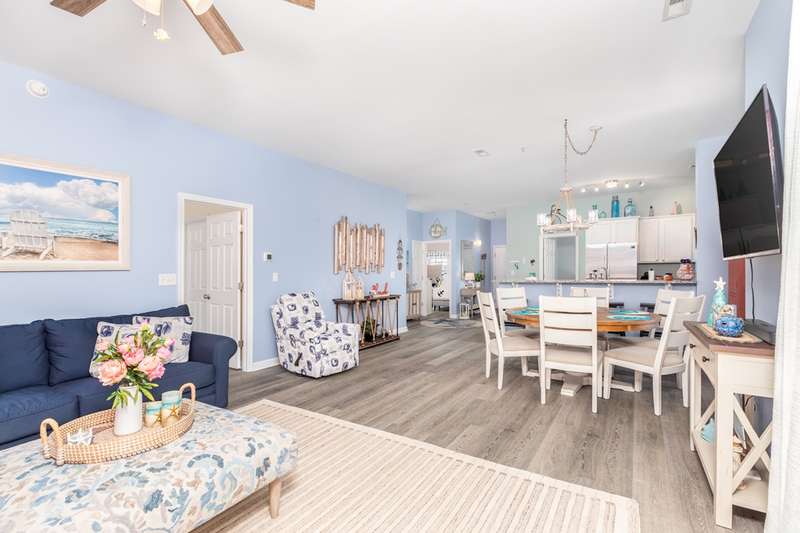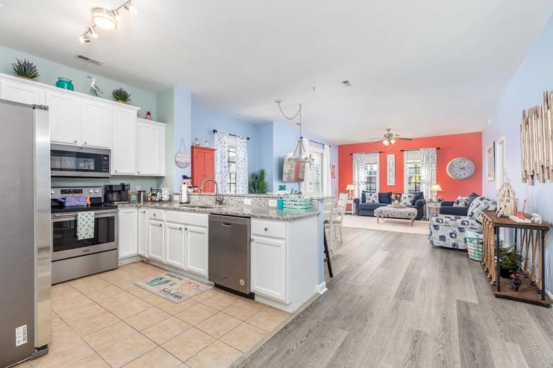 Location, Location and Location.......NEW ROOF COMING....Welcome to this perfect end-unit condo located in the Villages of Five Points West!!!! Nearly 1500 sq ft of living space.... This great sized unit offers 3 bedrooms, 2 full bathrooms, great family room, kitchen and dining area, and an amazing balcony overlooking the Town Center.... Newer HVAC, newer hot water heater and newer appliances. The Town Center offers shops, restaurants, salon, fitness center, a bakery....the list goes on. This wonderful community has a community pool, tennis/pickleball courts and a community center all within walking distance. Did I mention the amazing bike trail, the short drive to town and the Beaches! This unit is just spectacular...low maintenance lifestyle in a stunning landscaped community with so much to do around you. Looking for a primary residence, a vacation get away or an income generating rental....Make that appointment today!
