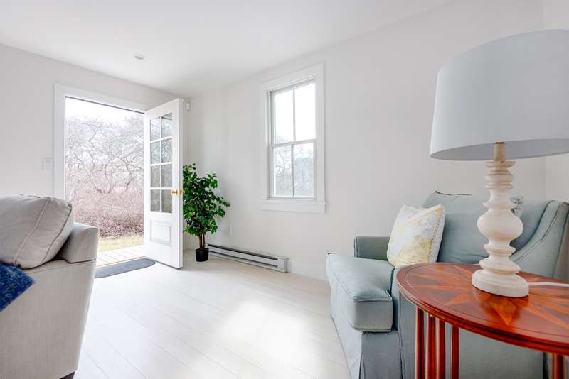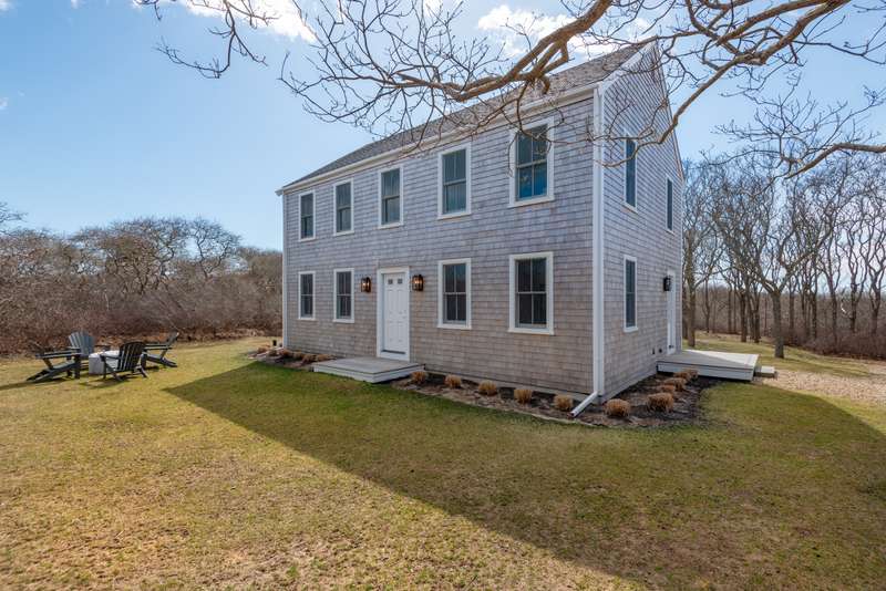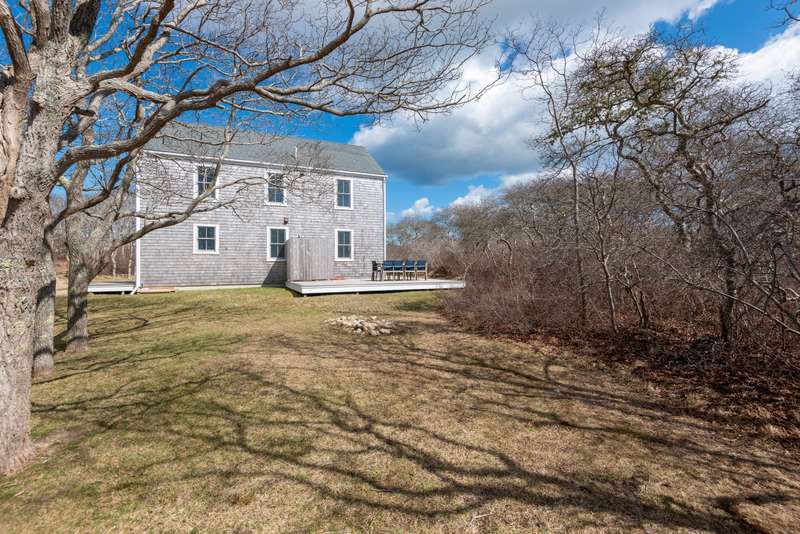 Set on one of the most picturesque lots in Tom Nevers East, this newly renovated 4-bedroom, 2.5-bath home offers the perfect blend of comfort, privacy and natural beauty. Surrounded by a tree-covered lawn and backing up to 28 acres of protected Land Bank property, the 1.1-acre parcel provides space to unwind and room to breathe. Yes, there IS room for a pool!! Inside, you ll find gleaming hardwood floors, new Anderson 400 Series windows and a fresh, modern feel throughout. The spacious mahogany deck and outdoor shower invite you to soak in the Nantucket lifestyle, whether you re entertaining guests or enjoying a quiet moment outdoors. This home has never been used as a vacation rental, giving you the rare opportunity to be the first to create lasting memories in a space that feels brand new. Residents of Tom Nevers East enjoy access to community tennis courts and are just minutes from the stunning beaches along the South Shore. Whether you're looking for a peaceful year-round retrea