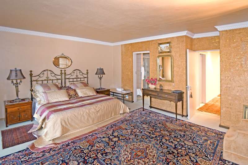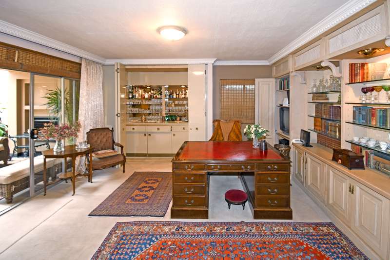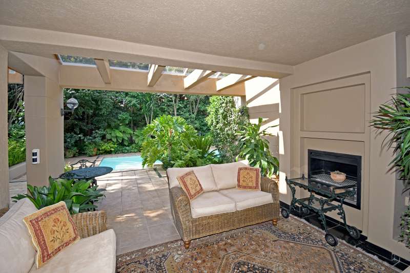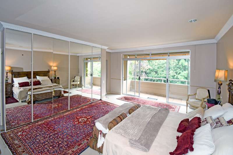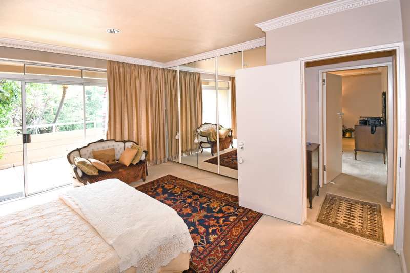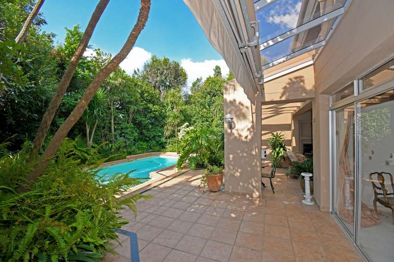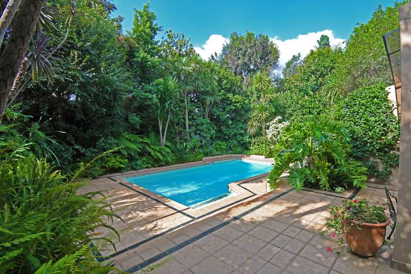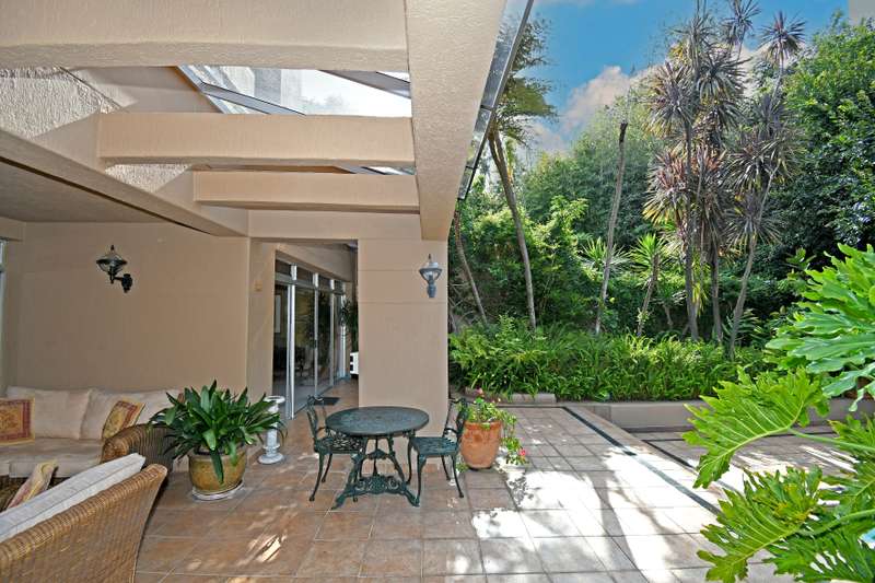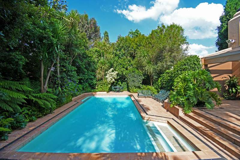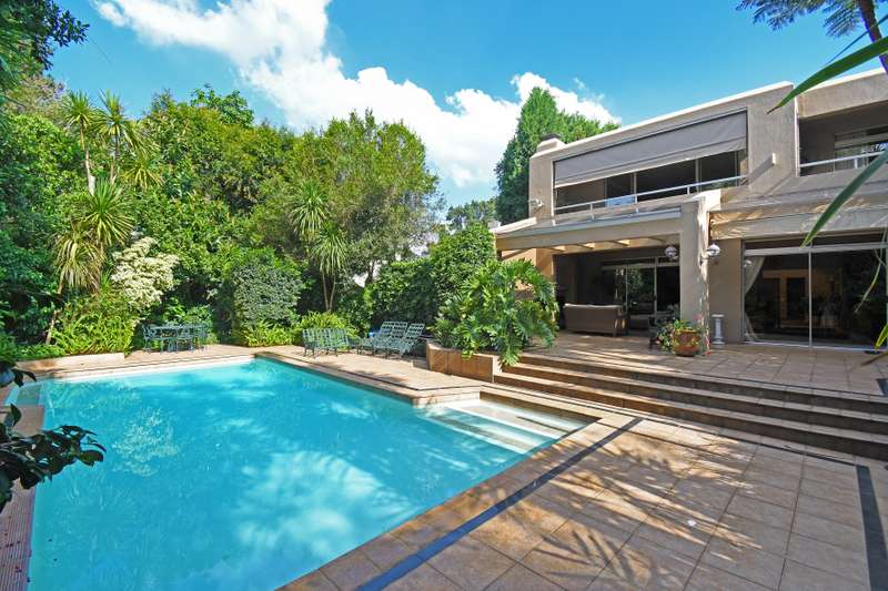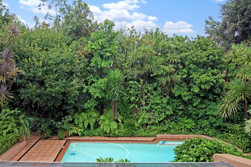 Renowned Michael Sutton has created another unique masterpiece of design. A north facing, tranquil haven offering exceptional size, expansive double-volume spaces, private garden & pool. Nestled in a pet-friendly, secluded complex of 4 in the heart of Illovo, conveniently located between Hyde Park, Sandton CBD, Melrose Arch, Rosebank, a 2-minute drive to the M1. A grand entrance is created by the unique sun roof which can be opened as needed to allow air flow via the hydraulic mechanism. The residence has an elegant ambience with seamless flow from one space to another offering three generous reception rooms each with its own distinct charm. A built-in bar flows out to the under-cover patio, perfect for year round entertaining. The established, low maintenance private garden is a lush, green sanctuary surrounding the large swimming pool, offering an idyllic outdoor space to enjoy the tranquil setting. In the heart of the home is a large Chef’s style kitchen, well equipped with plenty of storage, a scullery offering space for three appliances plus double fridge. This kitchen caters to all needs with ease offering utmost convenience and practicality. Guest cloakroom downstairs with additional built in storage. Upstairs, 3 bedrooms; two of them luxurious separate suites with their own private balconies. Every detail has been carefully considered to provide you with a peaceful, serene environment. With a double garage and two additional carports, parking is never an issue. Two staff rooms/storerooms offer added flexibility for your lifestyle needs. Additional features, such as JoJo tanks, and the 10kW inverter ensure uninterrupted power and comfort. This home is truly a hidden gem, offering the perfect balance of luxury, tranquility, and convenience. With only four units in the complex, you’ll enjoy the privacy and serenity that come with living in an exclusive, small-scale community. Whether you’re enjoying quiet moments in your garden or taking advantage of the home’s spacious design, this exceptional residence offers a lifestyle of unrivalled comfort and privacy.