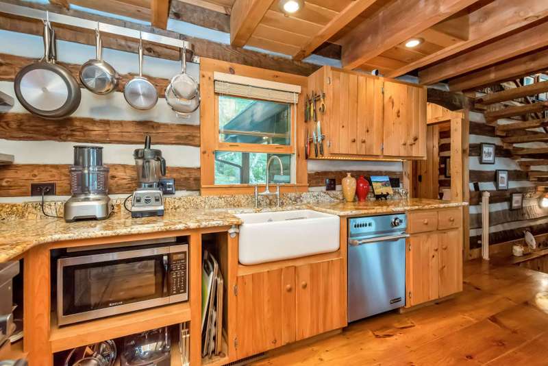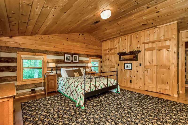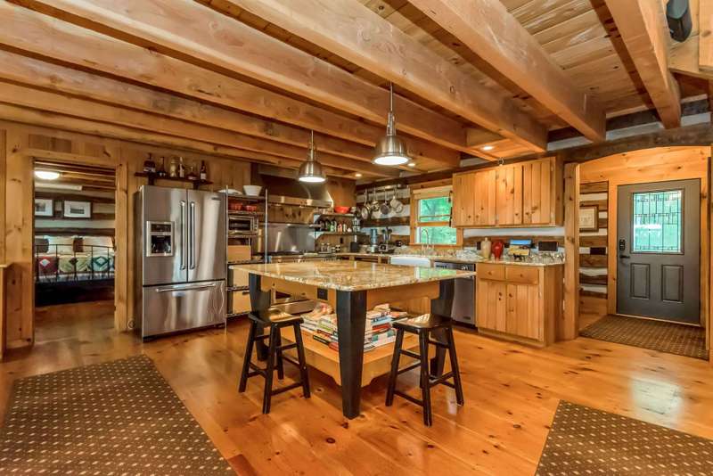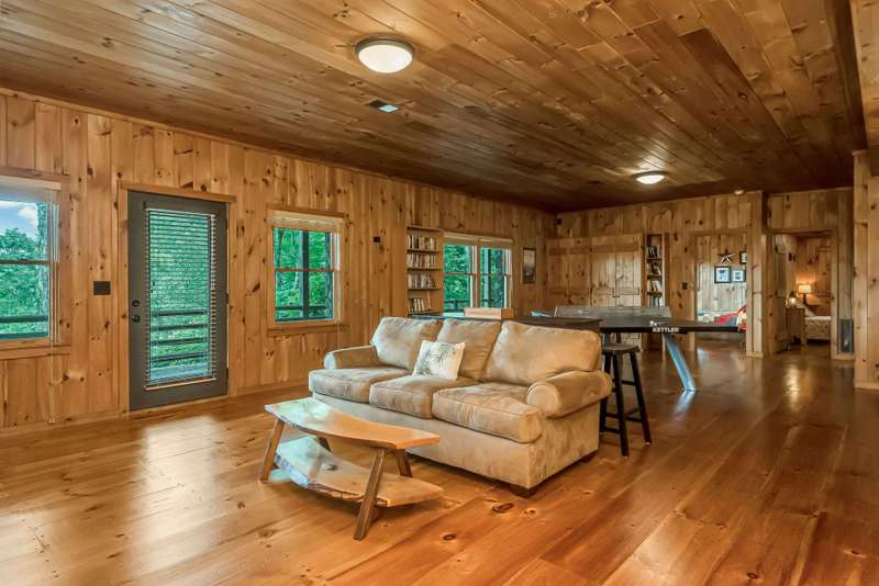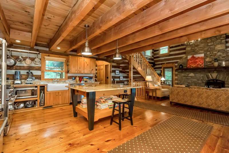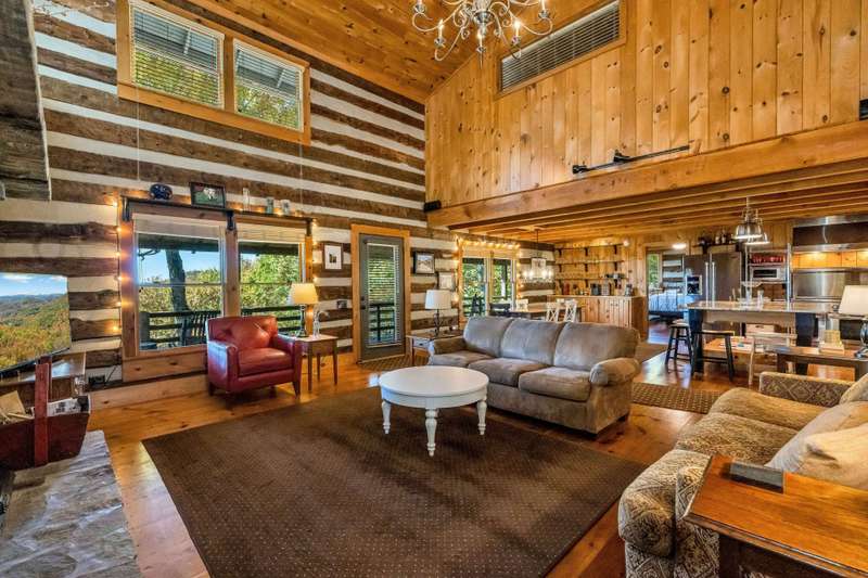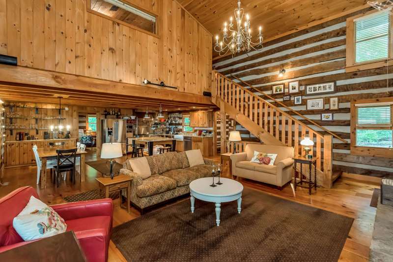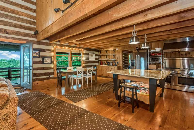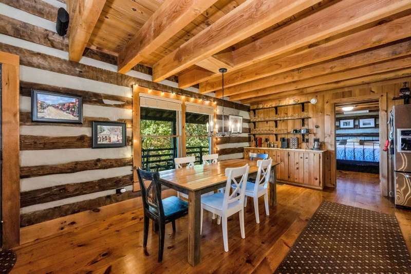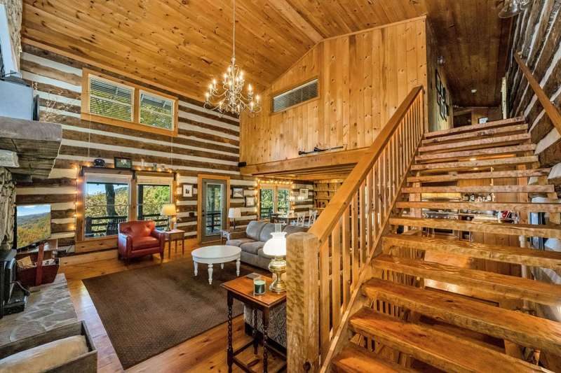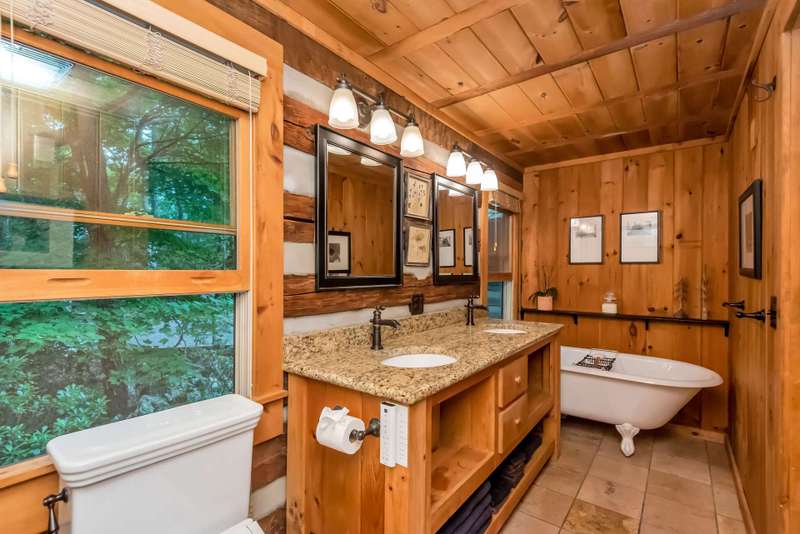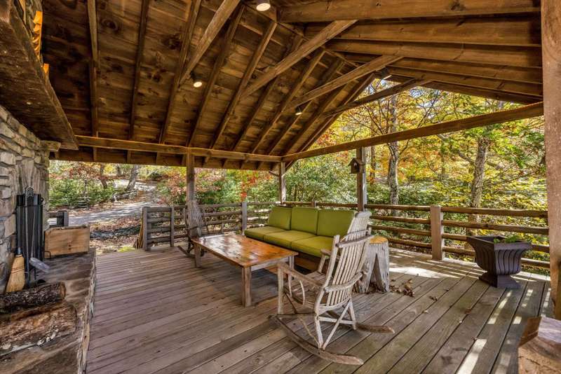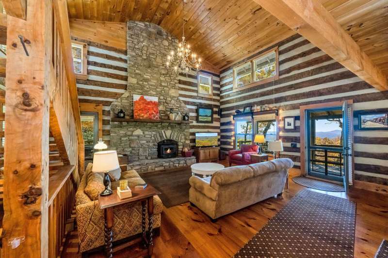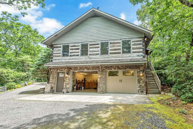 Wake up to the view of Grandfather Mountain while enjoying your morning coffee on the covered back deck of this exquisite antique log cabin. This cabin masterfully combines rustic charm with modern conveniences, creating an inviting retreat. Upon entering the front door, you are greeted by a spacious foyer and a convenient 1/2 bath. The great room seamlessly integrates the kitchen, dining, and living areas, making it ideal for hosting gatherings. The chef's kitchen presents commercial-grade appliances and an expansive island. The main level boasts a luxurious primary suite with stunning mountain views to greet you every morning. The private en-suite bath is a haven of relaxation, offering granite double sinks, a tiled shower, and a soaking tub. The upper level is designed with guests in mind, featuring 2 spacious bedrooms and a full bath. Each room provides comfort and privacy, making your guests feel right at home. The lower level is a versatile space, featuring an expansive family room. Also includes another full bath and 2 bonus rooms currently set up as bedrooms, ideal for accommodating additional guests. The wrap-around covered porches and expansive outdoor living room make this cabin an entertainer's dream. Whether hosting a summer BBQ or enjoying a quiet evening by the wood-burning outdoor fireplace, you'll love spending time outdoors. The fenced backyard is ideal for gardening and/or pets. A detached garage offers even more space for guests, featuring a sitting room, sleeping area, and full bath, creating a private guest suite. The lower level of the garage provides parking for 2 cars and room for a workshop, catering to all your storage and hobby needs. Every detail of this home has been thoughtfully designed and meticulously maintained, making it a truly exceptional property. With its stunning views, lavish amenities, and charming rustic appeal, this antique log cabin is the perfect mountain retreat for making lifelong memories with family and friends. Call today to schedule your tour of our listing B105!