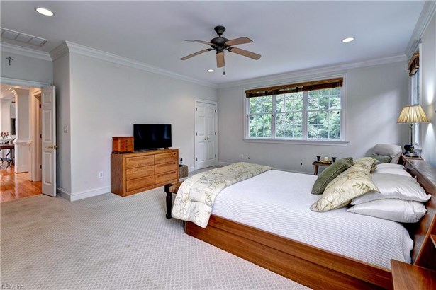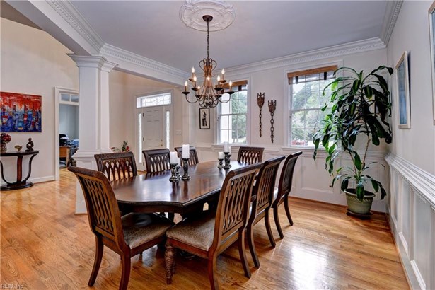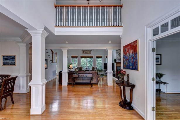 WOW! Truly an extraordinary home in sought-after Governors Land! Perfectly sited at the end of a quiet cul-de-sac, this all-brick residence has been meticulously maintained and is move-in ready. Offering 3,679 sq ft on a .65-acre lot, it is filled with natural light and custom millwork. The foyer is flanked by a home office with French doors and an elegant dining room with wainscoting and dentil molding. The great room showcases a dramatic wall of windows overlooking a private wooded setting plus a natural gas fireplace. The kitchen features a center island, granite counters, solid maple cabinetry, large breakfast area, pantry, and abundant workspace. A spacious utility room with sink and storage adds convenience. The first-floor primary suite includes a large walk-in closet and en suite with Kohler bubble tub and shower. Upstairs are three additional bedrooms plus a bonus/5th bedroom. Outdoor living offers a screened porch and stamped concrete patio.