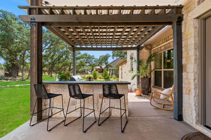Exquisite design, stylish and immaculate are just a few words to describe 967 Belle Oaks Blvd! The details in this home are bespoke, from the trim work to the finishes...The Outdoor living is paramount here with the built-in BBQ area, outdoor fireplace, to the fun firepit for chilly Hill Country nights and the raised bed gardens. The Great Room with a modern take on timber frame construction is open to the dining and Kitchen making entertaining and lifestyle seamless. The Kitchen is a culinary delight with top of the line appliances, ample counters and cabinetry and stylish design. Escape to the primary suite with the spa worthy bath and large closet; a separate guest suite is wonderful for multi-generational living while 2 additional bedrooms share a Jack 'n Jill Bath with separate sink areas. The laundry room is off the Mudroom w/built-in drop zone and the oversized 3 car garage features epoxy floors and cabinets. The only room upstairs is a WOW Speak Easy room perfect for whiskey/wine collectors or as a media/gameroom. Belle Oaks Ranch is convenient to San Antonio and all it has to offer with awardwinning restaurants and popular shopping nearby. The neighborhood is gated and offers a resort-style amenity center with splashpad and lap pool, putting green, bocce ball, tennis/pickleball courts, playground AND sport court! Popular Comal Schools! This home is stylish, immaculate and ready for you! - 11/7/2025 3:15:14 AM
