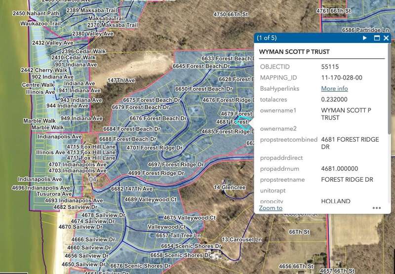 The home adjacent to this beautiful lor is also listed for sale MLS#25028940. Build your dream home atop a wooded dune in the coveted Forest Beach subdivision on the south side of Holland. This elevated 0.231-acre lot offers a rare opportunity to capture stunning views of both Lake Michigan and Lake Macatawa. Nestled in Laketown Township, the lot sits high above its surroundings, offering privacy, natural beauty, and the potential for remarkable vistas. Ownership includes association access to the shores of Lake Michigan, making it a perfect setting for a private retreat or full-time residence. EGLE permitting will be required for construction. Agent is related to trustee seller.