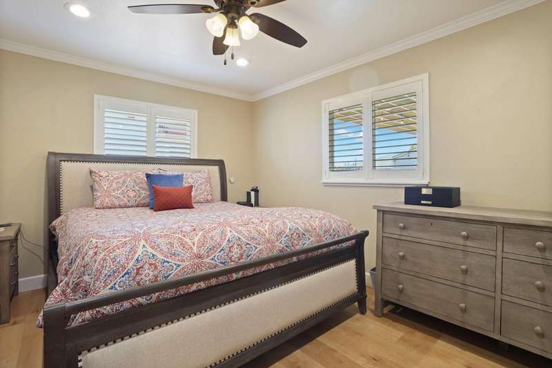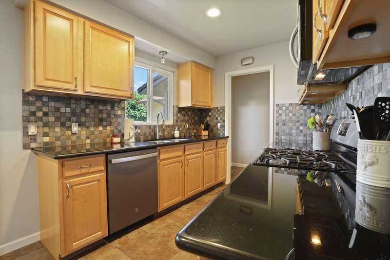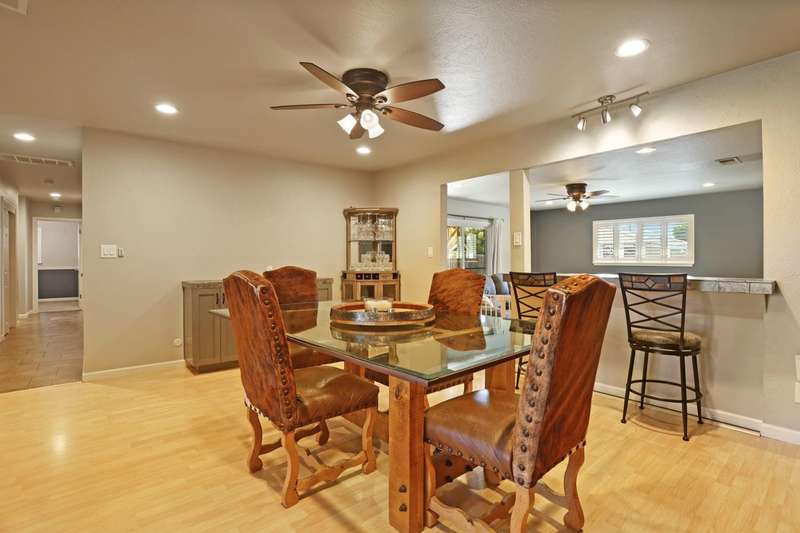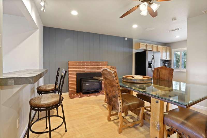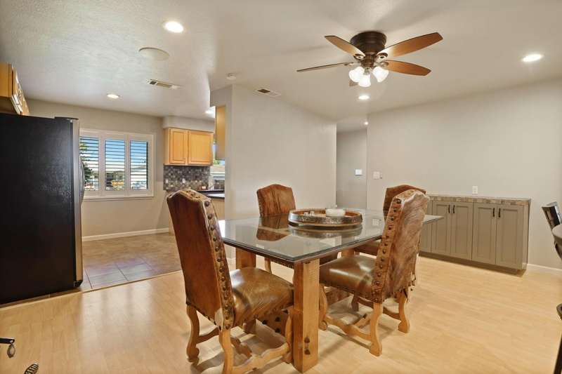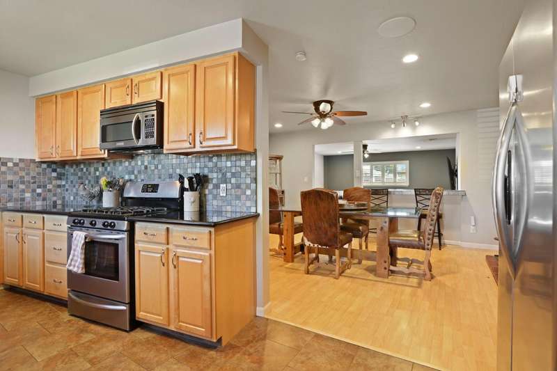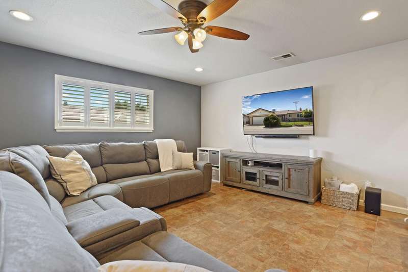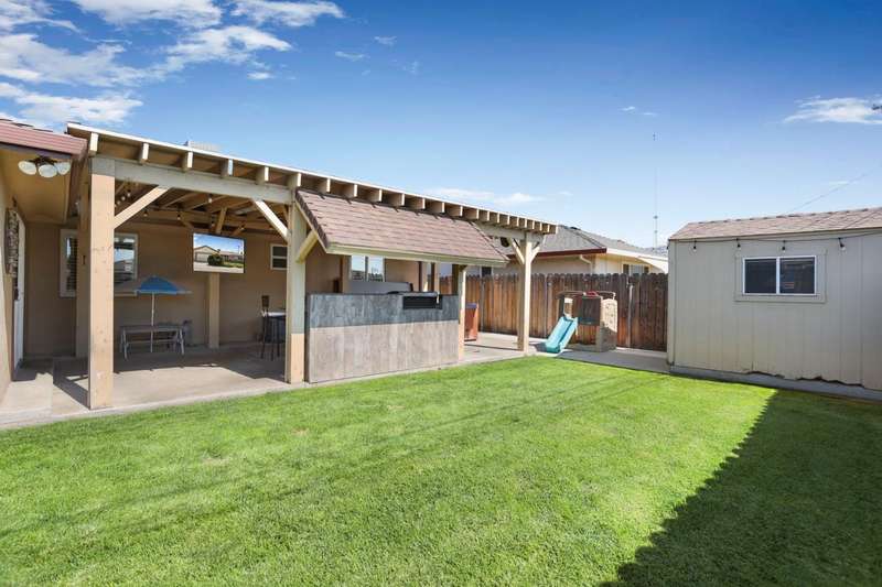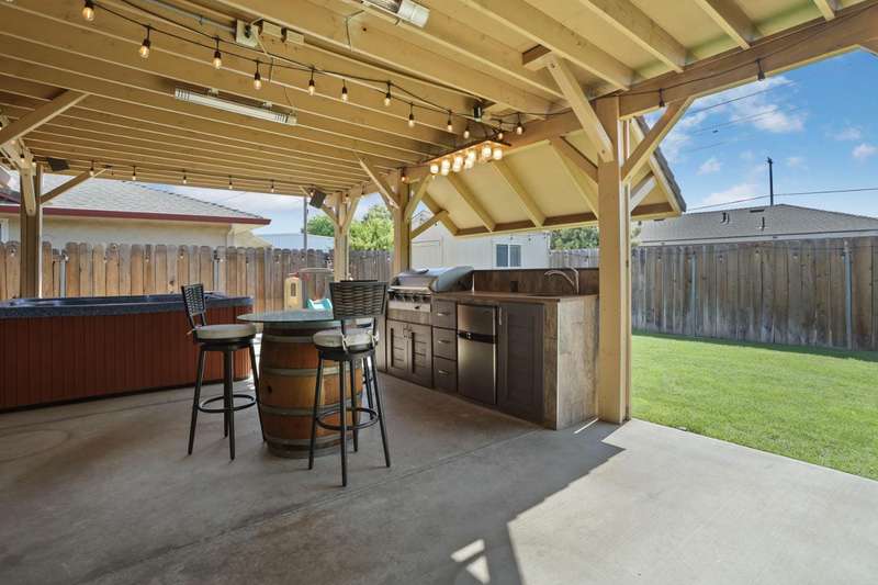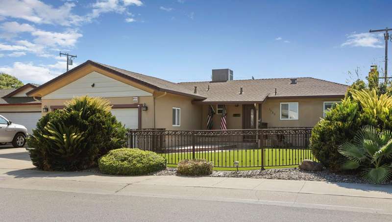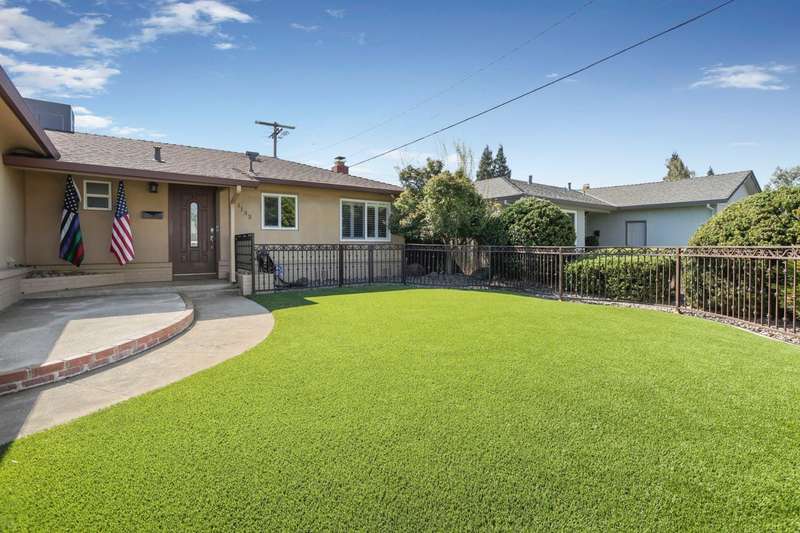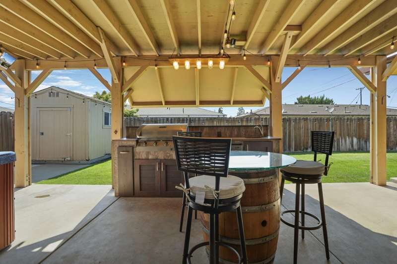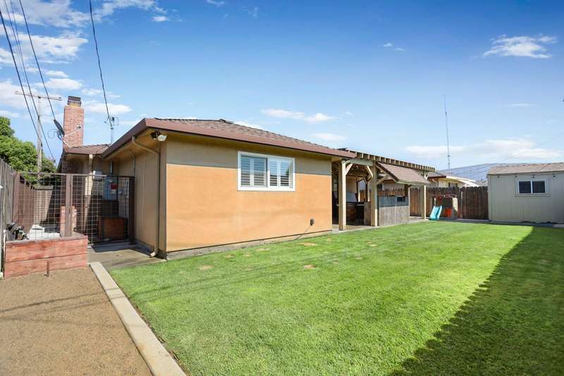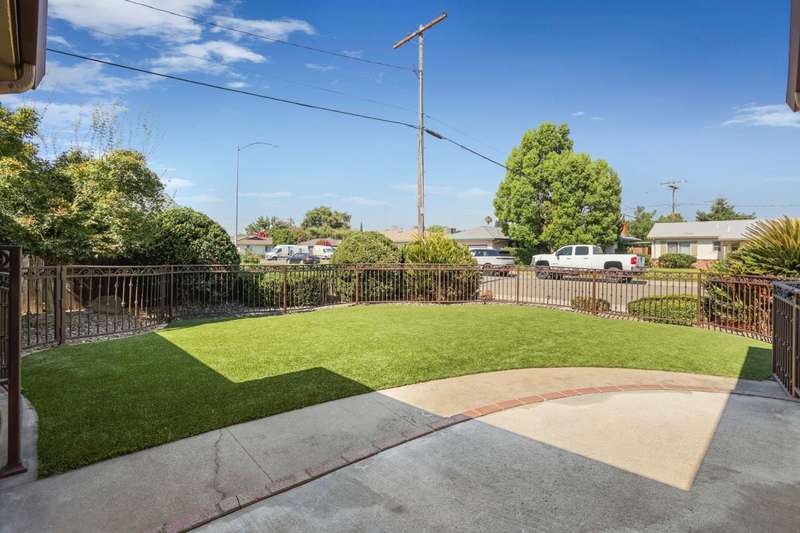 Darling SINGLE STORY Lodi SMART home with SOLAR has been lovingly updated and cared for! Custom wrought iron fenced front yard with turf for low maintenance and safety for small kids or pets. Step into the open kitchen with granite counter tops, stainless steel appliances, gas range and buffet/coffee bar. Formal dining room with fireplace, spacious living room with sliding glass door to back yard. 3 large bedrooms including primary suite and updated bathrooms. STORAGE space throughout and surround sound speakers. SMART home features include ADT security system, RING doorbell, WIFI/APP controlled thermostat, MYQ APP controlled garage door. HVAC only 5 years old, whole home purifier, all maintenanced 2 times a year with Tokay Heating and Air. All NEW glass in dual pane windows and shutters throughout. Relax and enjoy summer nights in the back yard with outdoor TV, built in BBQ, spa, horseshoe pit and side yard custom dog run. Extra storage shed in back along with plenty of grass area. Garage with cabinet storage included and inside laundry room. HUGE SOLAR savings!! Move right in to your new home and ENJOY!
