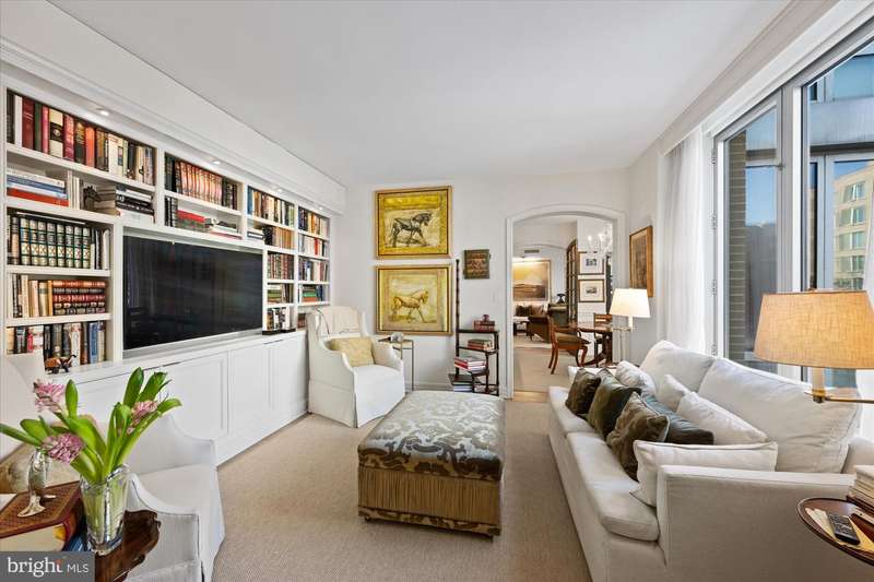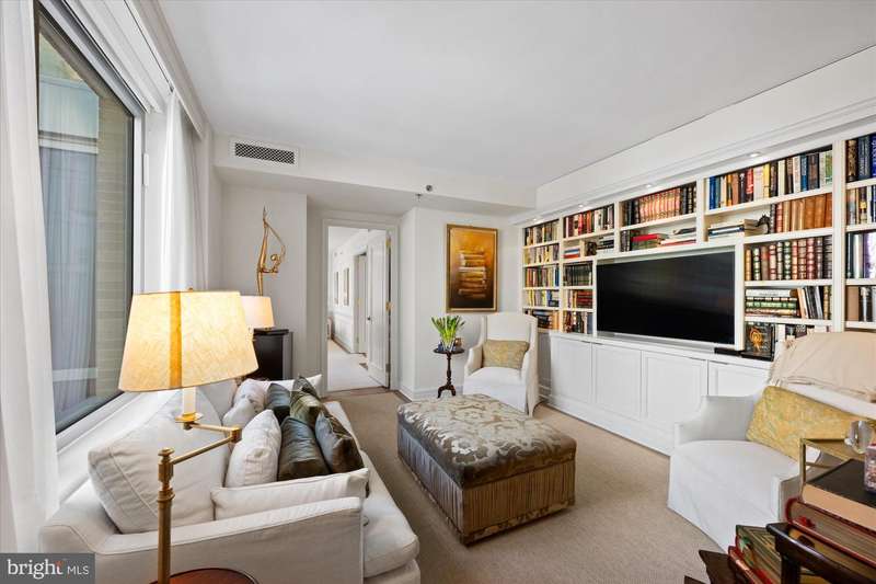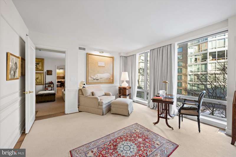 ****NEW PRICE**** Live at the Ritz Residence and experience unparalleled luxury. This stunning 2,000+ square foot, 2-bedroom, 3.5-bathroom condominium offers an elegant lifestyle with expansive, floor-to-ceiling windows in every room, providing views of the tranquil courtyard. As you step into the spacious entry foyer, youre immediately greeted by the sophisticated design of the condo, which is ideal for both casual living and elegant entertaining. The open flow leads you into the inviting living room, which seamlessly transitions into the formal dining area. For book lovers or those in need of a quiet retreat, a private library with custom-built shelves awaits. The oversized primary bedroom suite is a true sanctuary, featuring two en-suite bathrooms equipped with high-end fixtures and finishes, as well as two generous walk-in closets. The second bedroom also offers its own private full bathroom and a large walk-in closet, ensuring comfort and privacy for guests or family. Additional amenities include a gourmet kitchen, elegant flooring, a large soaking tub, and remote-controlled window coverings. A full-size washer and dryer, plus two parking spaces, complete the package. Located in the heart of a vibrant neighborhood, youll find yourself just moments away from premier restaurants, shopping, and metro access. The Ritz Residence offers exceptional service and amenities, including 24-hour concierge, valet parking, doorman services, and exclusive access to the Equinox Sports Club.Luxury, convenience, and comfort await you at the Ritz Residence.