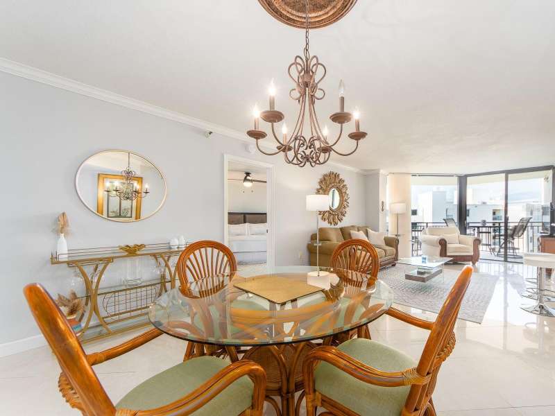 Island Walk on Island Estates offers this 10th floor, 1 bedroom, 1 1/2 bath condo gem with fantastic views of both the intracoastal waterways and the Gulf open waters! This condo has been beautifully updated and comes furnished. The open kitchen to living/dining area gives a larger space feel and is great entertaining or just relaxing in your cozy, quaint home. A large balcony, accessible from bedroom and living room provides you with a enchanting views and a great place to watch a sunset and enjoy your beverage of choice. This condo also comes with a covered parking space (#119), along with a large indoor storage (S105). Island Walk is also a wonderful waterfront community and its amenities including a heated pool, hot tub, tennis/pickleball courts, grills, a boardwalk with boat slips that could possibly be rented or purchased. The local area offers wonderful restaurants, shops, grocery store, bank, and of course Clearwater's fabulous Aquarium and rehabilitation center for aquatic life. BTW, America's number 1 beach is just outside the community and less than one mile to that beautiful sandy stretch of beach, See You Soon!!!