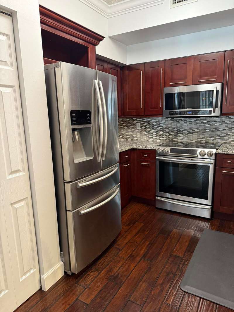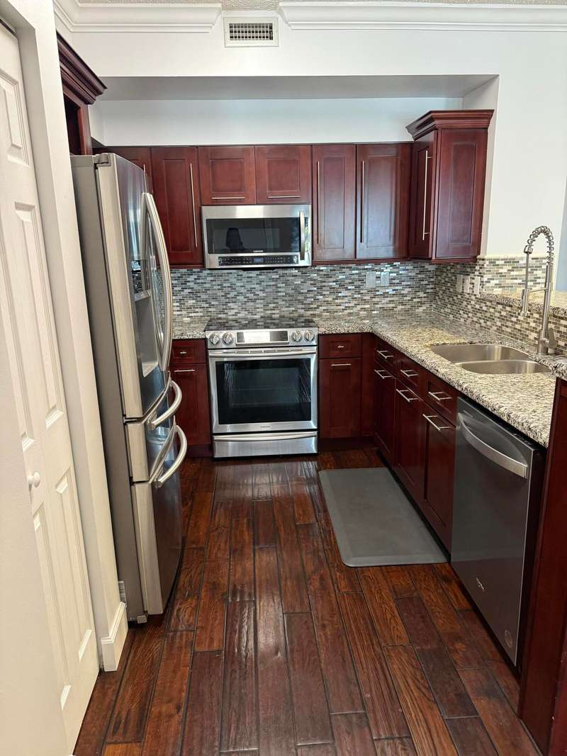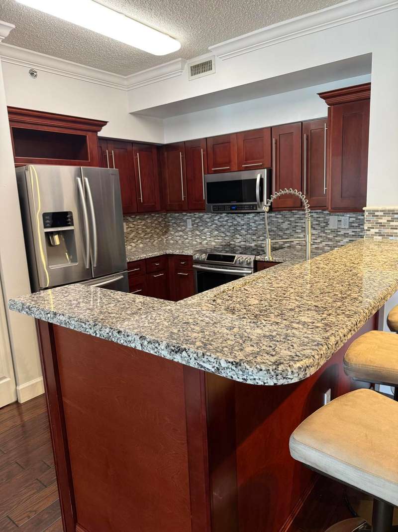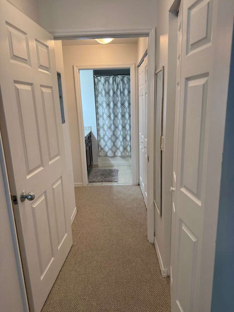 FRESHLY painted, BRAND NEW carpeting in both bedrooms, wood floor in living area and kitchen. Newer upgraded stainless appliances, wood cabinets, granite counters in kitchen and both baths, NEW washer and dryer, NEW easy open, sliding glass door to a covered balcony with a view of Clear Lake. Large rooms, spacious closets, great split floor plan layout with both bedrooms having their own full bathrooms; and the perfect area location. Close to everything West Palm Beach and Palm Beach has to offer. Down Town, PBA University, Shopping, dining, festivals, beaches, airport, Tri-Rail and Brightline train stations, and I95 all just minutes/seconds away. Live, Learn, Work, Play.