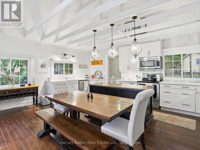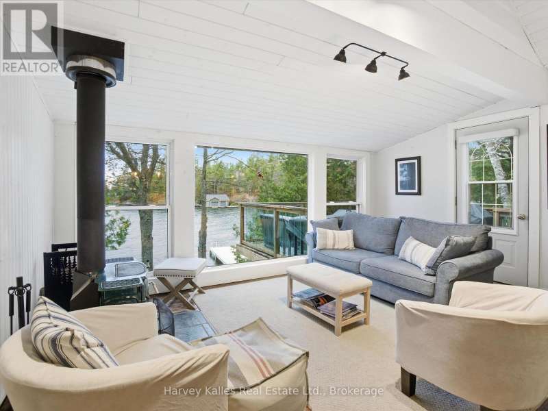 For those who value the rare privilege of true big-lake living-where boating is not just leisure but a lifestyle-this property represents an extraordinary chance to secure your place on Ontario's most coveted waters: the interconnected lakes of Muskoka, Joseph, and Rosseau. Whether you dream of visiting friends by boat, picking up groceries across the bay, or exploring multiple charming waterfront towns from your dock, this address places you at the heart of it all. This small-but-mighty cottage delivers what discerning buyers prize most: clean, deep water, a private boat-ready shoreline, and uninterrupted long-lake views that provide year-round sunsets. It's an exceptional entry point into one of Canada's most sought-after lakes and an investment in a lifestyle that becomes more valuable with every passing season.The year-round cottage offers two levels of bright, inviting living space with three bedrooms and two full bathrooms, creating comfort and flexibility for family and guests. The main floor's open-concept kitchen, dining, and living areas flow seamlessly together, all oriented toward sweeping lake vistas through large picture windows. Downstairs, a spacious 2nd living room, full bath, and additional bedroom offer privacy, a walkout to the water, and effortless indoor-outdoor enjoyment. Spend summer days unwinding on the upper view deck or the lower lakeside patio, both designed for relaxation with the lake as your backdrop. In winter, savour the warmth of the wood-burning stove as you watch the sun set over frozen Muskoka waters, a truly magical four-season experience. Beyond the main cottage, a generous detached bunkie and storage building offer valuable extra space for guests or gear. The professionally landscaped grounds strike the perfect balance, enhancing the natural beauty of the land while preserving the timeless Muskoka character. This is more than a cottage. It is an invitation. Your chance to begin your Muskoka story. (id:6370)