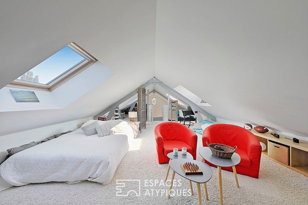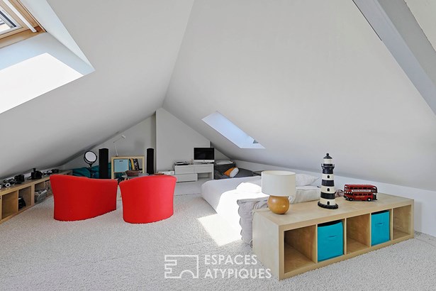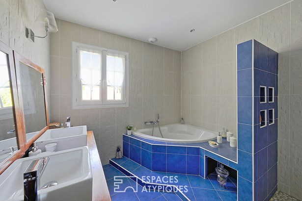 Maison contemporaine de caractere avec dependance et jardin paysager