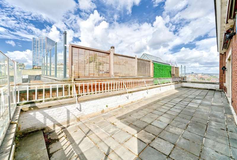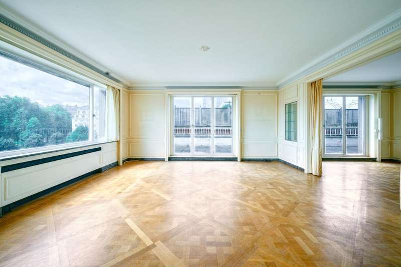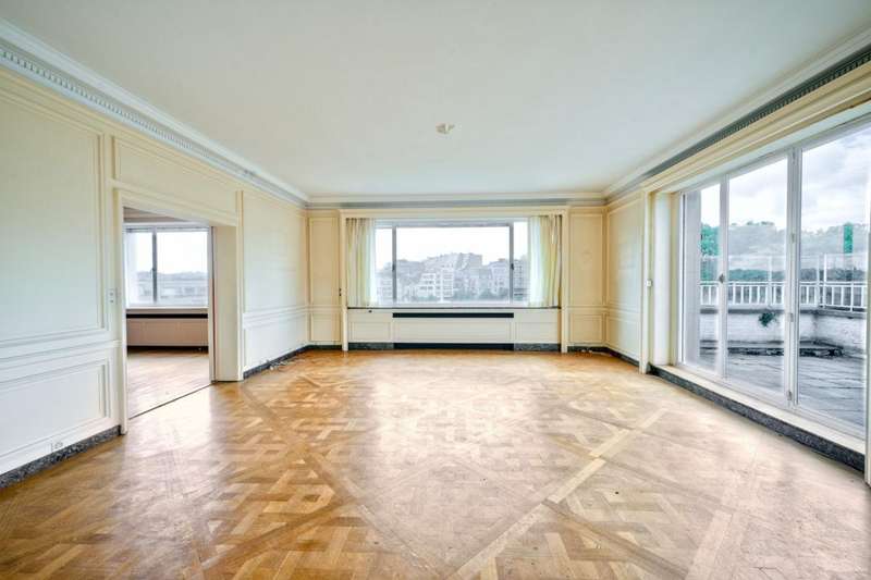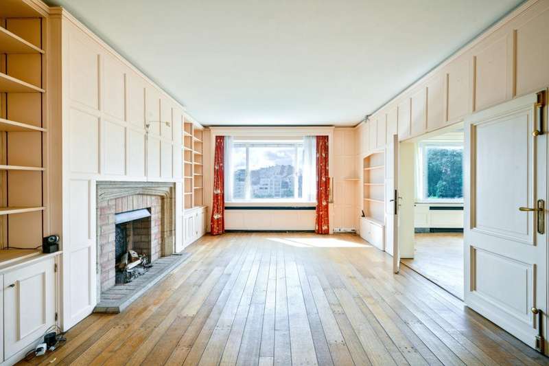 In one of the most elegant buildings in Ixelles, on the edge of the Jardin du Roy, on the 7th floor with a large terrace of +/- 50 m², superb apartment of +/- 275 m² enjoying extraordinary views and a perfect south-facing orientation. Beautiful reception rooms, fitted kitchen, 3 bedrooms, 2 bathrooms. Cellar, wine cellar. Garage. EPC F